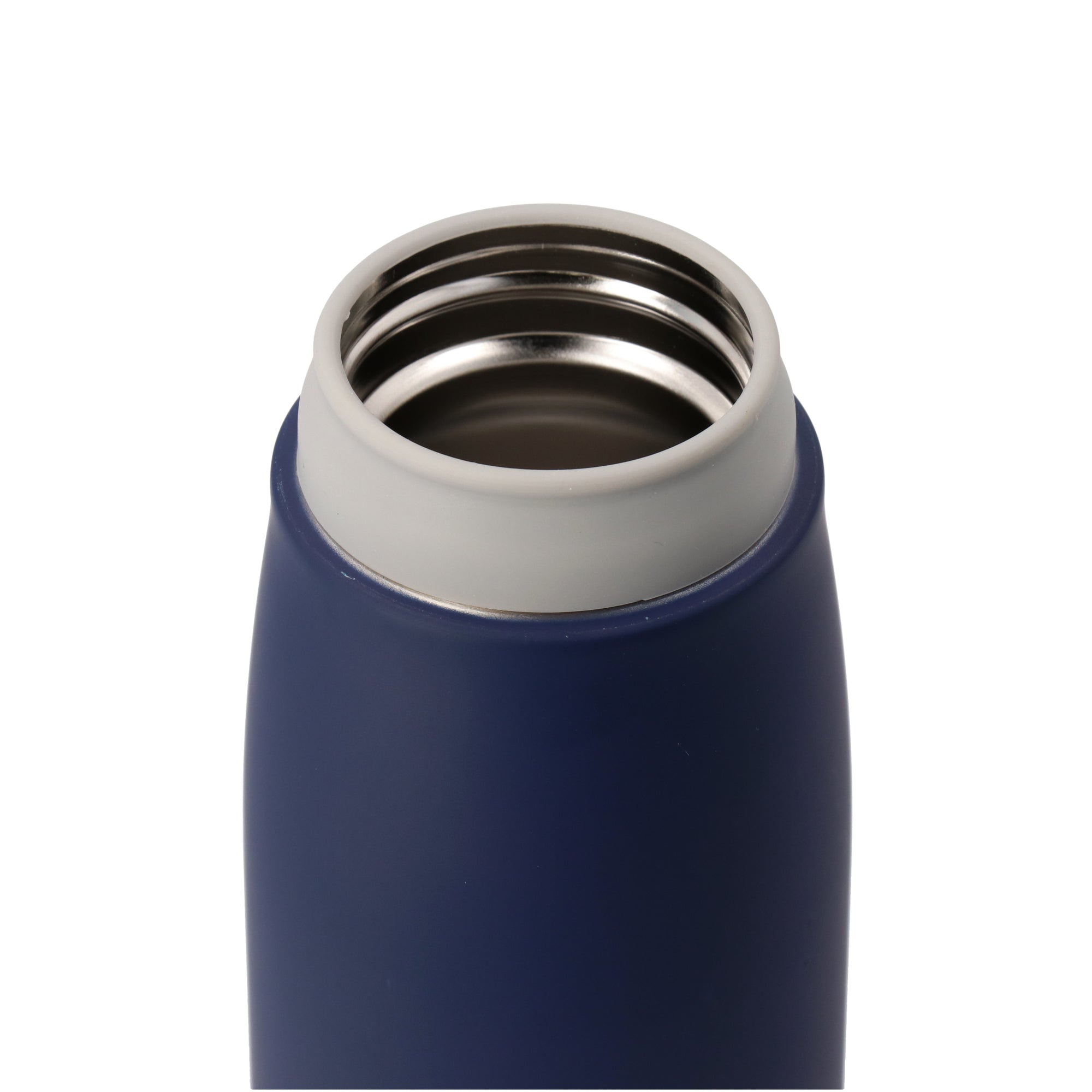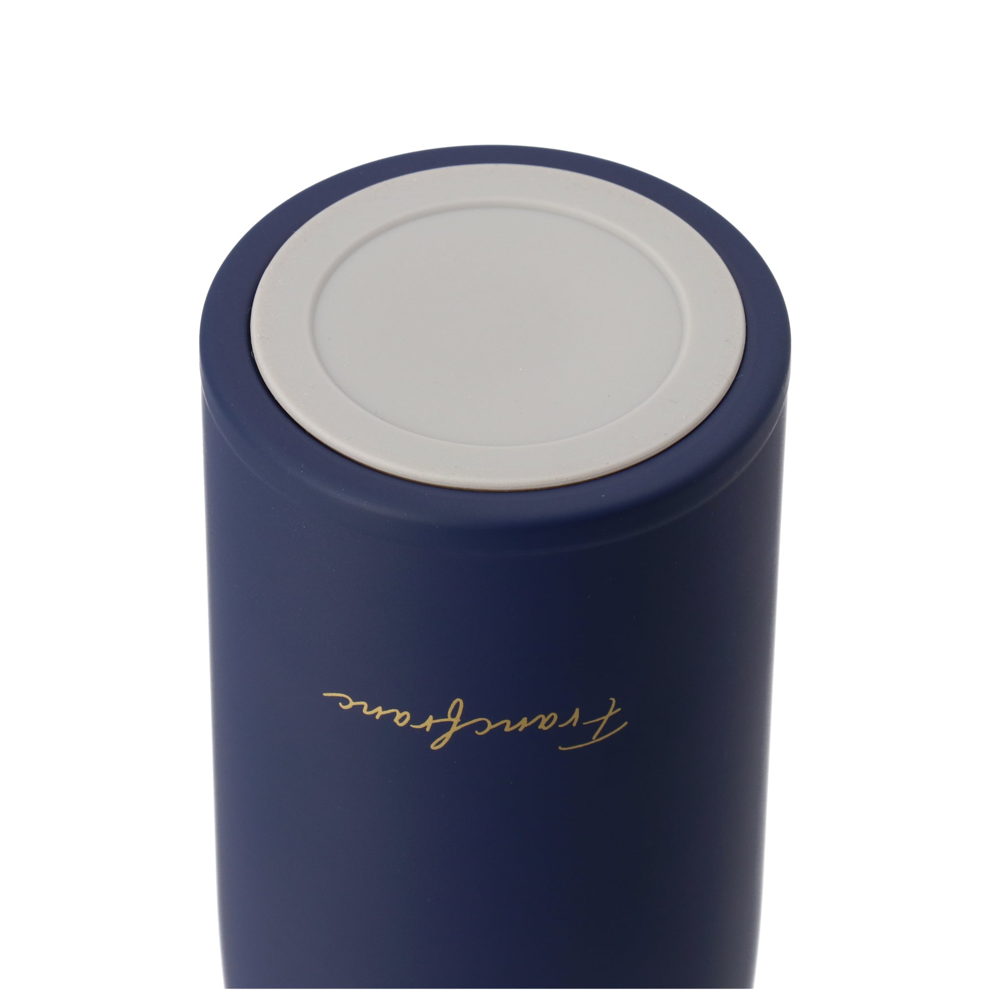 マットな質感にメタリックのツヤ感が映えるエレガントな印象のステンレスボトルです。180gと軽量なので、持ち運びにも便利です。バッグでも場所を取らず、通年使うのに丁度良い350mlサイズです。真空二重構造になっており、飲み物の保温保冷が可能です。フタを外してすぐ飲める直飲みタイプで、飲み口にはカバーをつけているので、優しい口当たりです。底面にはシリコン製のフットパッドが付いているので、オフィスのデスクでも静かに置けます。