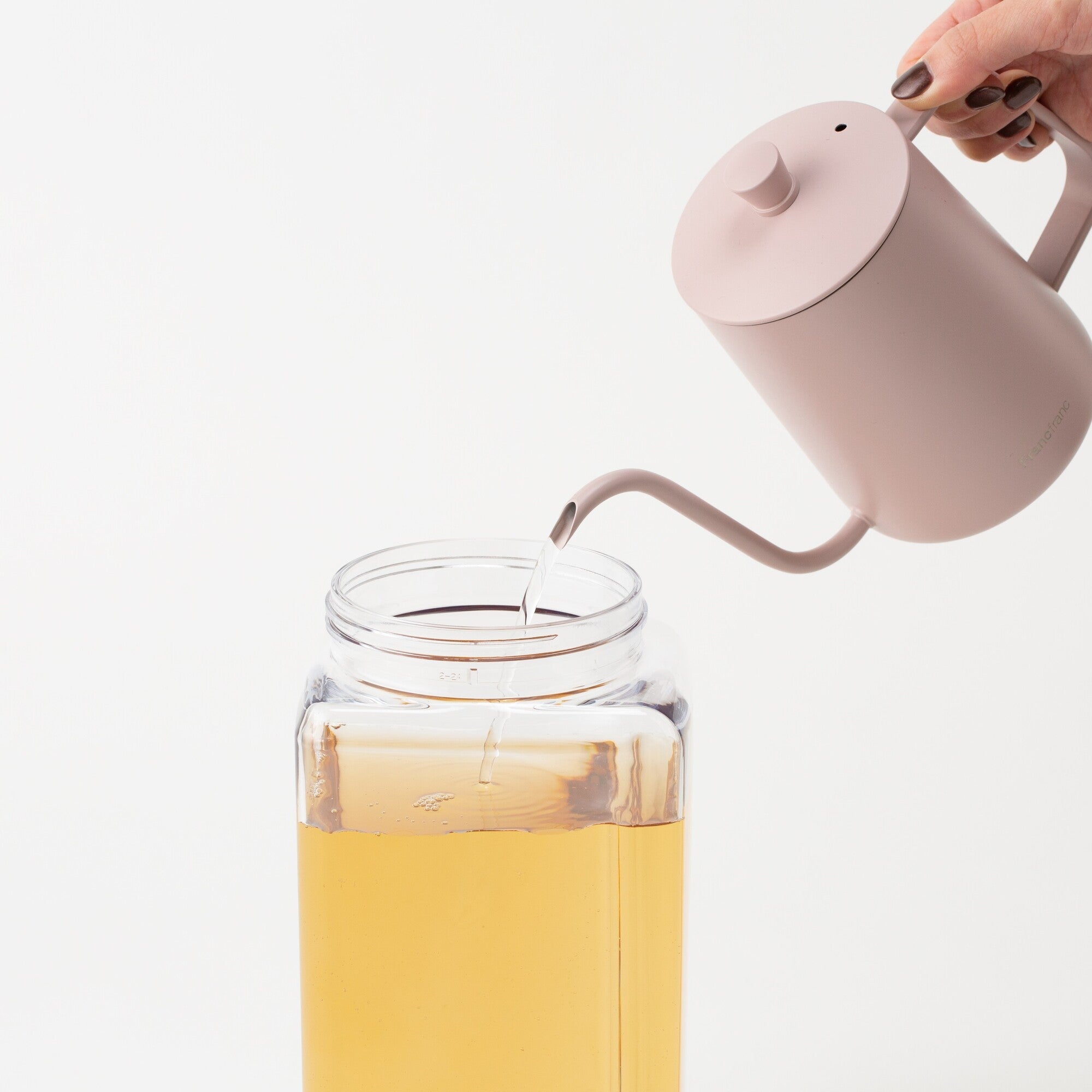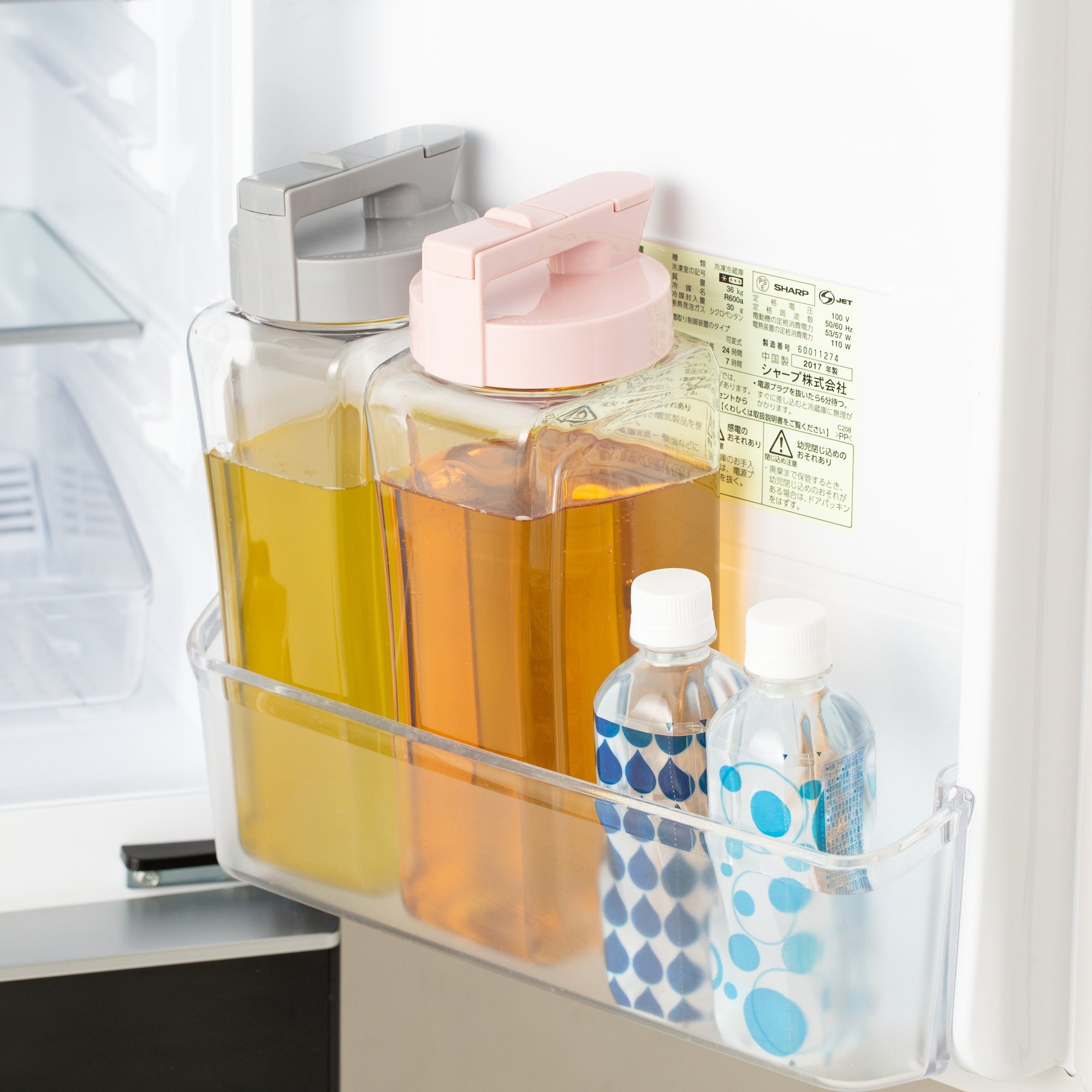 大容量なのにコンパクトで省スペース収納が可能なスマートジャグです。テーブルにそのまま出しても絵になるデザイン。おしゃれなくすみピンクが食卓をスタイリッシュに彩ります。便利なヨコ置きOK立てたまま冷蔵庫のドアポケットに入れるのはもちろん、横にして冷蔵庫の棚に置いても飲み物が漏れません。庫内の限られたスペースを有効に使えるから、ひんやり水出しハーブティーやフルーツを浮かべたフレーバーウォーターをいつでも楽しめます。たっぷり麦茶の作り置きに耐熱素材なので直接熱湯を注いでも大丈夫。お茶のパックに熱湯を注いで粗熱を取ったらそのまま冷蔵庫へ入れられます。作り置きの麦茶が欠かせない季節にうれしいポイントです。ハンドルを省いたスマートデザインハンドルがないフラットな形状は省スペース収納OK。グリップ付きなので野菜室に収納しても簡単に取り出せます。本体にくぼみがついているのでハンドルなしでもらくらく注げます。また、開口部が広いためすみずみまで洗いやすく、いつでも清潔に保つことができます。