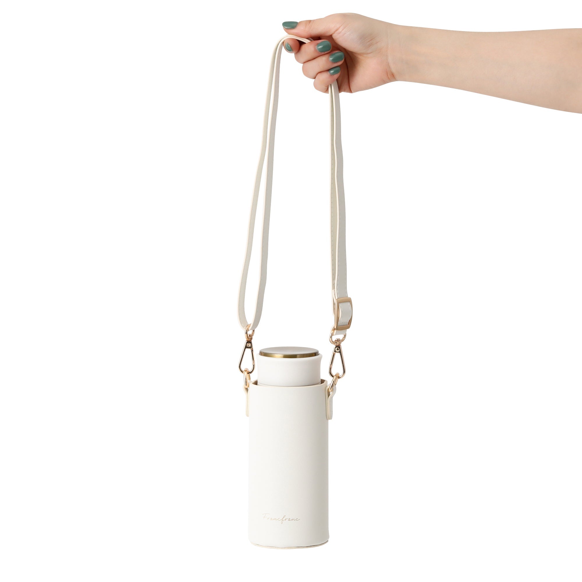 350mlのマットステンレスボトルを持ち運びできるホルダー付きセットアイテムです。チェーンは長いので肩掛けも可能。デスクからレジャーまで幅広いシーンで活躍します。