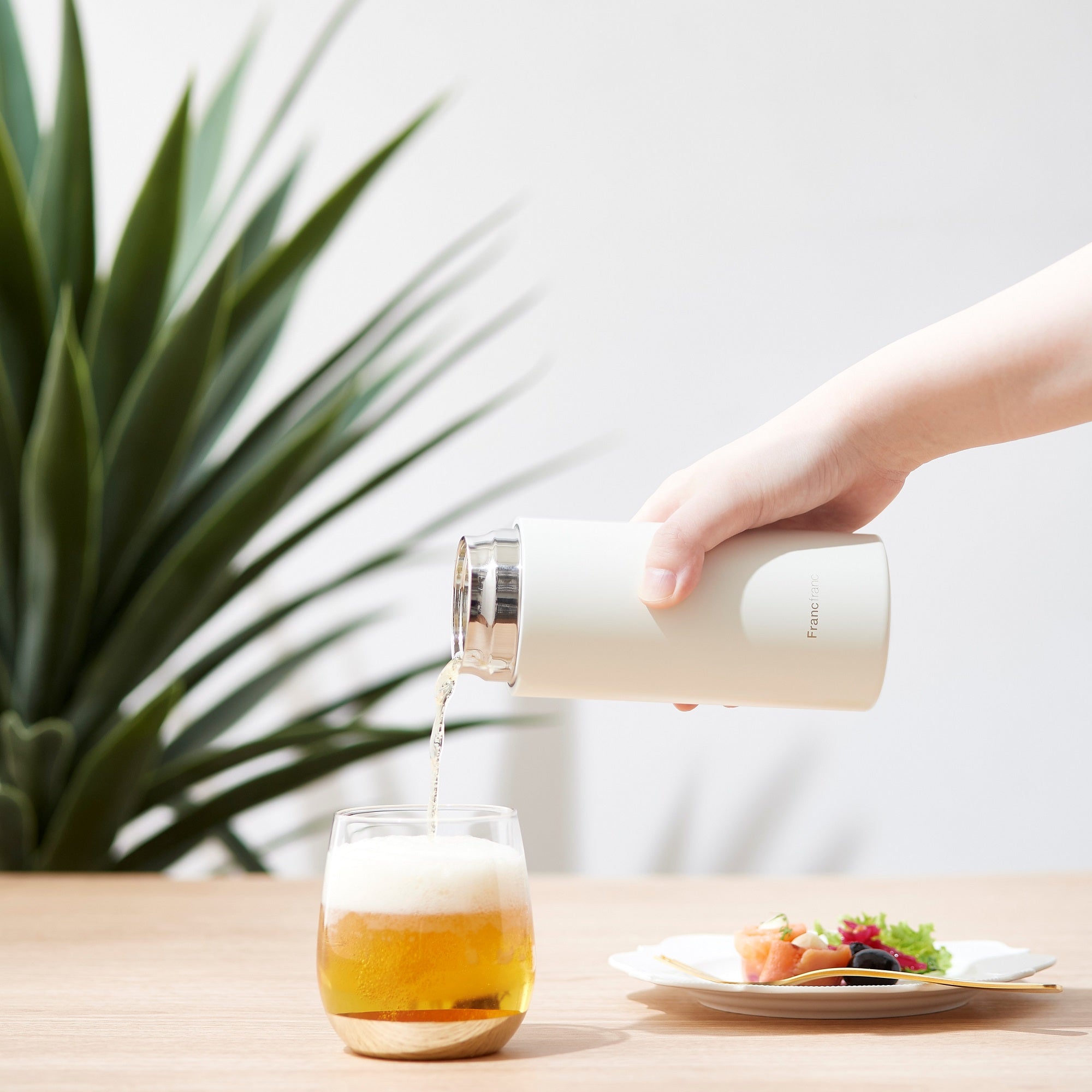 炭酸飲料も冷たいまま持ち運べるステンレスボトルです。真空二重構造のボトルが優れた保冷力を発揮。9℃以下(6時間)の保冷効力で、しゅわっと冷たい炭酸飲料をお好きな場所で楽しめます。使い方は簡単。開栓時につまみを上げて炭酸ガスの圧を抜くだけで中身の噴き出しや飛び散りを防ぎます。マットであわせやすいカラーと選べる2サイズも嬉しいポイント。ソフトドリンクはもちろん、ビールなどのアルコール類を入れてアウトドアに持ち出すのもおすすめです。