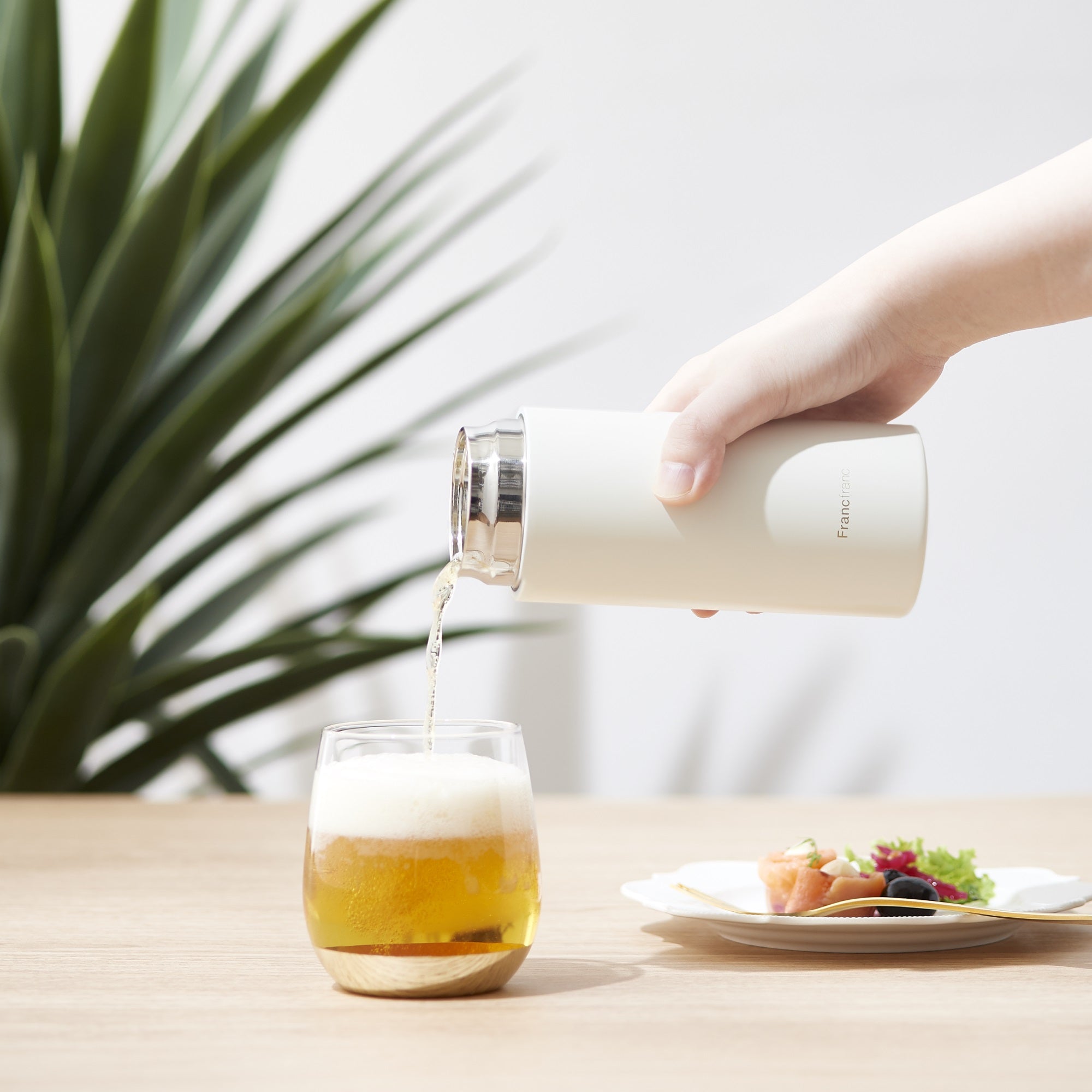 炭酸飲料も冷たいまま持ち運べるステンレスボトルです。真空二重構造のボトルが優れた保冷力を発揮。9℃以下(6時間)の保冷効力で、しゅわっと冷たい炭酸飲料をお好きな場所で楽しめます。使い方は簡単。開栓時につまみを上げて炭酸ガスの圧を抜くだけで中身の噴き出しや飛び散りを防ぎます。マットであわせやすいカラーと選べる2サイズも嬉しいポイント。ソフトドリンクはもちろん、ビールなどのアルコール類を入れてアウトドアに持ち出すのもおすすめです。