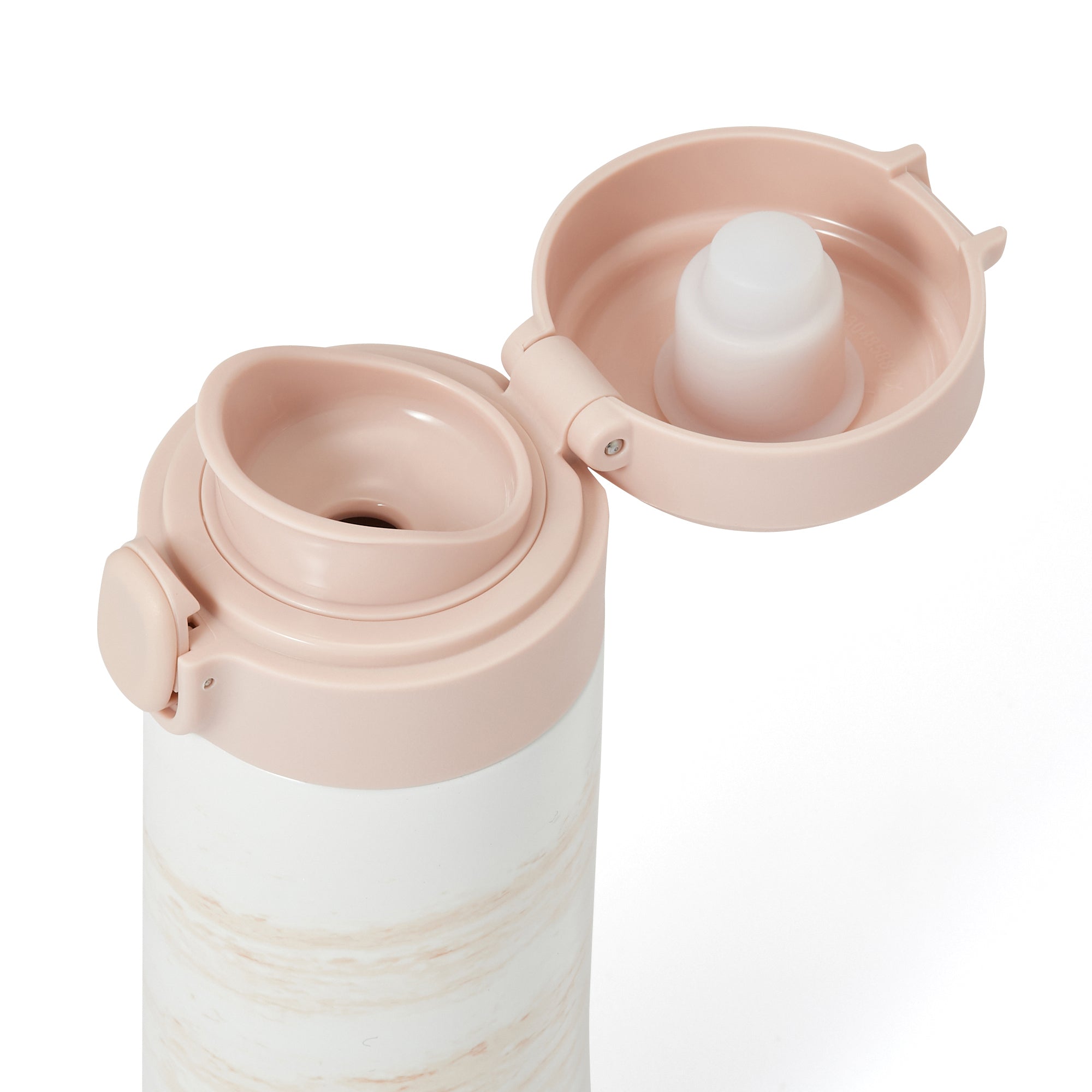 ワンタッチでフタが開けられる、ステンレスボトルです。片手でさっと開けられるので、手軽に飲むことができます。ウォーキングやジム、ドライブなど、体を動かす時に活躍します。もちろん、ランチやデスクワークでも使いやすいボトルです。フタが勢いよく開かないので、こぼしにくく飲みやすいです。ロックがついているのでバッグの中で開く心配もなく、安心して持ち運べます。華やかで使いやすいデザインで、プレゼントにもおすすめです。