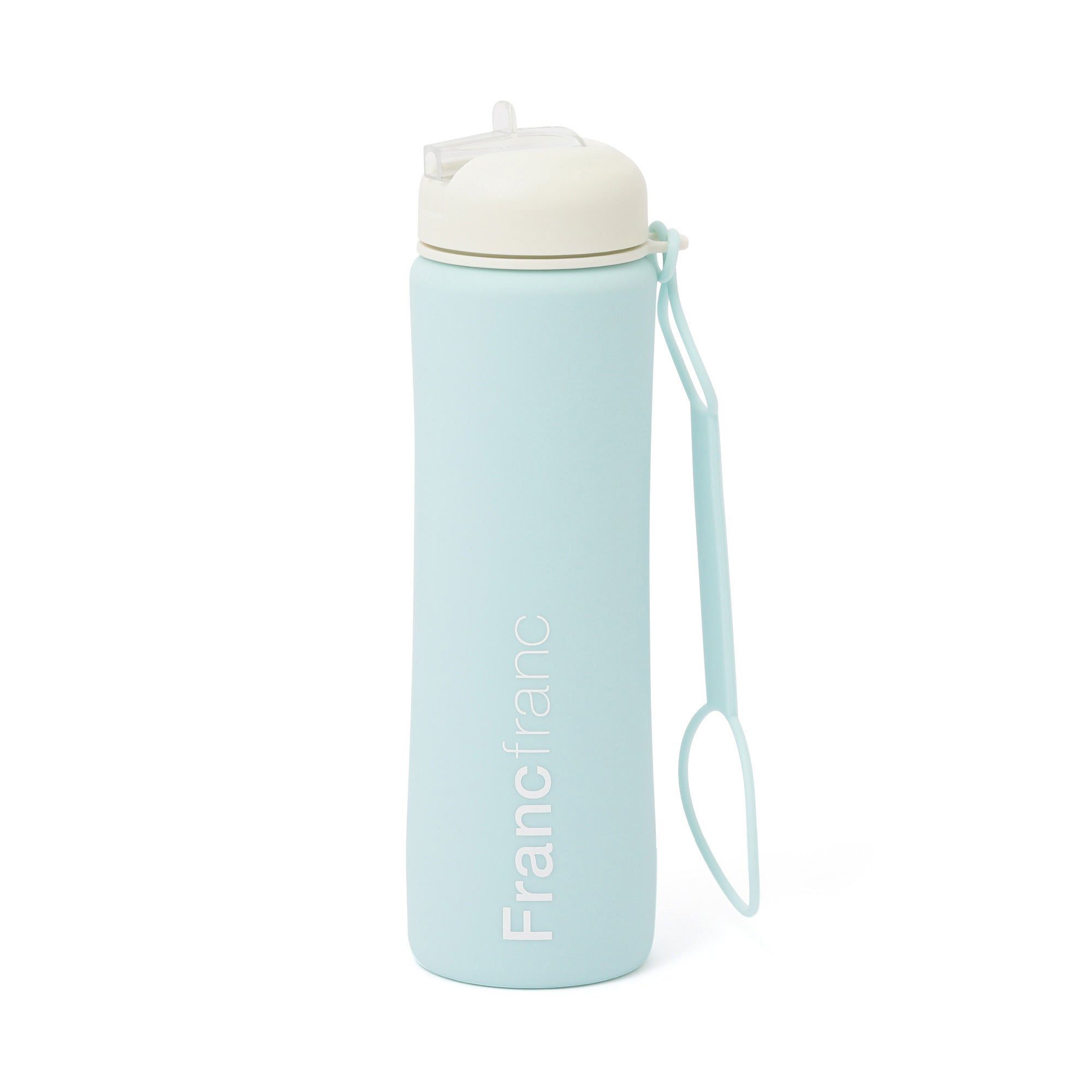 携帯に便利な折りたためるシリコン製ボトルです。外出先で飲み終わったら、クルクルっと巻いて、付属のバンドで蓋に固定するだけ。小さくすると手のひらサイズになるから、日常使いはもちろん、荷物が多くなりがちなアウトドアや旅行、スポーツジムに行く際にもおすすめです。600mlと十分な容量で、Francfrancらしい可愛いカラーリングが目を引くデザイン。細い飲み口で飲みやすく、こぼしにくい設計なのも嬉しいポイントです。パーツ類は取り外して丸洗いが可能。食洗機も使用できるから毎日のお手入れも簡単です。飲み物を入れて凍らせることもできて、暑い季節にも重宝します。※冷凍する際、液体は容量の8分目までを目安としてください。【折りたたみ方】・飲み口を上げ、中の空気が出るようにしてクルクルっと折りたたむ・折りたたんだあとは付属のバンドで蓋に固定し、最後に飲み口を下げる