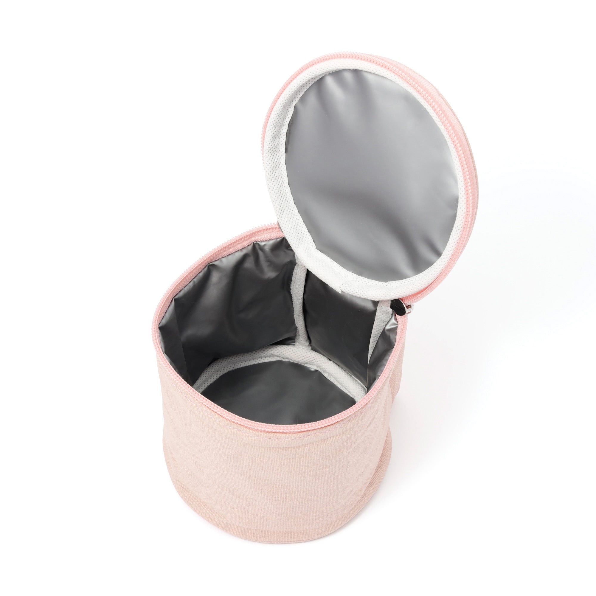 持ち運びに便利な専用ケース付きのスープジャーです。真空二重構造で保温・保冷効果があるので、出先でも温かいスープメインのヘルシーランチが楽しめます。圧抜き機能付きだから、内圧で蓋が開きづらくなった場合も簡単に開けられて便利。(圧抜き機能:キャップを外し、蓋中央の弁を押してください。弁を押すと蒸気が出ますので、押し込む際はカトラリー等の柄を使うか、布を一枚かませる等をして火傷をしないようにご注意ください。)ケースには別売りのスープジャー用カトラリー等が入れられるポケット付き。おにぎりケースとセットでの使用もおすすめです。