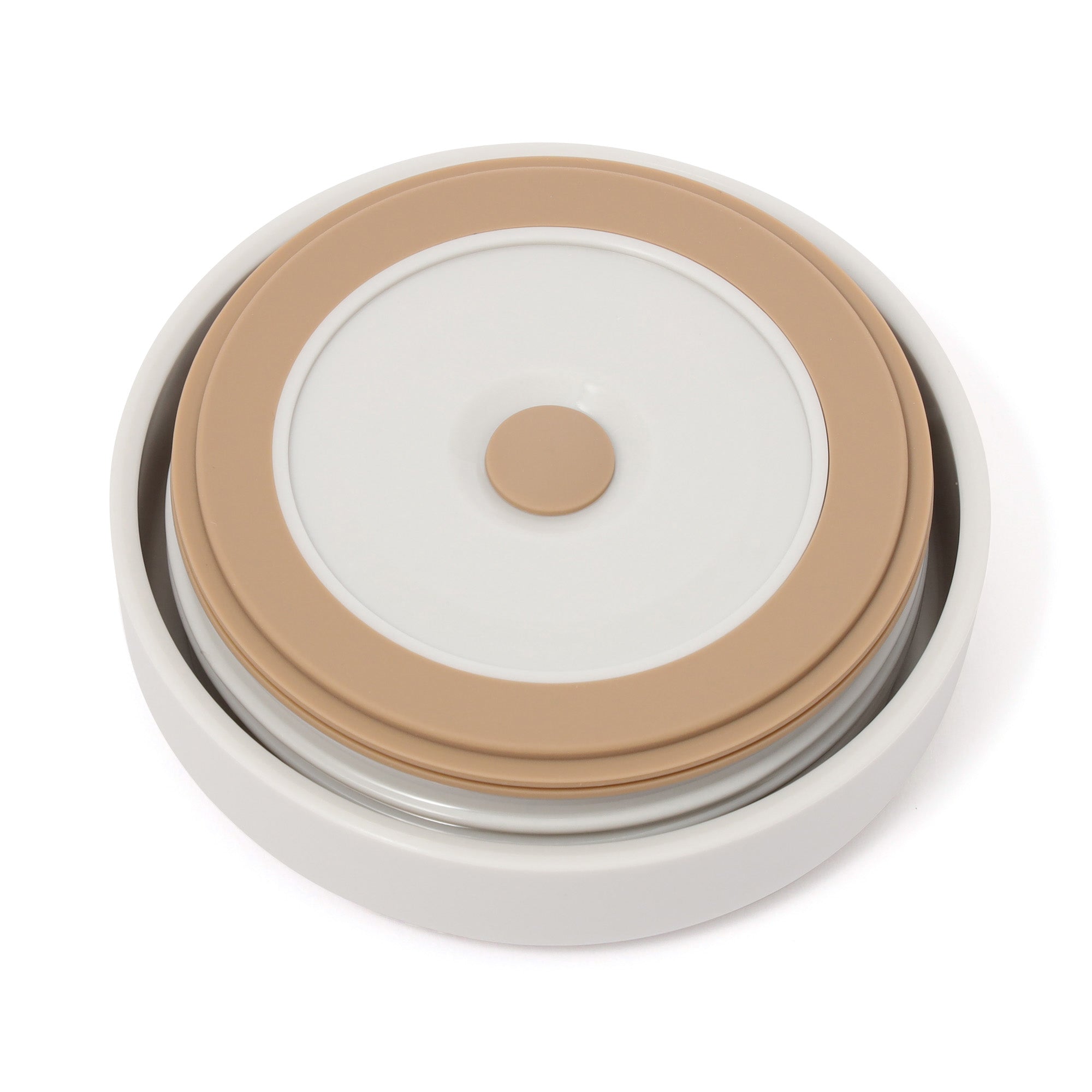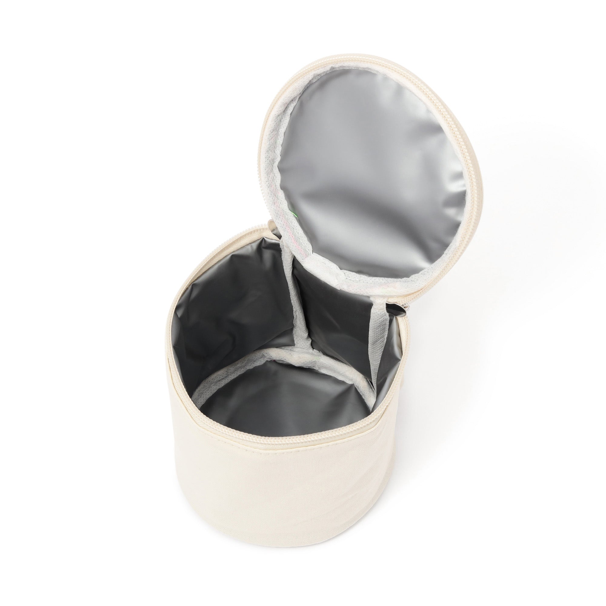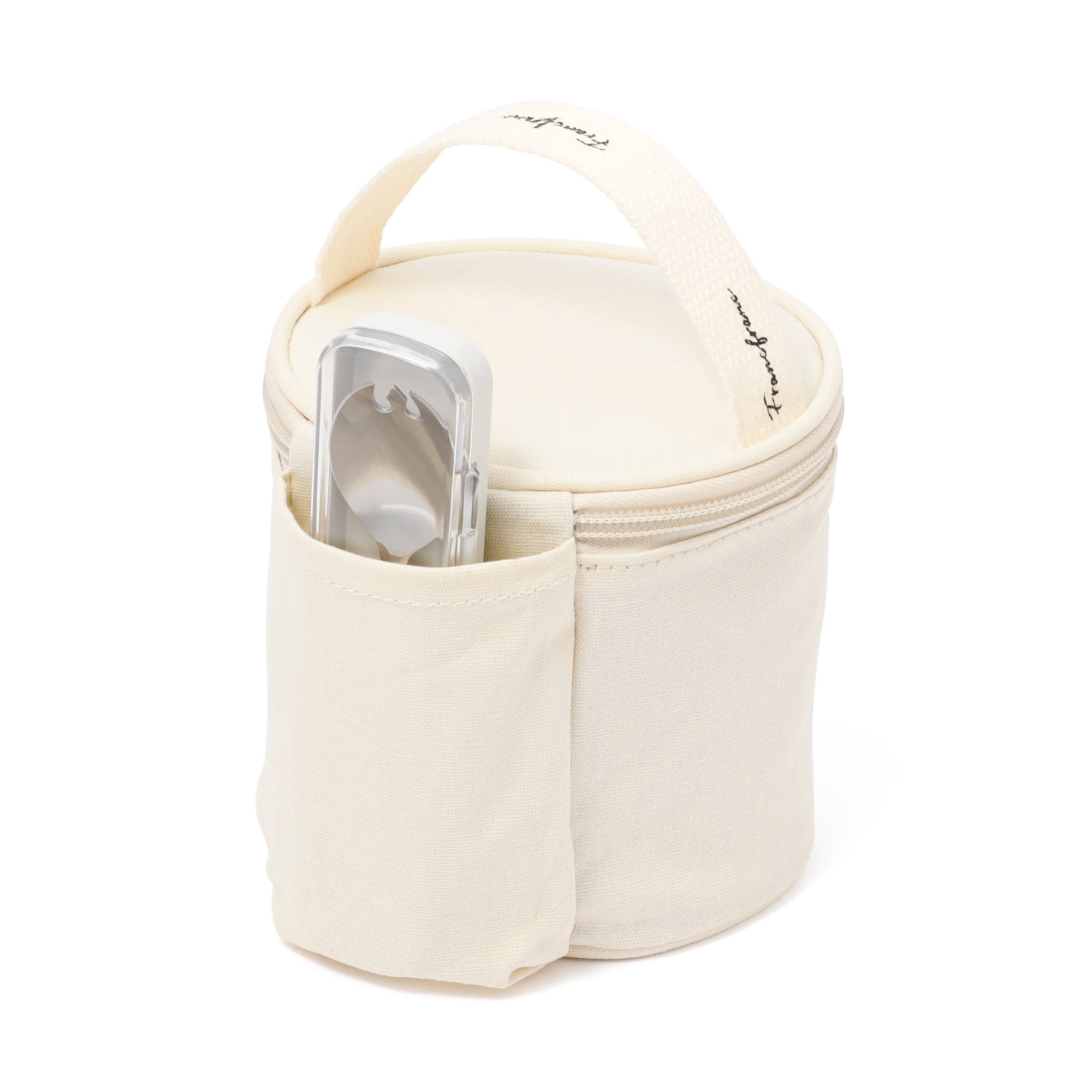 持ち運びに便利な専用ケース付きのスープジャーです。真空二重構造で保温・保冷効果があるので、出先でも温かいスープメインのヘルシーランチが楽しめます。圧抜き機能付きだから、内圧で蓋が開きづらくなった場合も簡単に開けられて便利。(圧抜き機能:キャップを外し、蓋中央の弁を押してください。弁を押すと蒸気が出ますので、押し込む際はカトラリー等の柄を使うか、布を一枚かませる等をして火傷をしないようにご注意ください。)ケースには別売りのスープジャー用カトラリー等が入れられるポケット付き。おにぎりケースとセットでの使用もおすすめです。