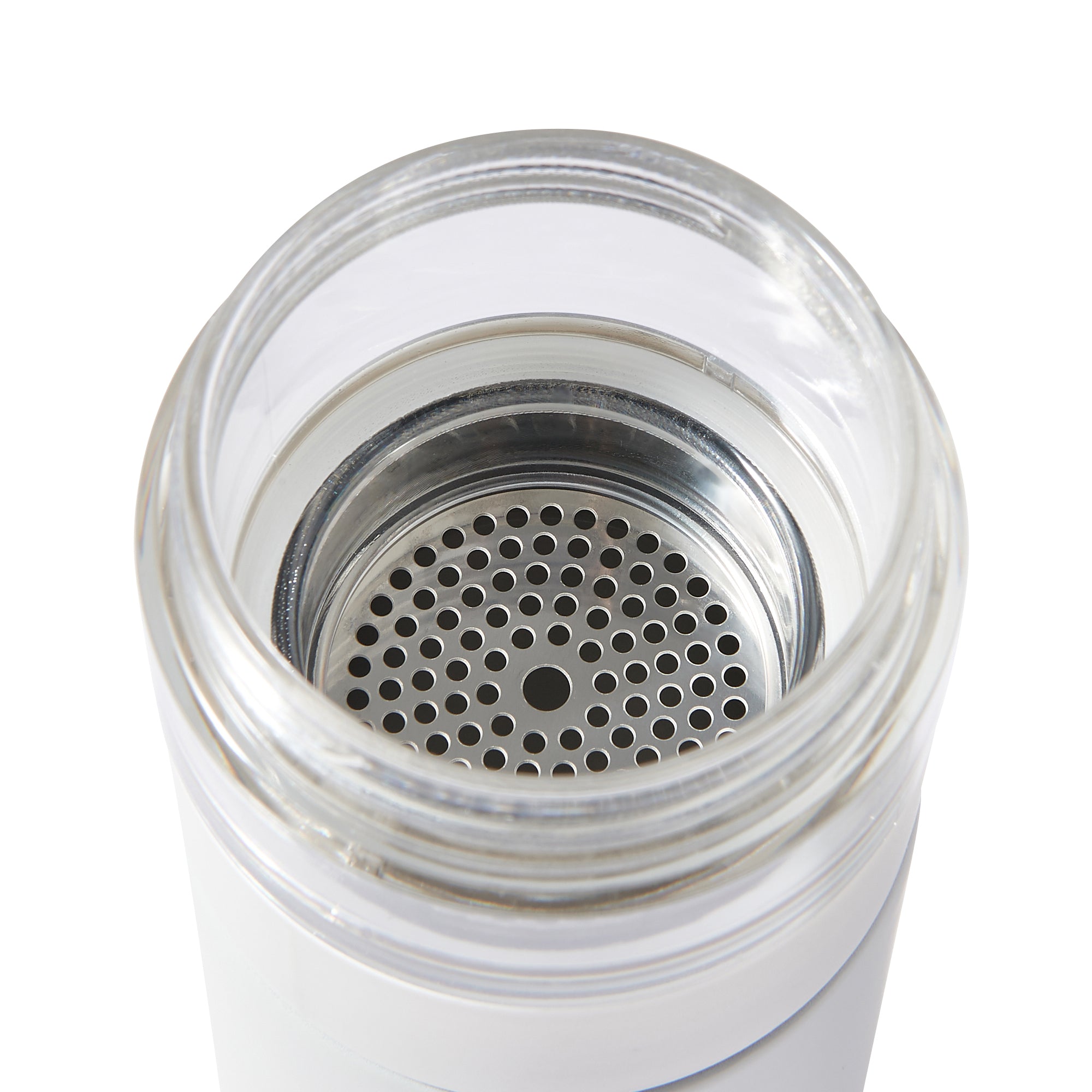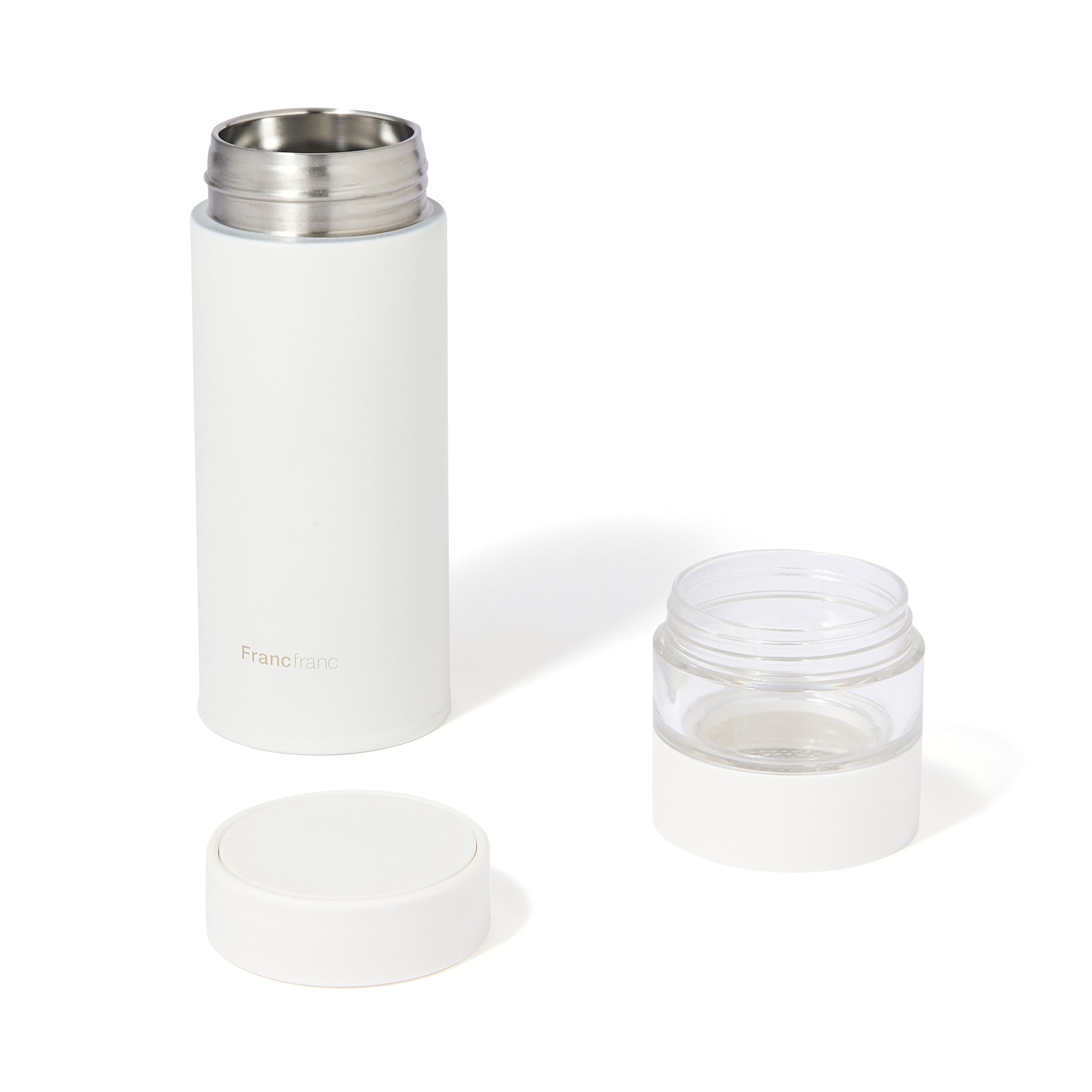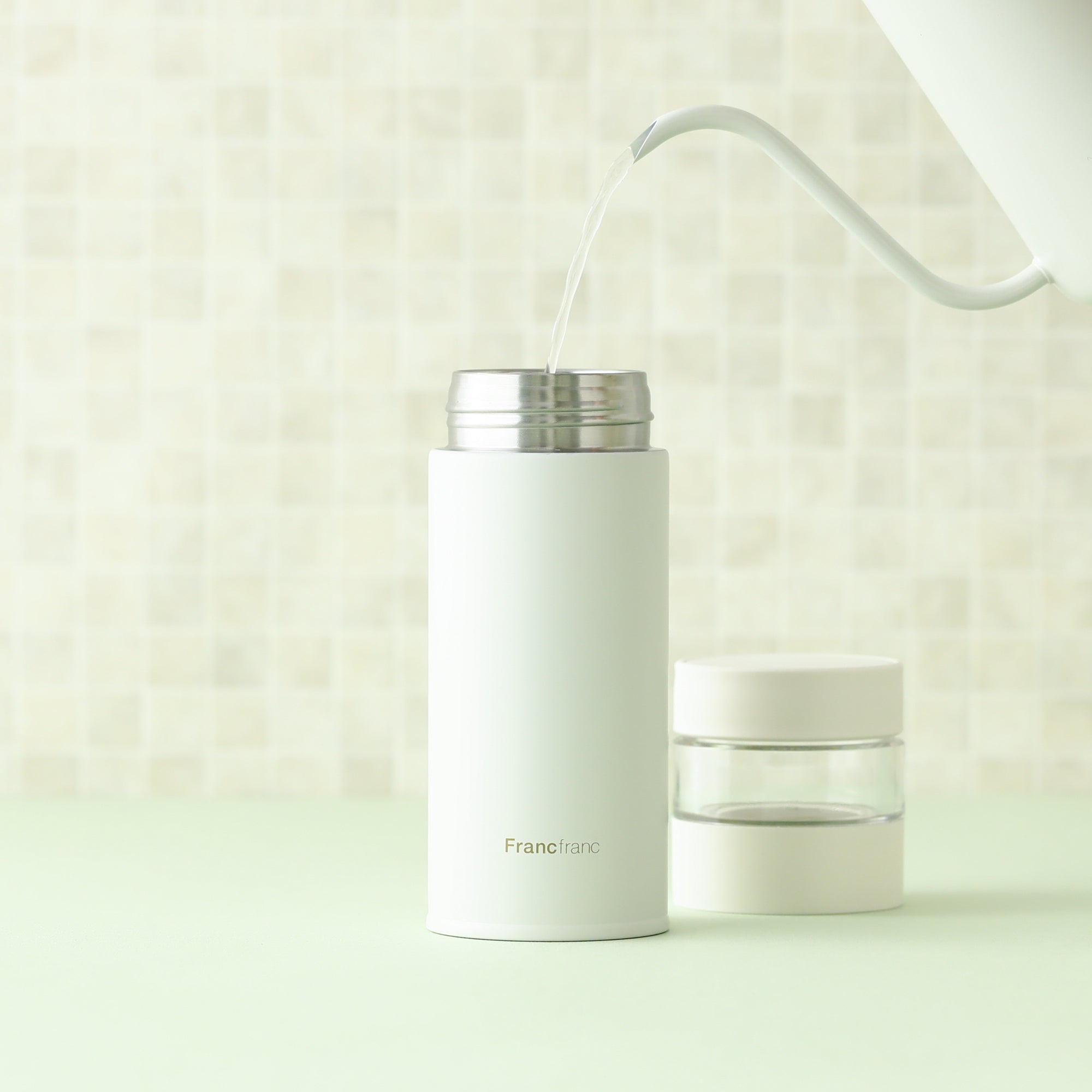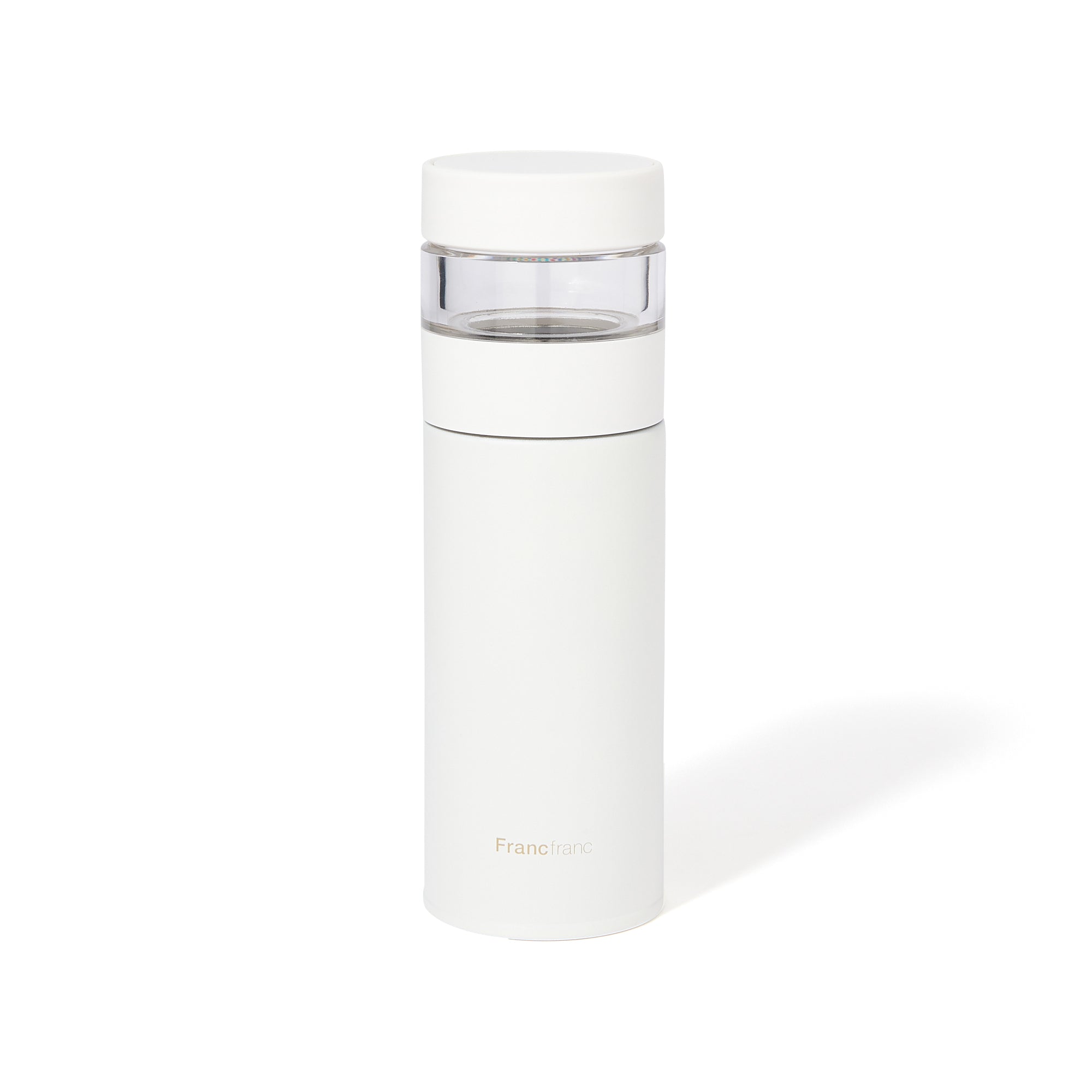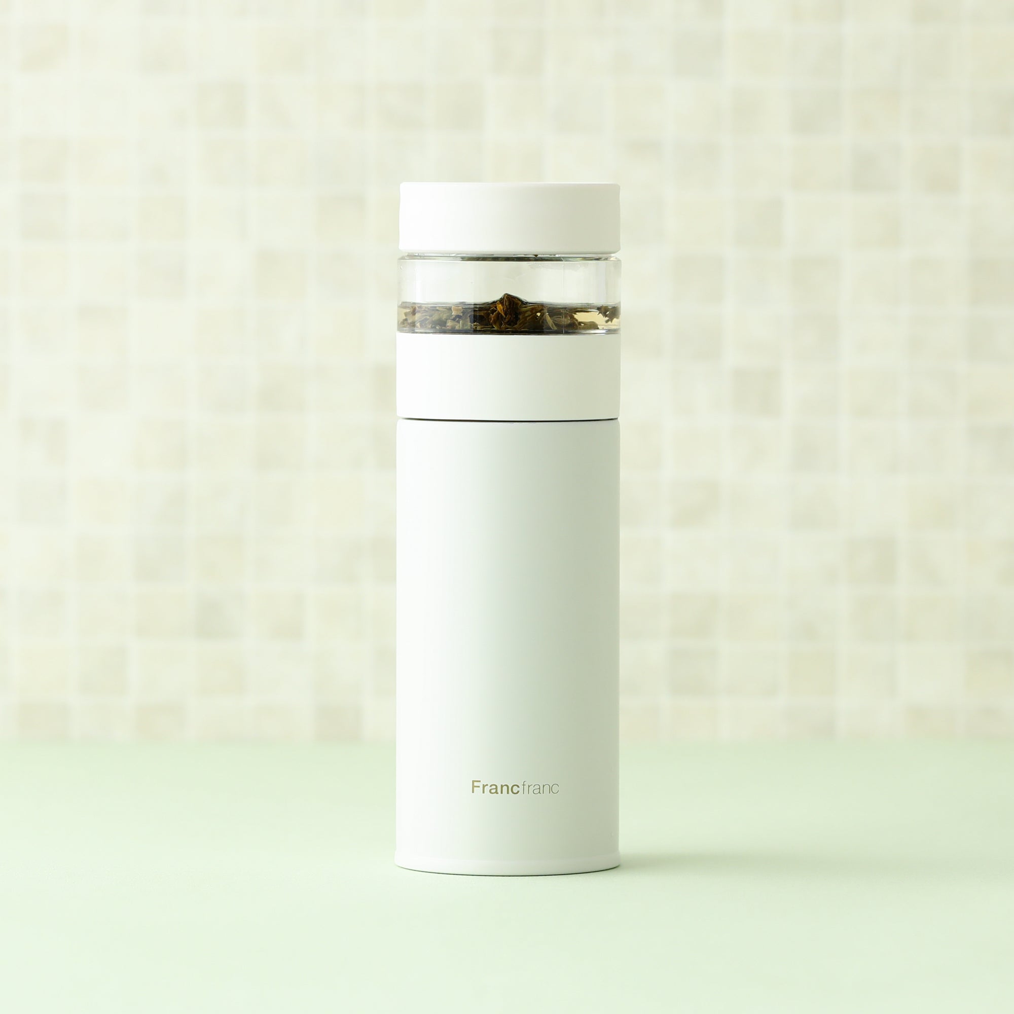 ティーポットなしで簡単においしいお茶が淹れられる、ストレーナー付きのティーボトルです。フタが平らになっているので、お茶を出す際は茶葉がお湯に浸るように逆さにして置いておくことができ、お好みの濃さになったらフタが上にくるように置くことで濃さをキープすることができます。ボトル部分がステンレス製で保温もできるので温かいお茶を長くお楽しみいただけ、持つ際も熱さを感じにくい仕様です。持ち運びに適している300mlサイズとおうちでたっぷり飲みたい時の500mlサイズをご用意しているのでシーンに合わせてお選びいただけます。<使用方法>1.ボトル本体にお湯を入れる2.ストレーナーをつけ茶葉を入れる3.上蓋を閉め、逆さまにしてお茶を抽出させる4.お好みの濃さになったら蓋を上に戻す ※ストレーナーに溜まった水分が漉されるまで時間がかかる場合がありますので、ストレーナーを開ける前に水分がボトル本体に落ち切ったことをよく確認してください。本体を軽く傾けると水分が流れやすくなります。5.ストレーナーを外して飲む