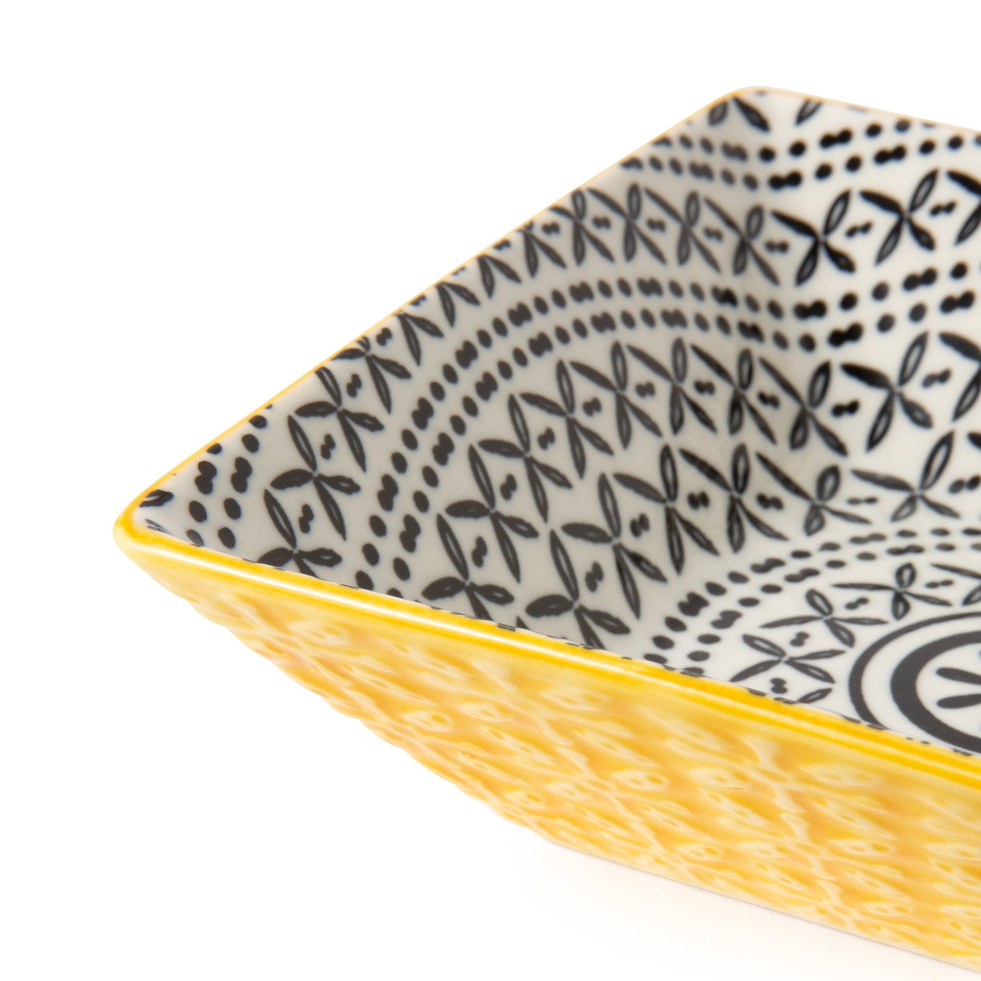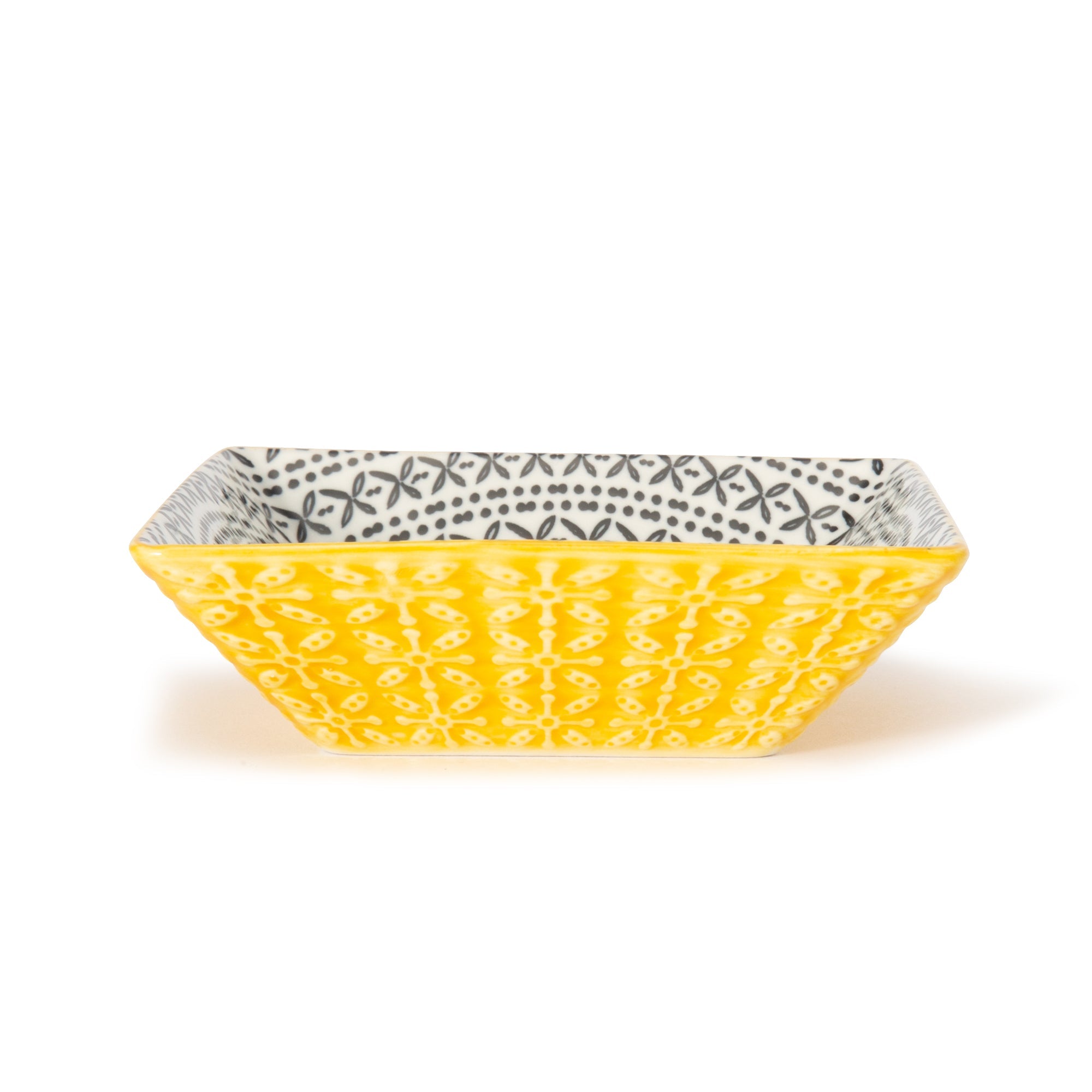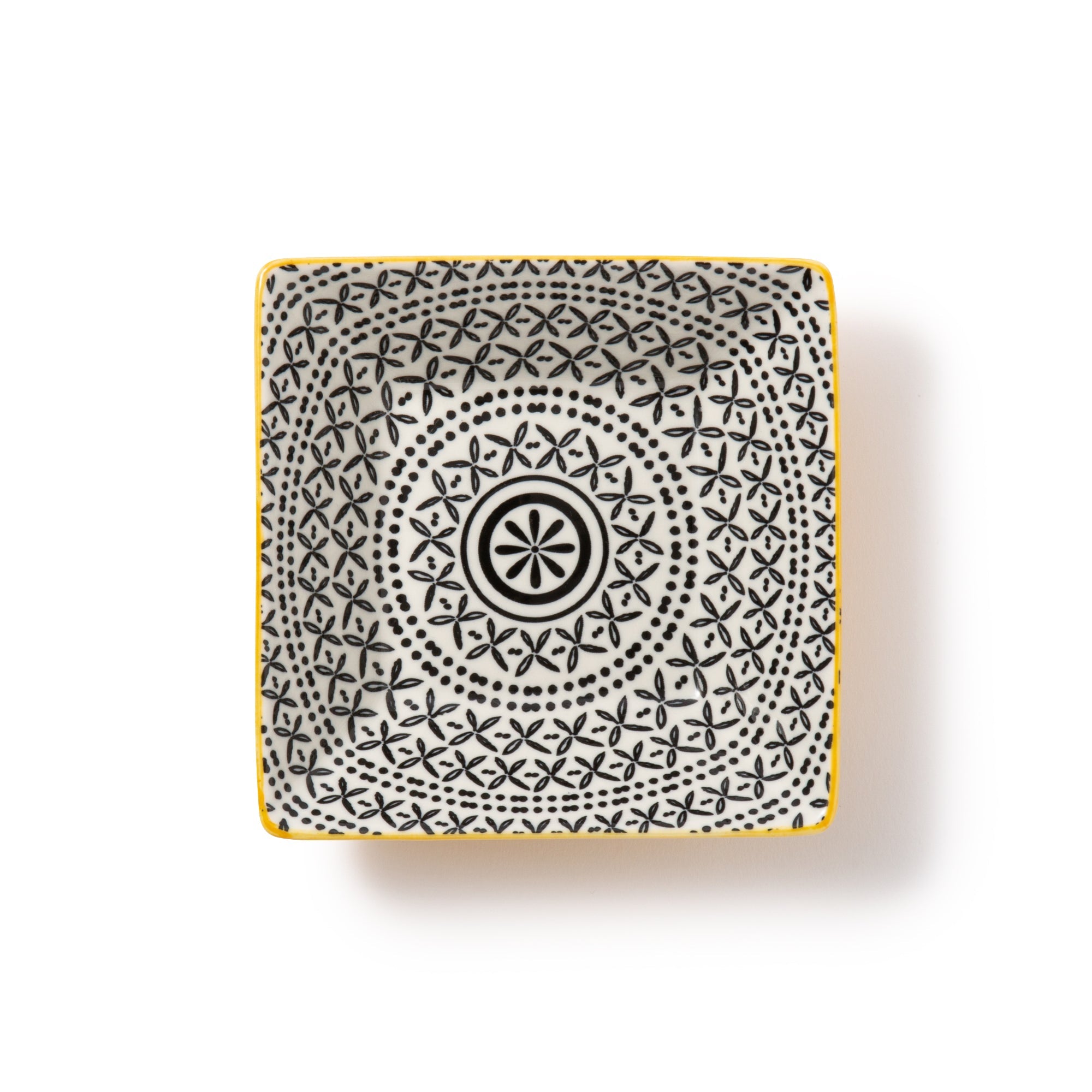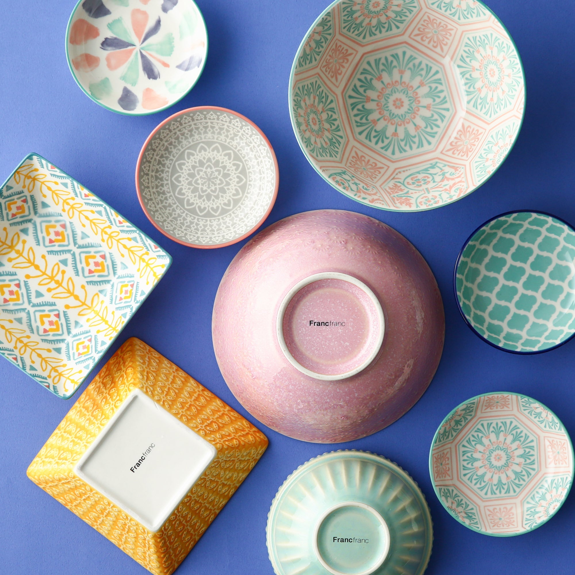 華やかなデザインで食卓を楽しくさせてくれる角小皿です。電子レンジ、食器洗浄機がお使いいただけるので普段使いにぴったりです。カラー違いで揃えたり、同シリーズで別売りの茶碗や小皿などと合わせて贈り物にもおすすめです。