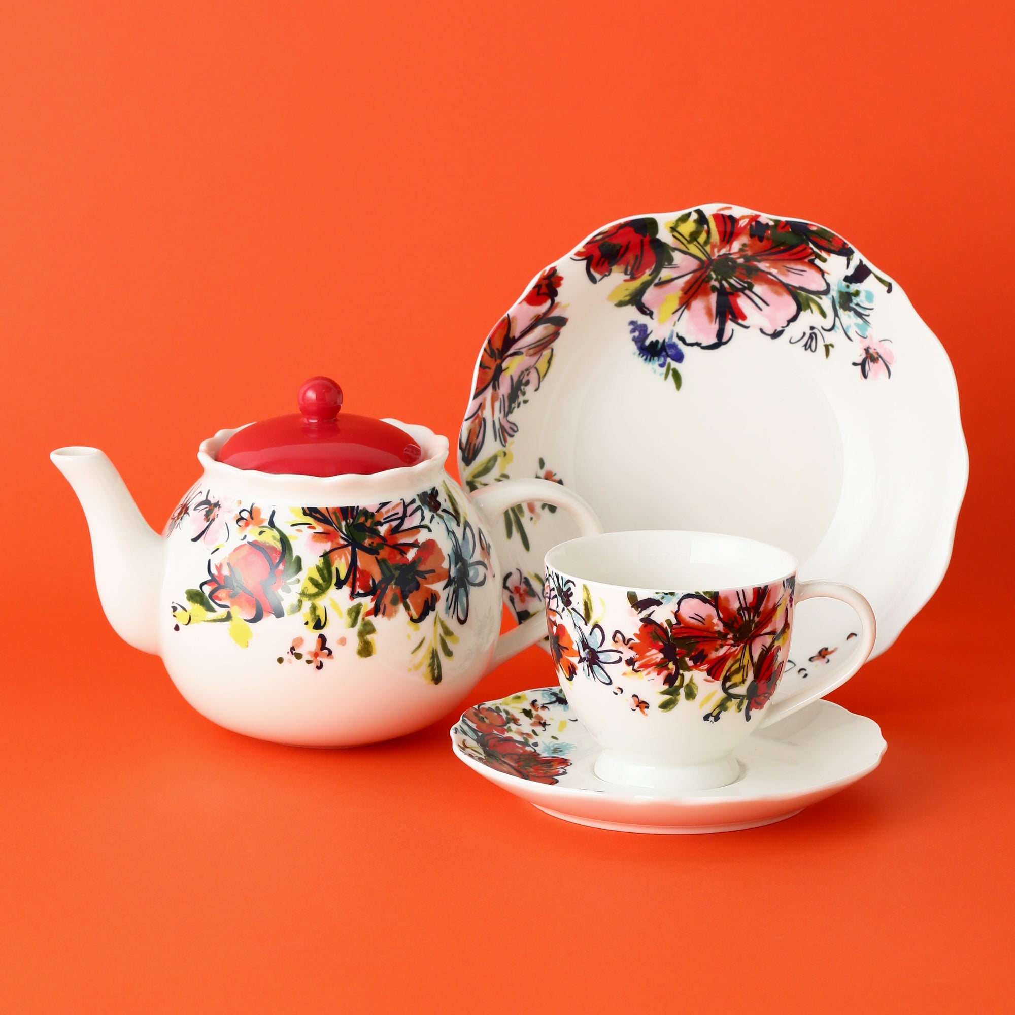 カラフルなお花が活き活きとしたタッチで描かれた春らしいティーポットです。食卓がぐっと楽しくなるヴィヴィッドな色使いで、ラテンムード満載です。