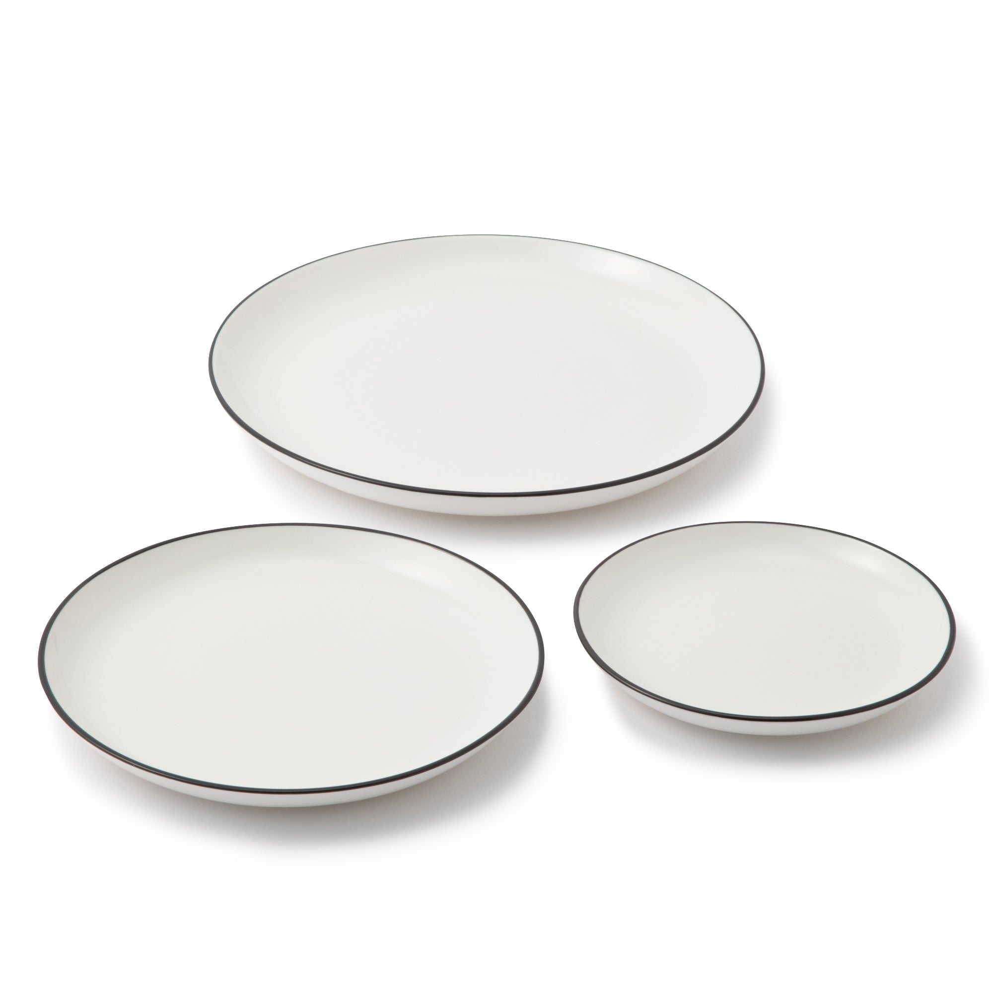 使い勝手のいいプレートのサイズ違い3枚セットです。S・Mサイズは取り分け用やサラダ、デザートの盛り付けに、Lサイズはメインディッシュの盛り付けに適したサイズ感です。やわらかな白色はどんなお料理とも相性がよく、シンプルなデザインなのでお持ちの食器ともコーディネートしていただきやすくなっています。食卓にさりげなく彩りを添える縁取りのデザインがポイント。重ねられるのでかさばらず、収納にも困りません。人気の「オルディシリーズ」では、一人暮らしの方からファミリーまで様々なライフスタイルに適した幅広いアイテムを取り揃えています。日々の食卓をちょっぴり豊かにしてくれるタイムレスな一枚をぜひ見つけてください。
