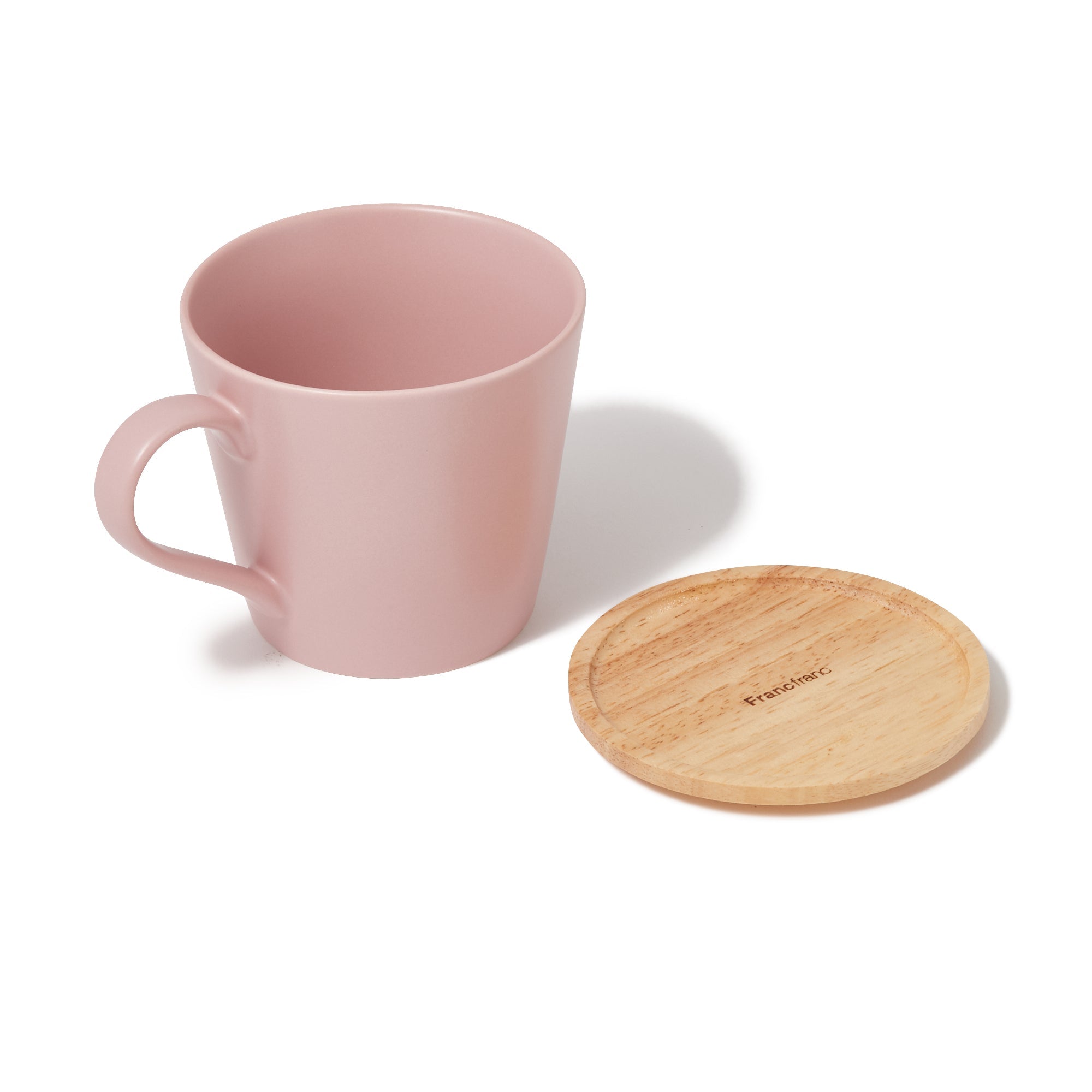 木のフタがついた、マットな質感の釉薬で仕上げたマグです。木のフタはコースターとしてもお使いいただけます。普段使いやすいシンプルなデザインで、かわいい箱に入っていますのでギフトにもおすすめです。お求めになりやすい価格も魅力です。