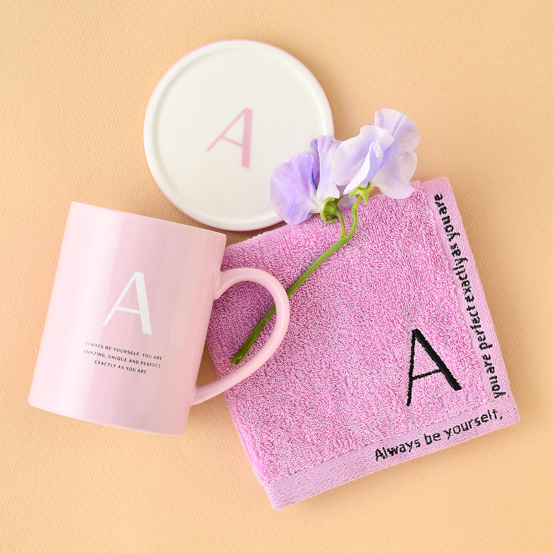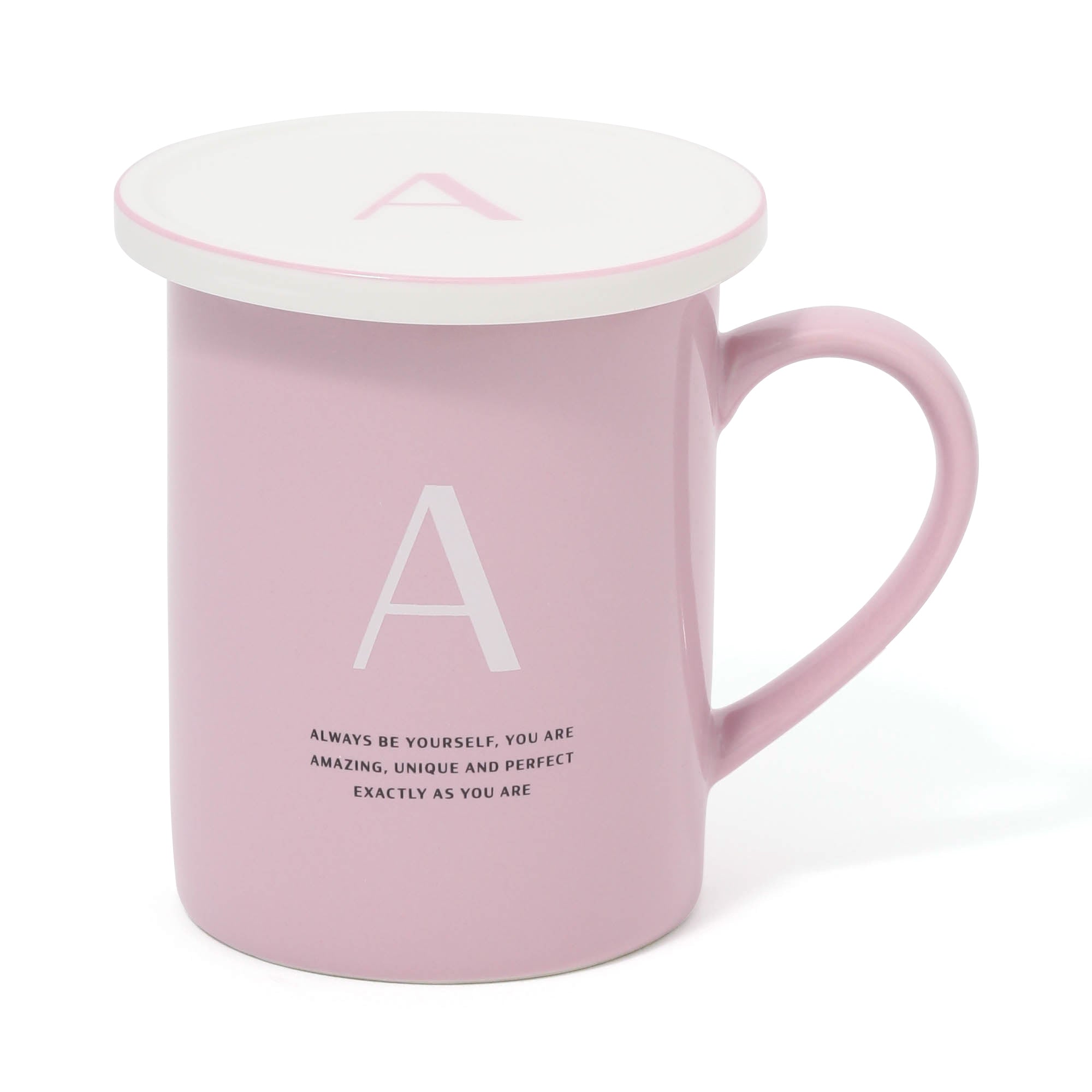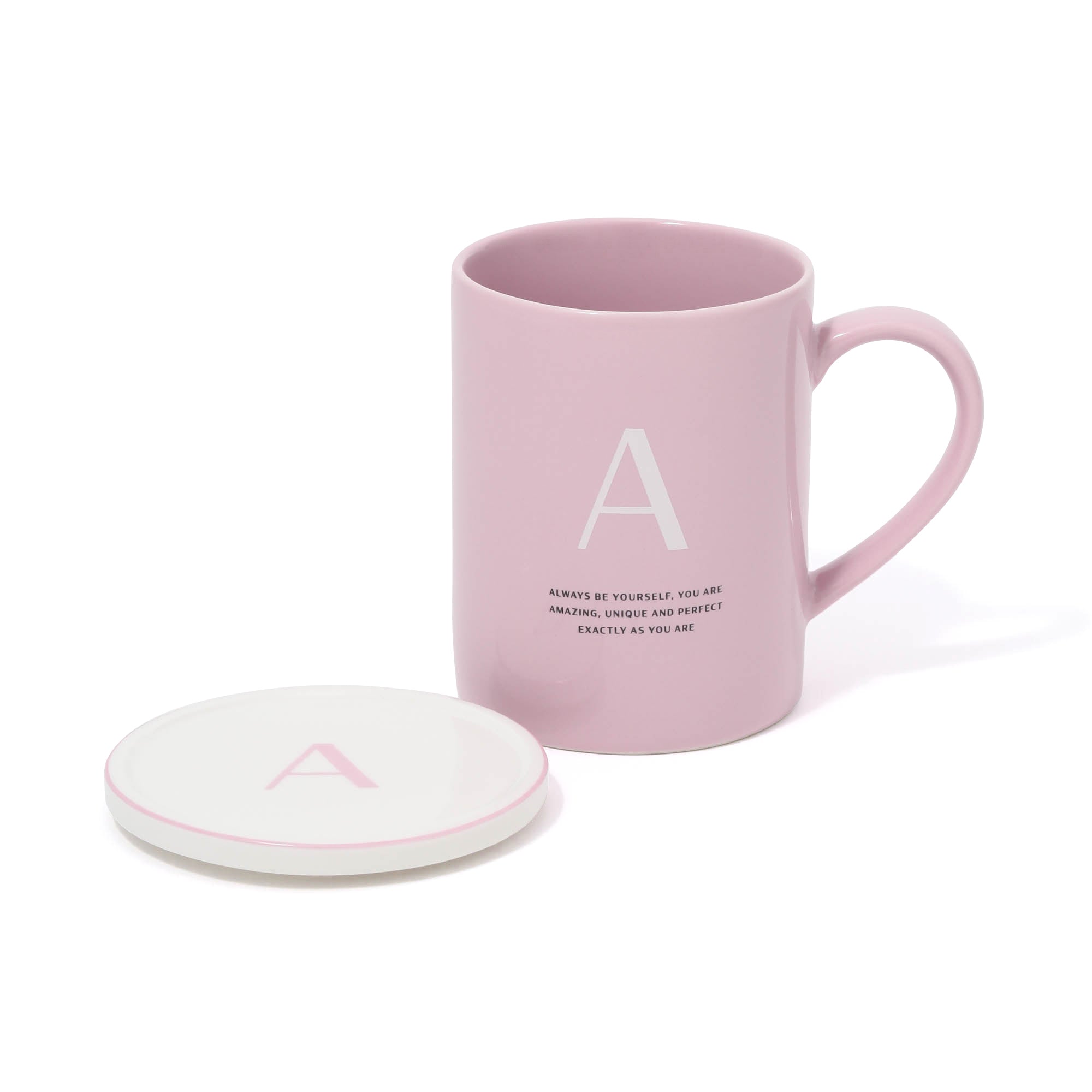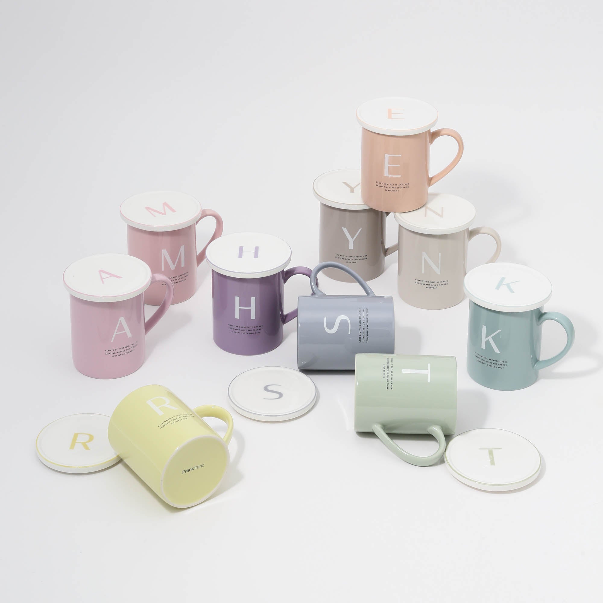 フタ付きのイニシャルマグです。家族や友人とイニシャル別に使い分けたり、素敵なメッセージがプリントされているので、プレゼントしても最適です。付属のフタはティーパックを乗せたり、裏返してコースターとしても使用していただけます。オフィスなどでしばらく離れる時はフタをしてホコリの侵入を防ぐことができます。おそろいのティースプーンとギフトで贈るのもおすすめです。