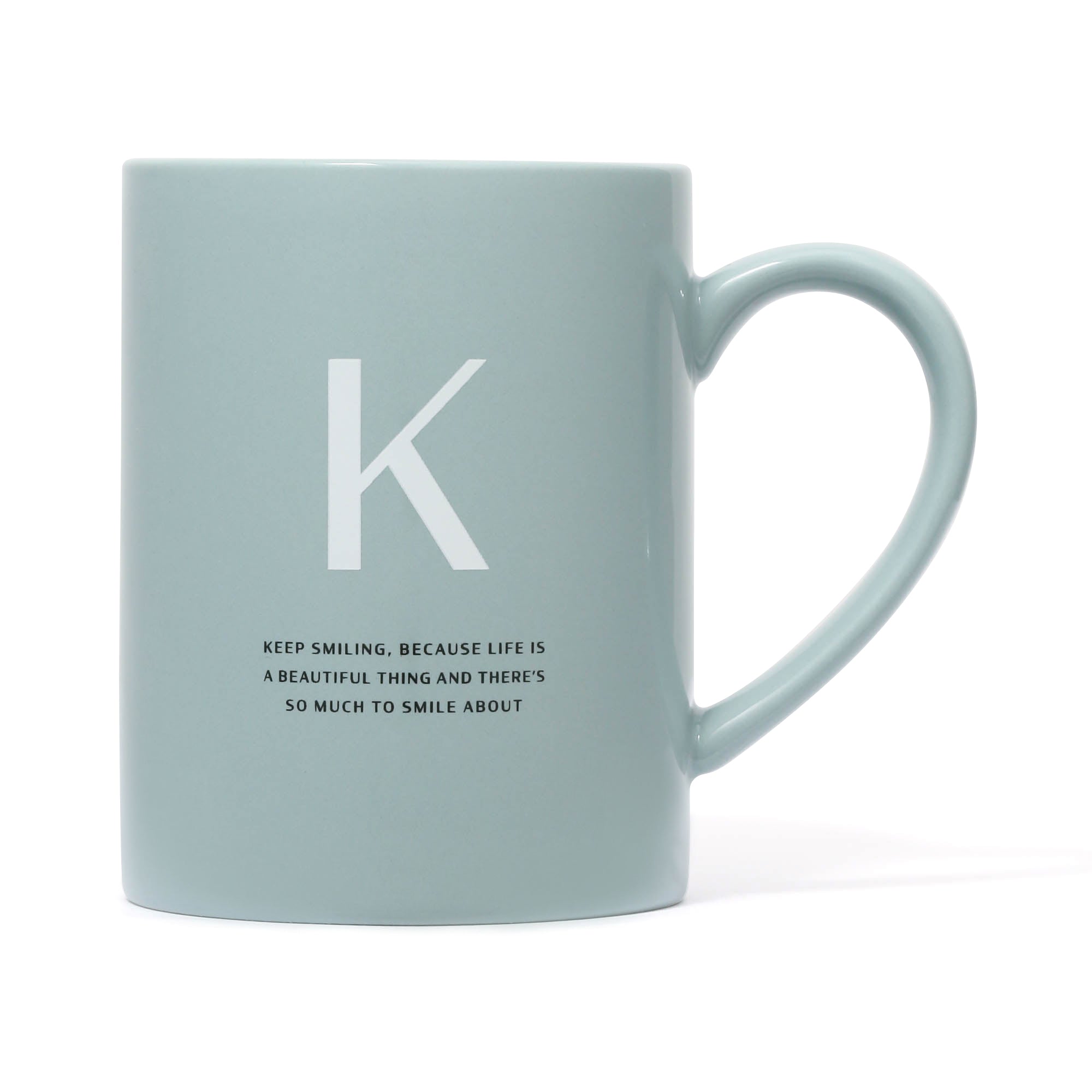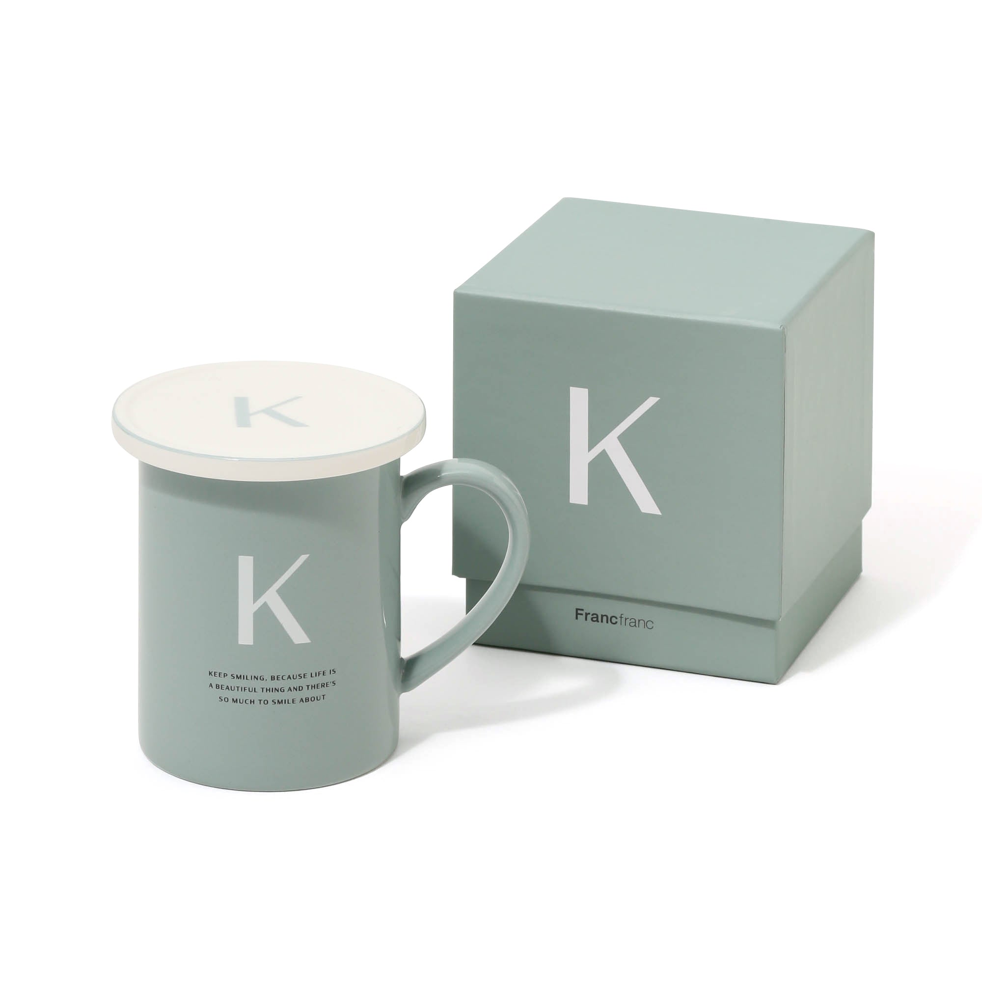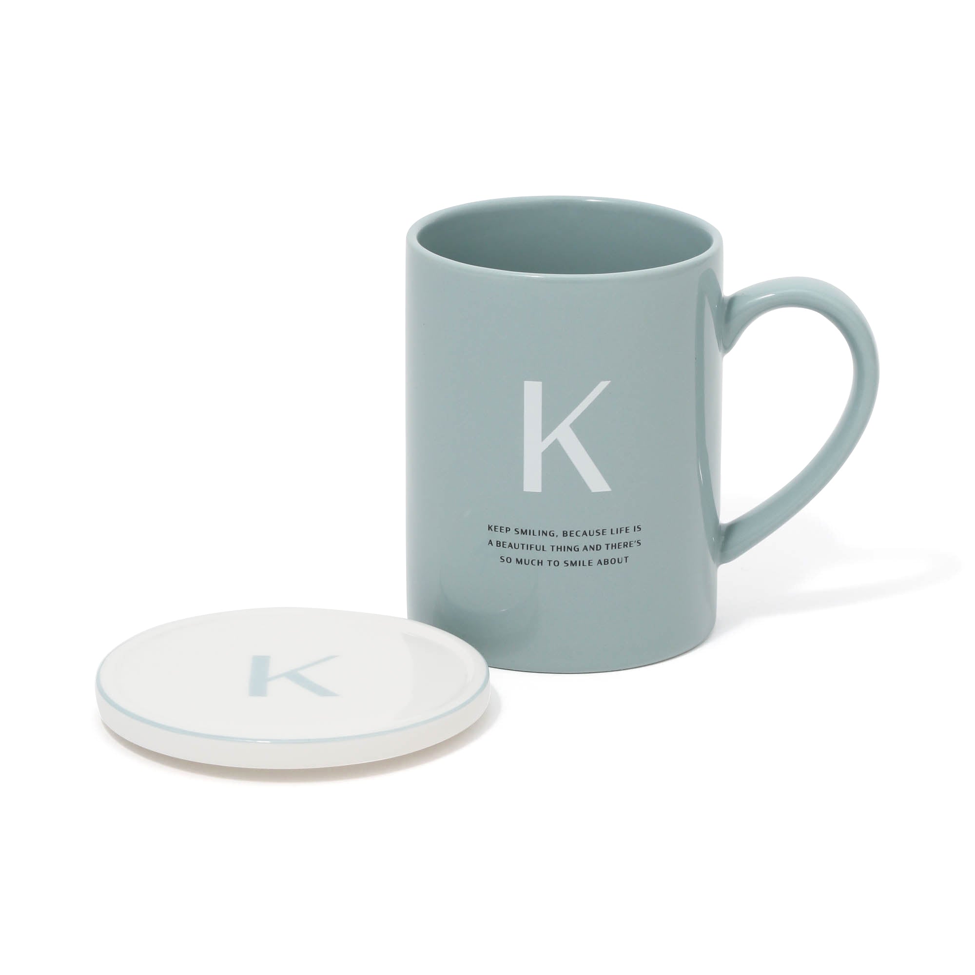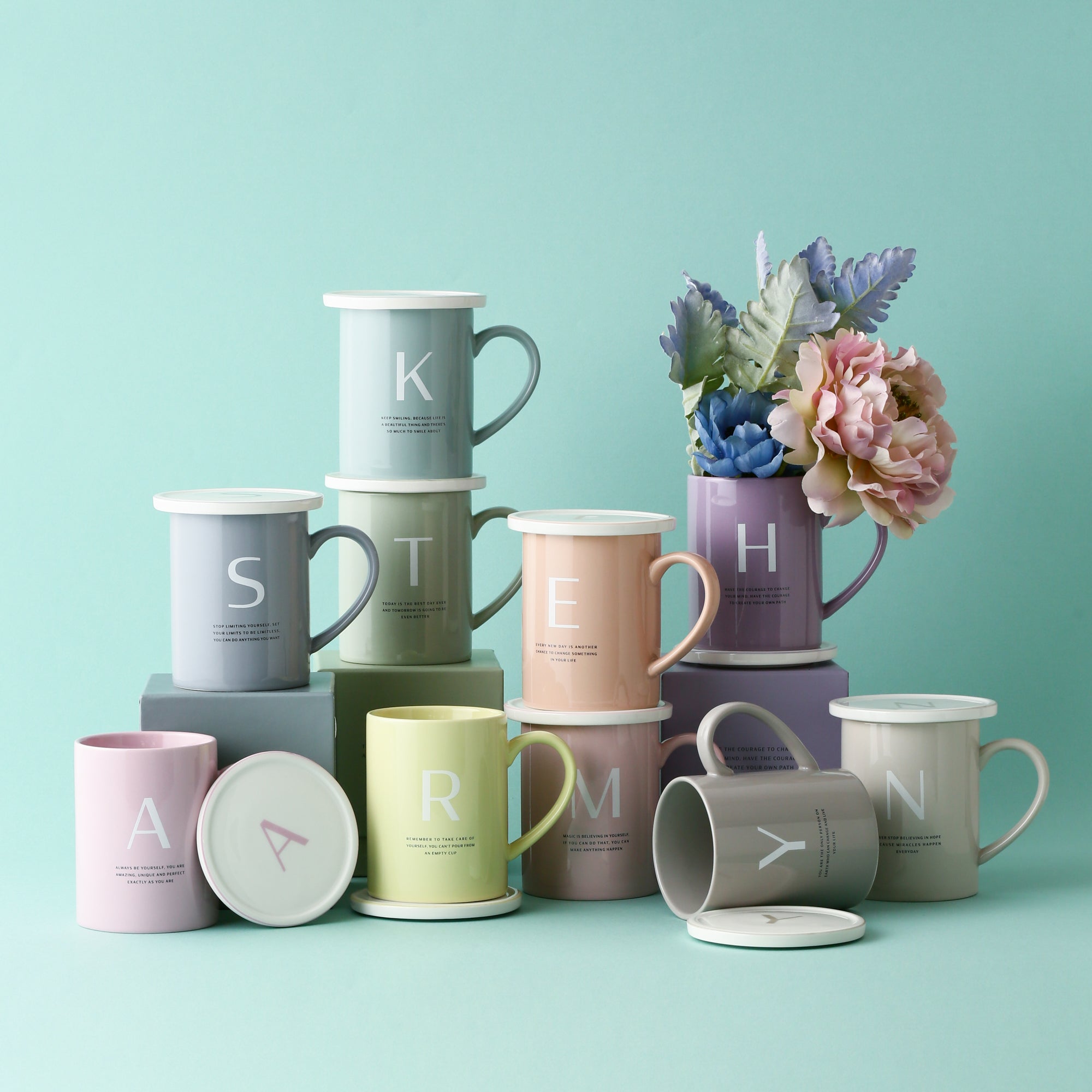 フタ付きのイニシャルマグです。家族や友人とイニシャル別に使い分けたり、素敵なメッセージがプリントされているので、プレゼントしても最適です。付属のフタはティーパックを乗せたり、裏返してコースターとしても使用していただけます。オフィスなどでしばらく離れる時はフタをしてホコリの侵入を防ぐことができます。おそろいのティースプーンとギフトで贈るのもおすすめです。