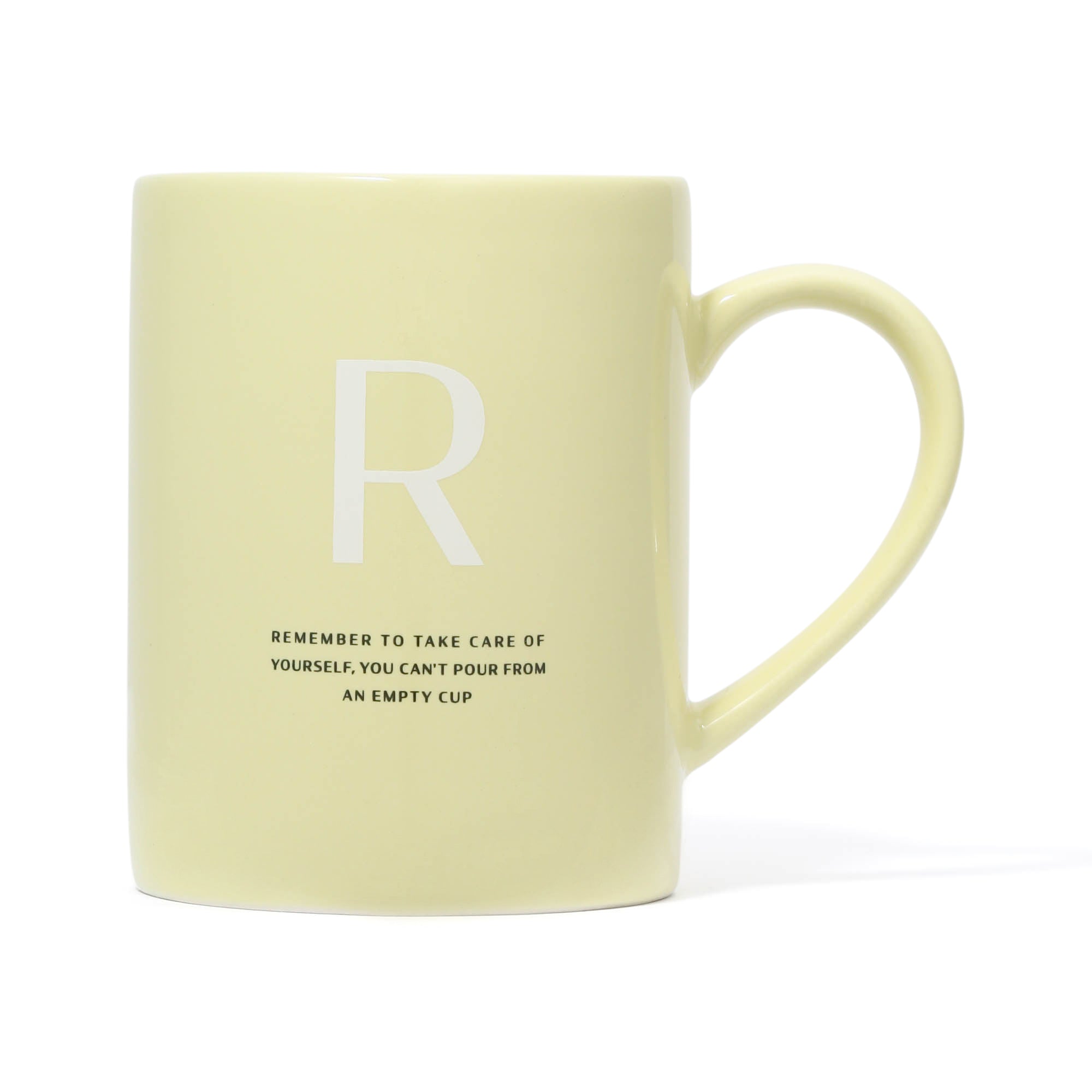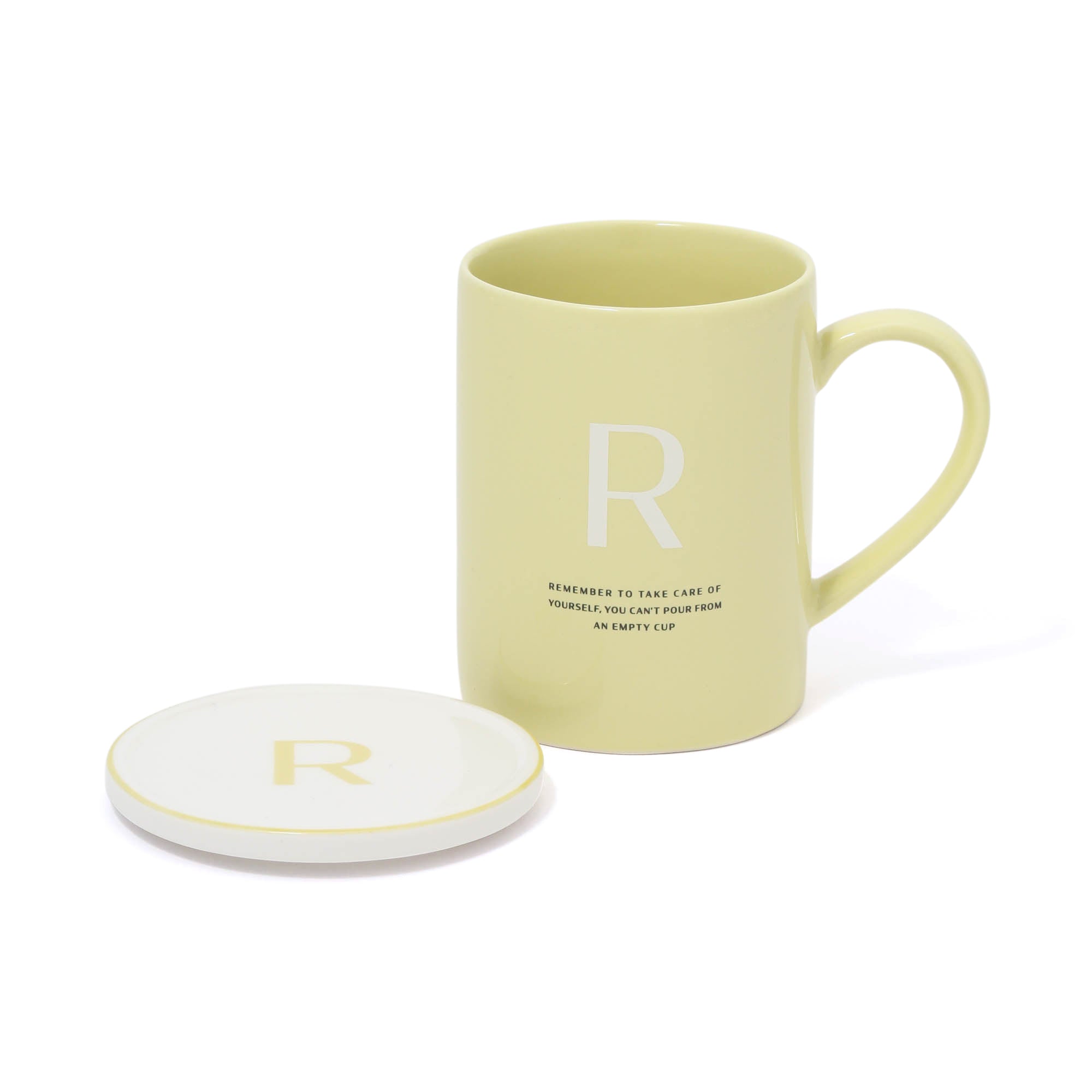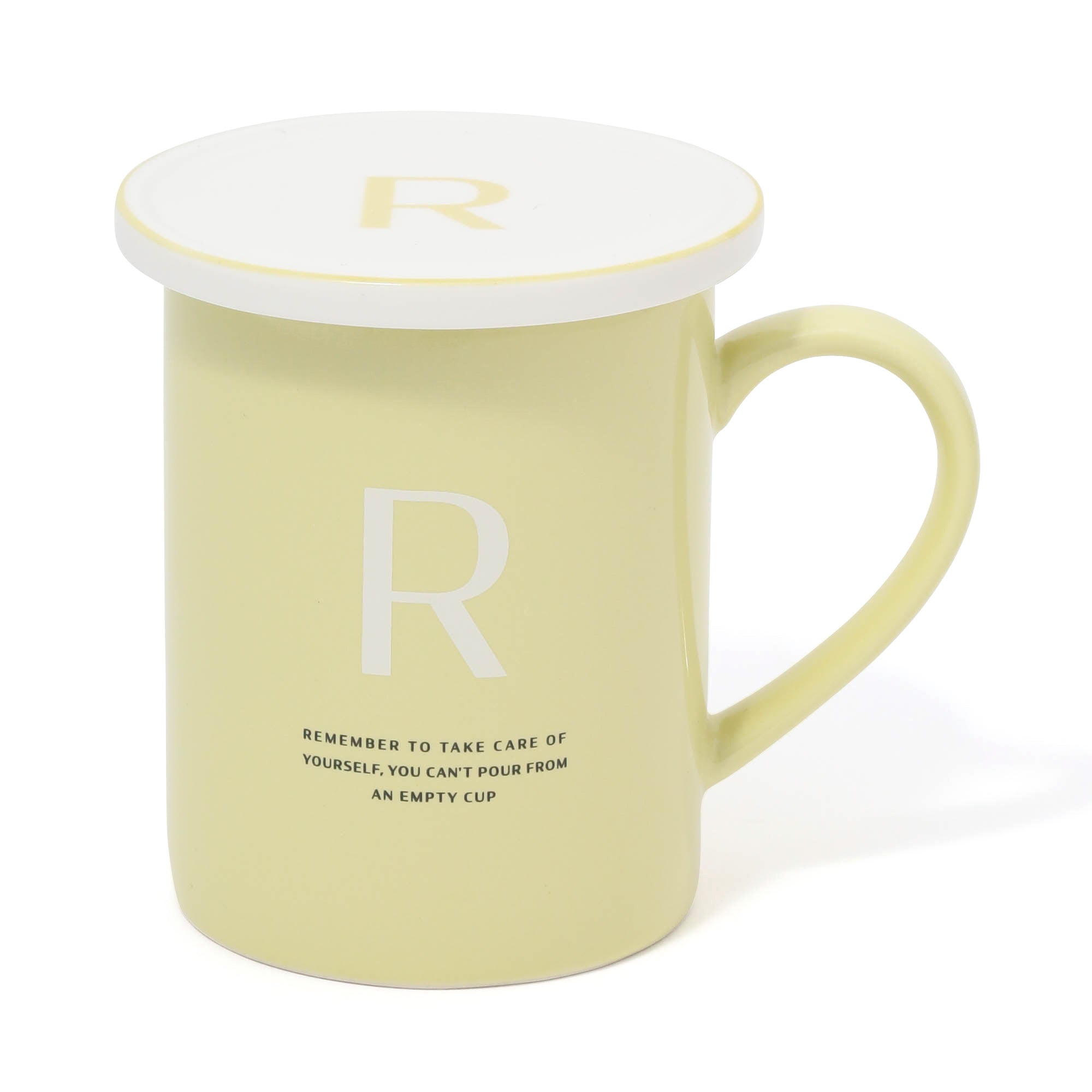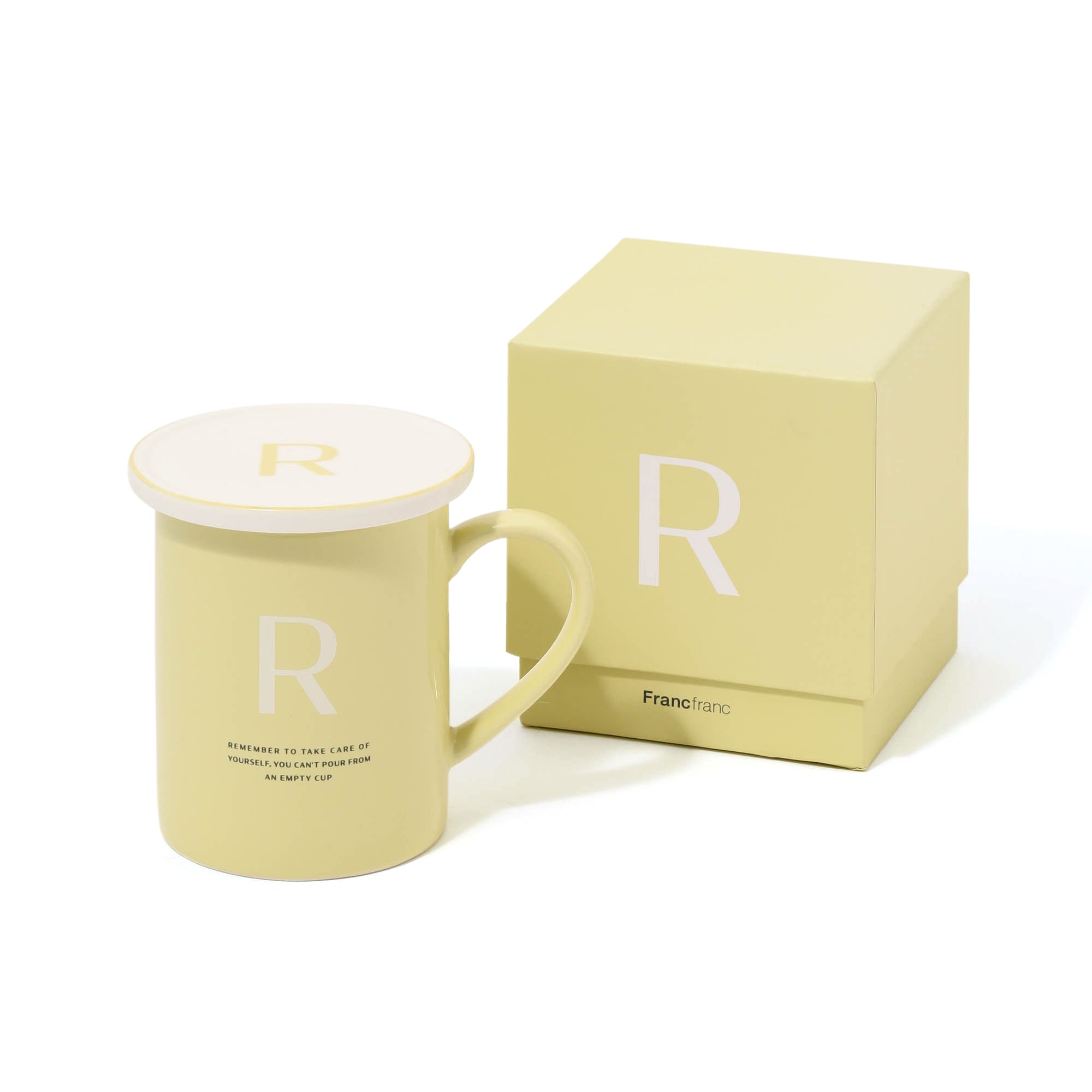 フタ付きのイニシャルマグです。家族や友人とイニシャル別に使い分けたり、素敵なメッセージがプリントされているので、プレゼントしても最適です。付属のフタはティーパックを乗せたり、裏返してコースターとしても使用していただけます。オフィスなどでしばらく離れる時はフタをしてホコリの侵入を防ぐことができます。おそろいのティースプーンとギフトで贈るのもおすすめです。