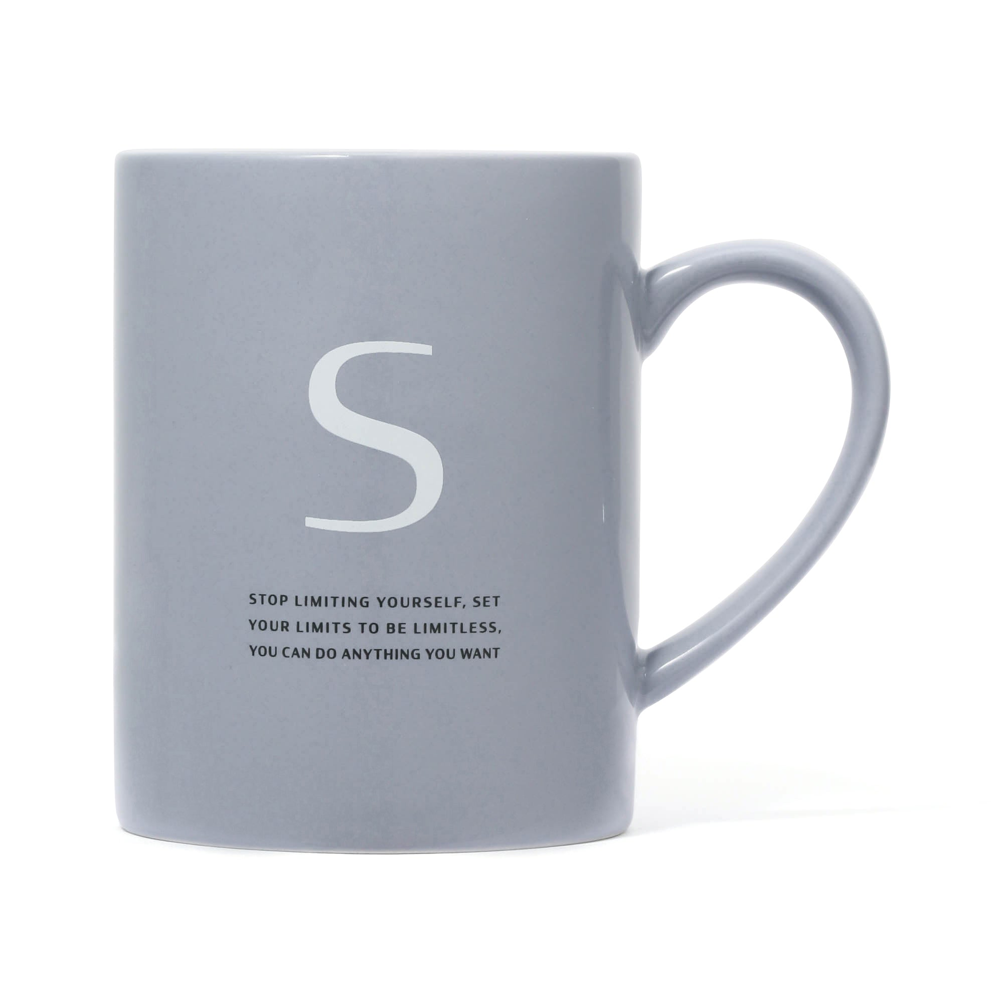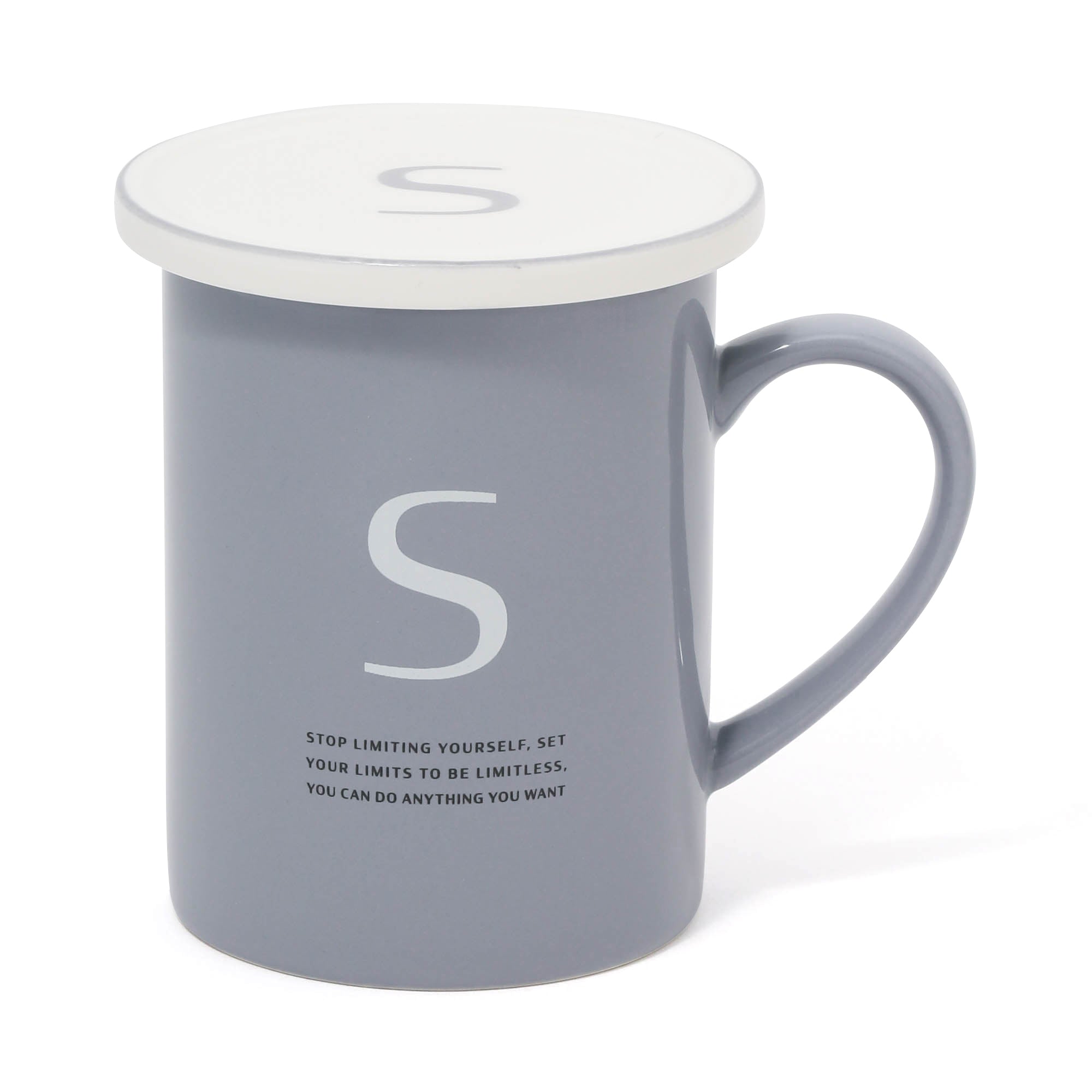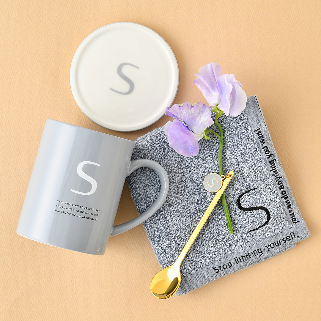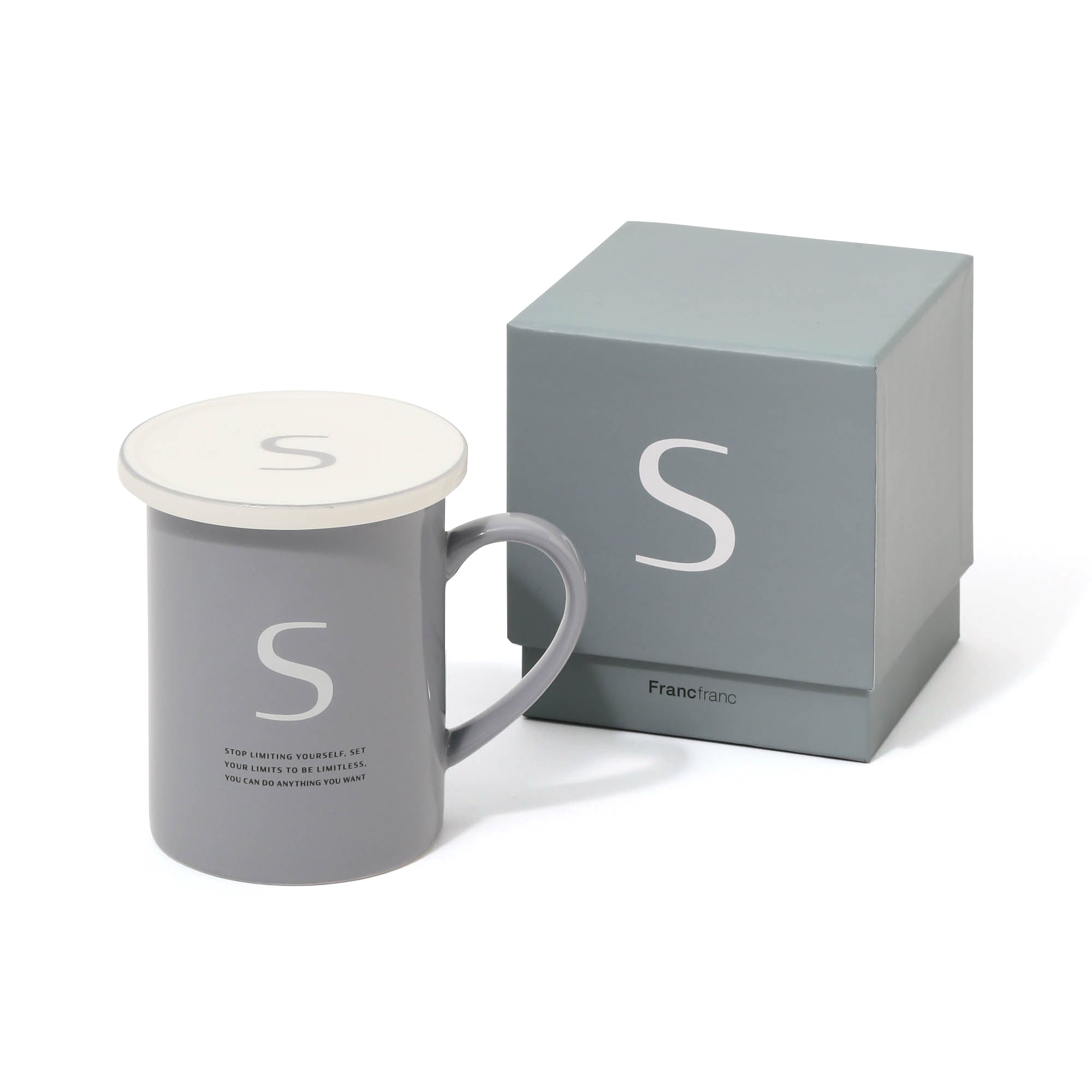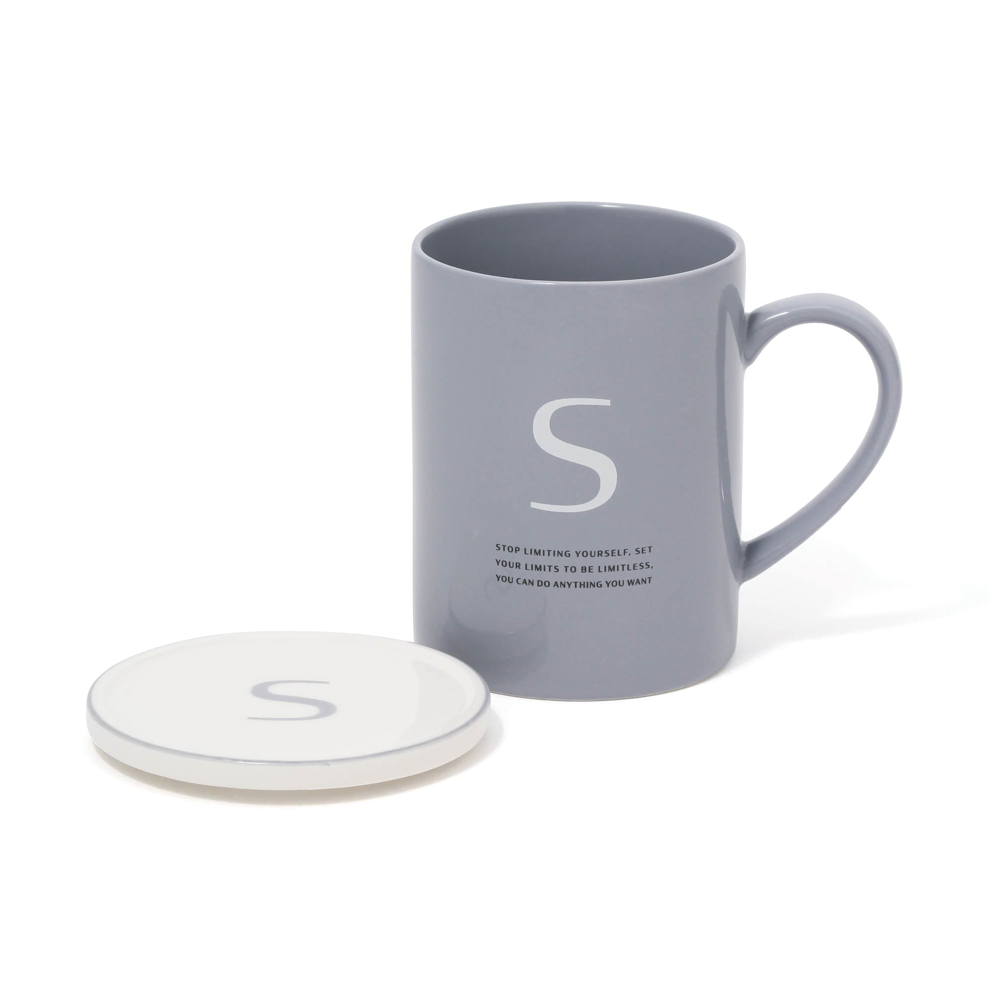 フタ付きのイニシャルマグです。付属のフタはティーパックを乗せたり、裏返してコースターとしても使用していただけます。おそろいのティースプーンとギフトで贈るのもおすすめです。