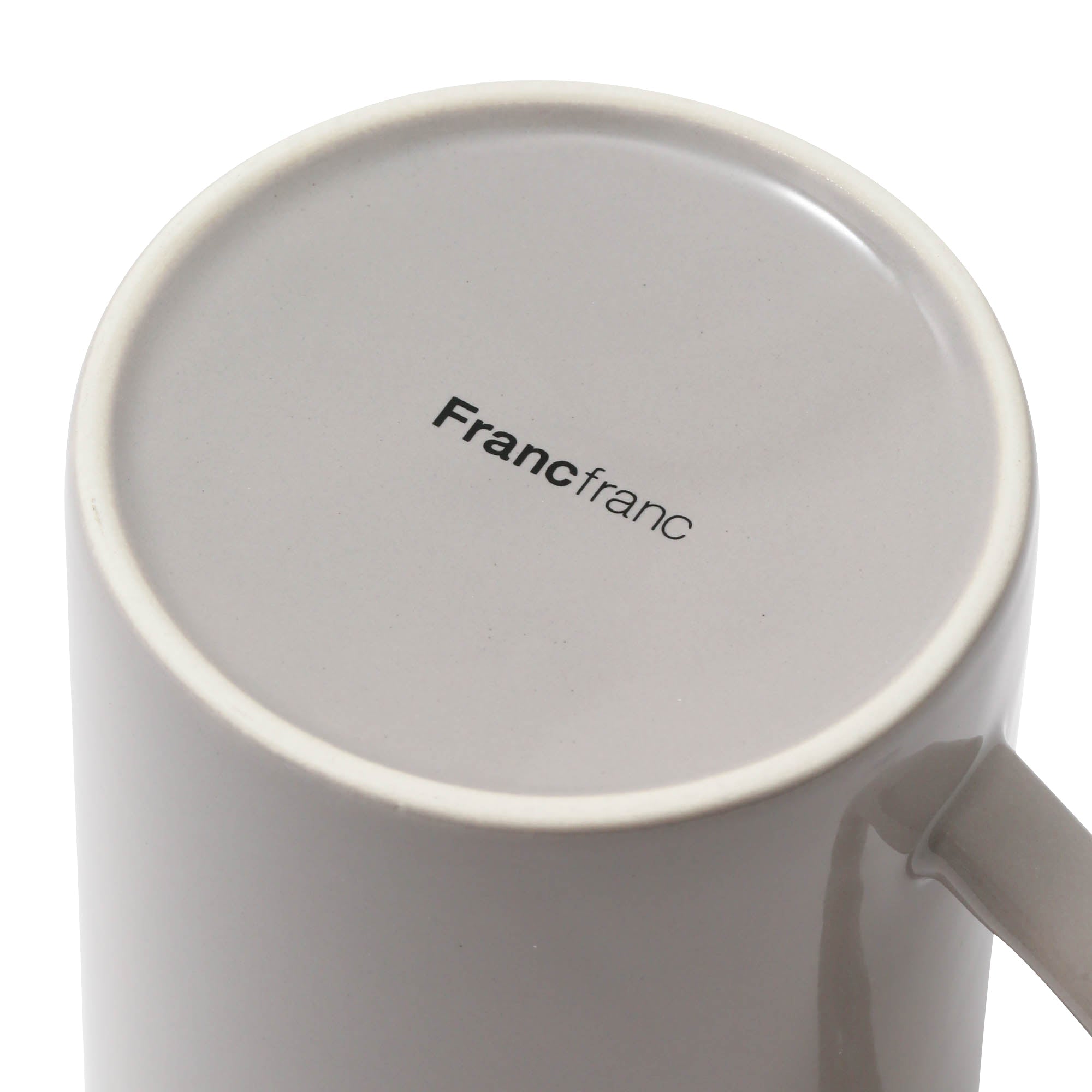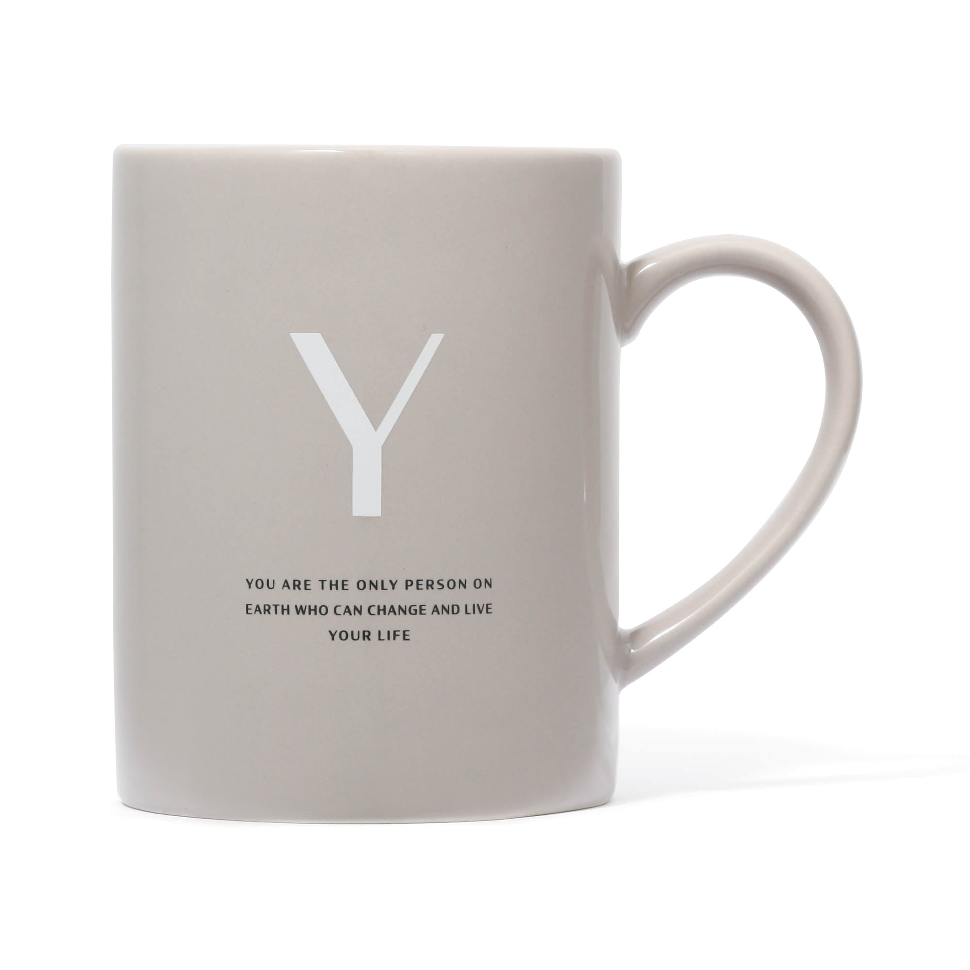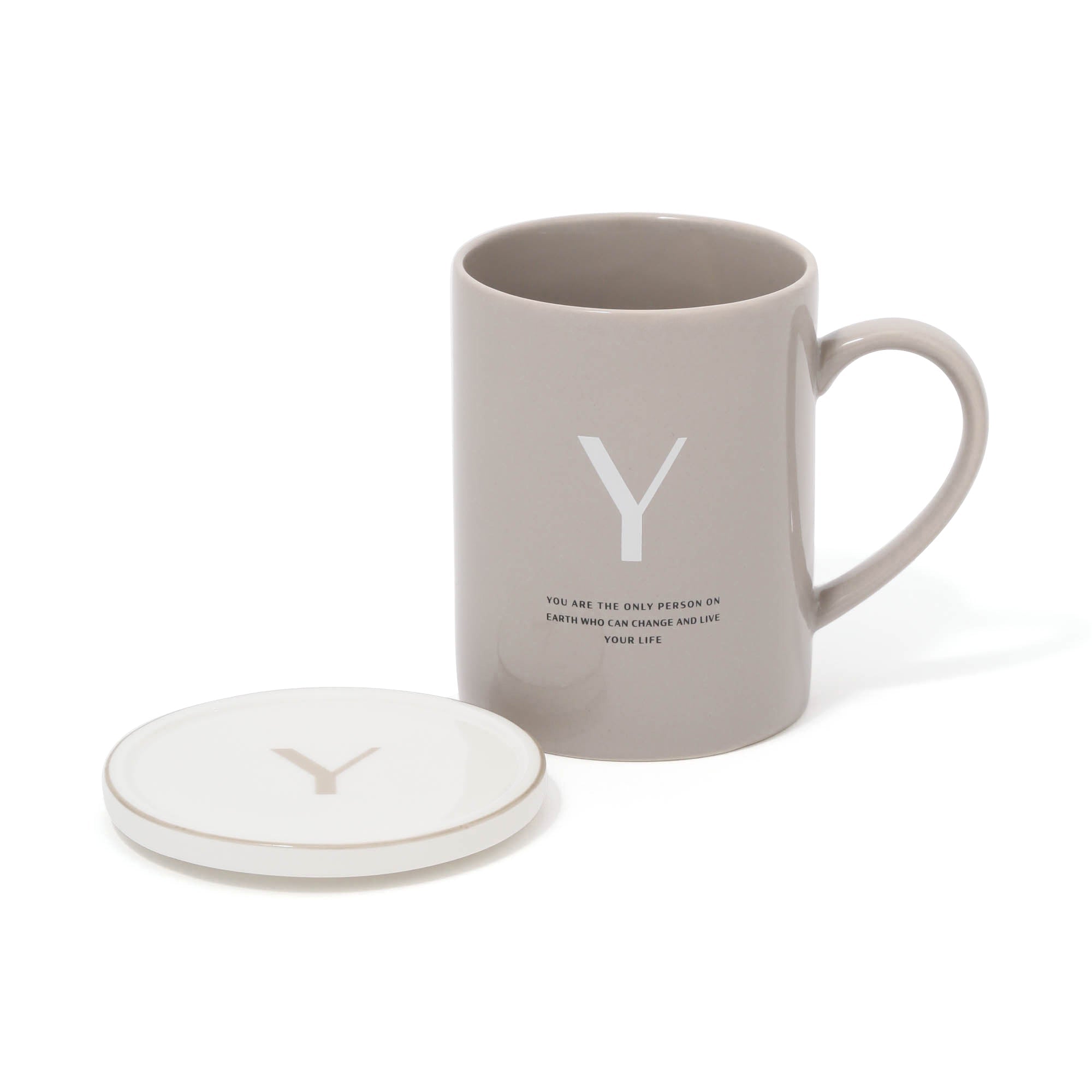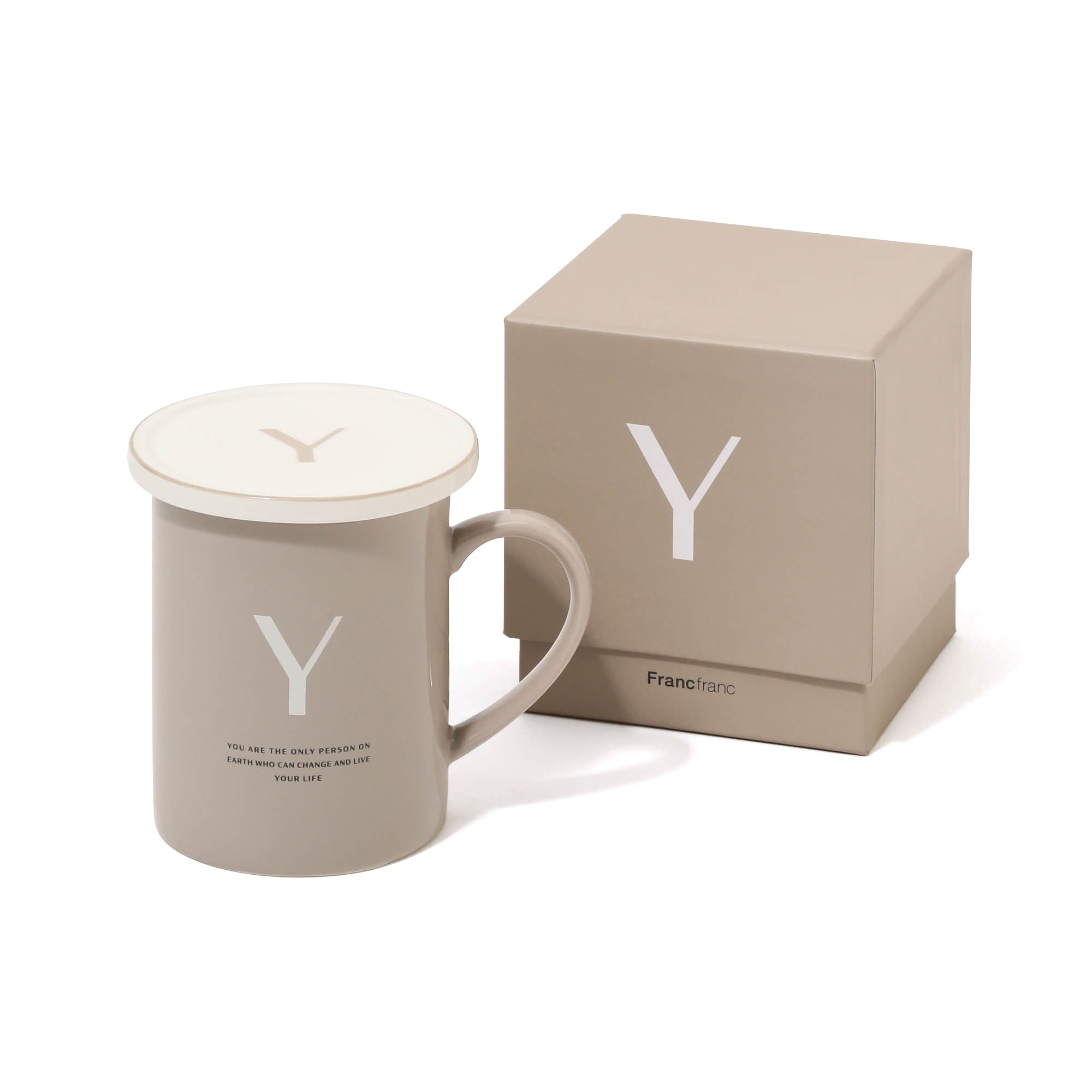フタ付きのイニシャルマグです。シンプルでおしゃれなマグはご自分用にもプレゼントにもぴったりのアイテム。 また、箱もおしゃれなのでそのままギフトにできるのもうれしいポイントです。 誕生日や母の日などさまざまなシーンにご利用いただけます。イニシャルマグはアルファベットによって色が違います。アルファベットは10種類。 ご自身のイニシャルにしたり、お気に入りのメッセージで選んだり、選べる楽しさがあります。容量は326mlと一般的なサイズのマグカップで、飲み物をたっぷりと注げます。 素材のストーンウェアは耐水性があり、汚れがつきにくいのが特徴。付属のフタはティーパックを乗せたり、裏返してコースターとしても使用していただけます。 ホワイトカラーをメインに、淡いブラウンで「Y」のイニシャルが入っています。マグの底にはFrancfrancのロゴが入っています。口当たりが滑らかな飲み口です。 持ちてはしっかり指にフィットするタイプなので、とても飲みやすいです。マグは「Y」とその下にある英文以外は柄がないので、イニシャルが引き立つデザインです。薄いブラウンは上品で控えめなので、女性に人気のカラーアイテム。 また細長いフォルムは、シンプルでスタイリッシュな印象も。デスクに置くだけで洗練された女性らしい雰囲気にしてくれます。おしゃれなマグと好きなドリンクで、毎日の楽しい時間を過ごしましょう。