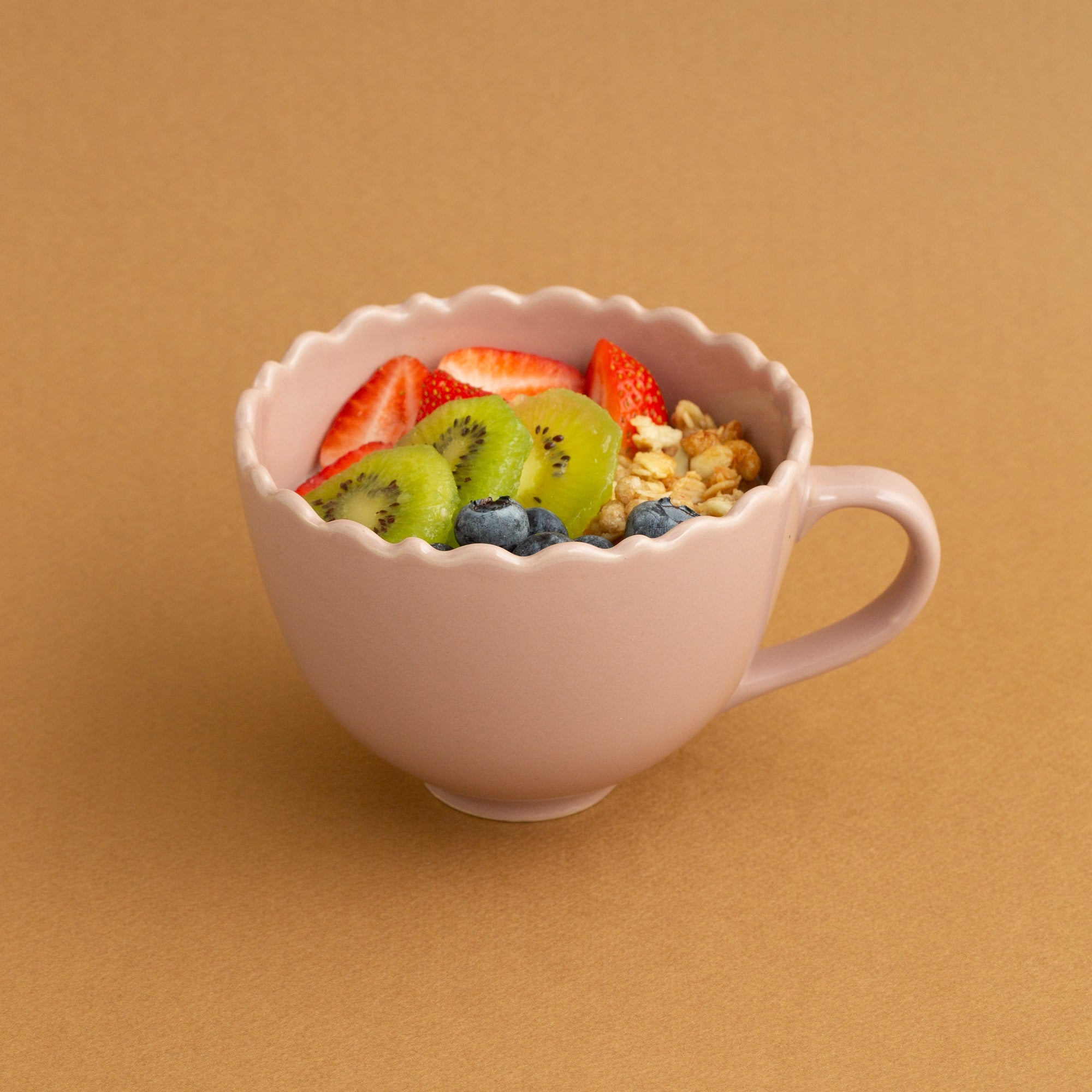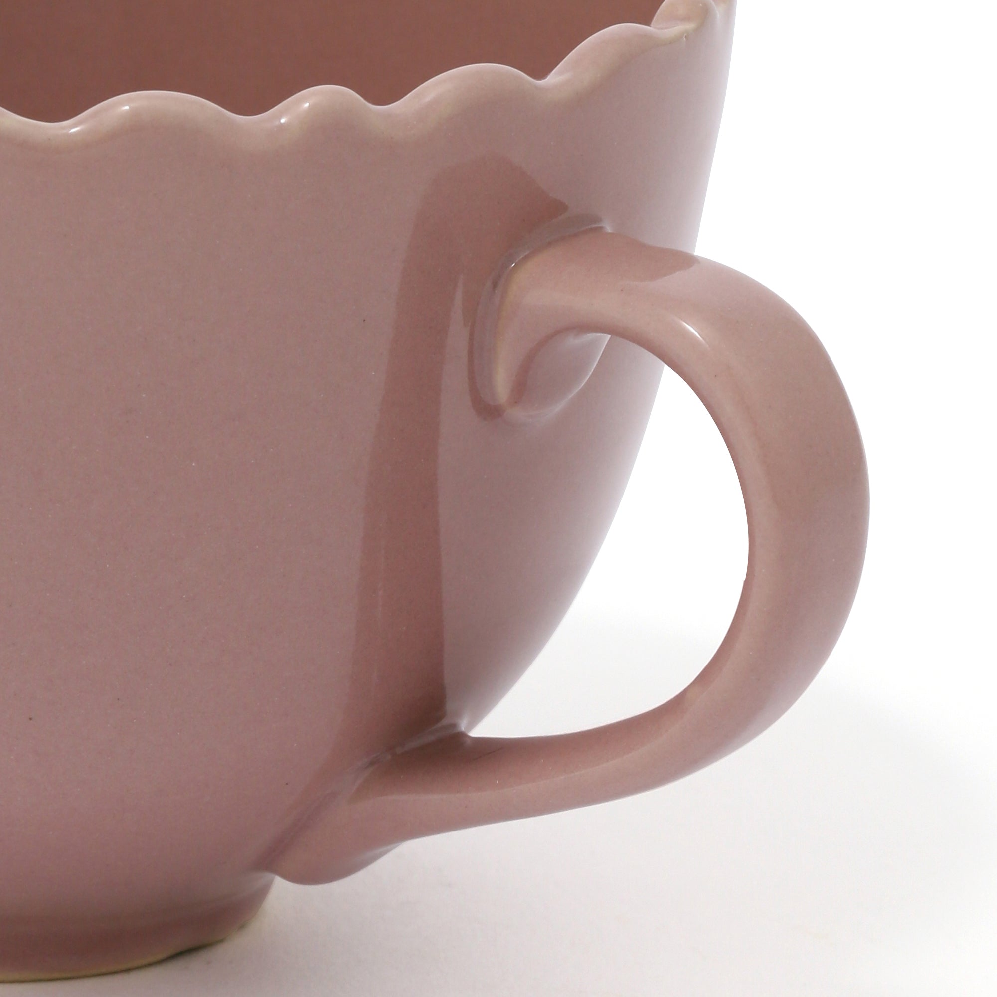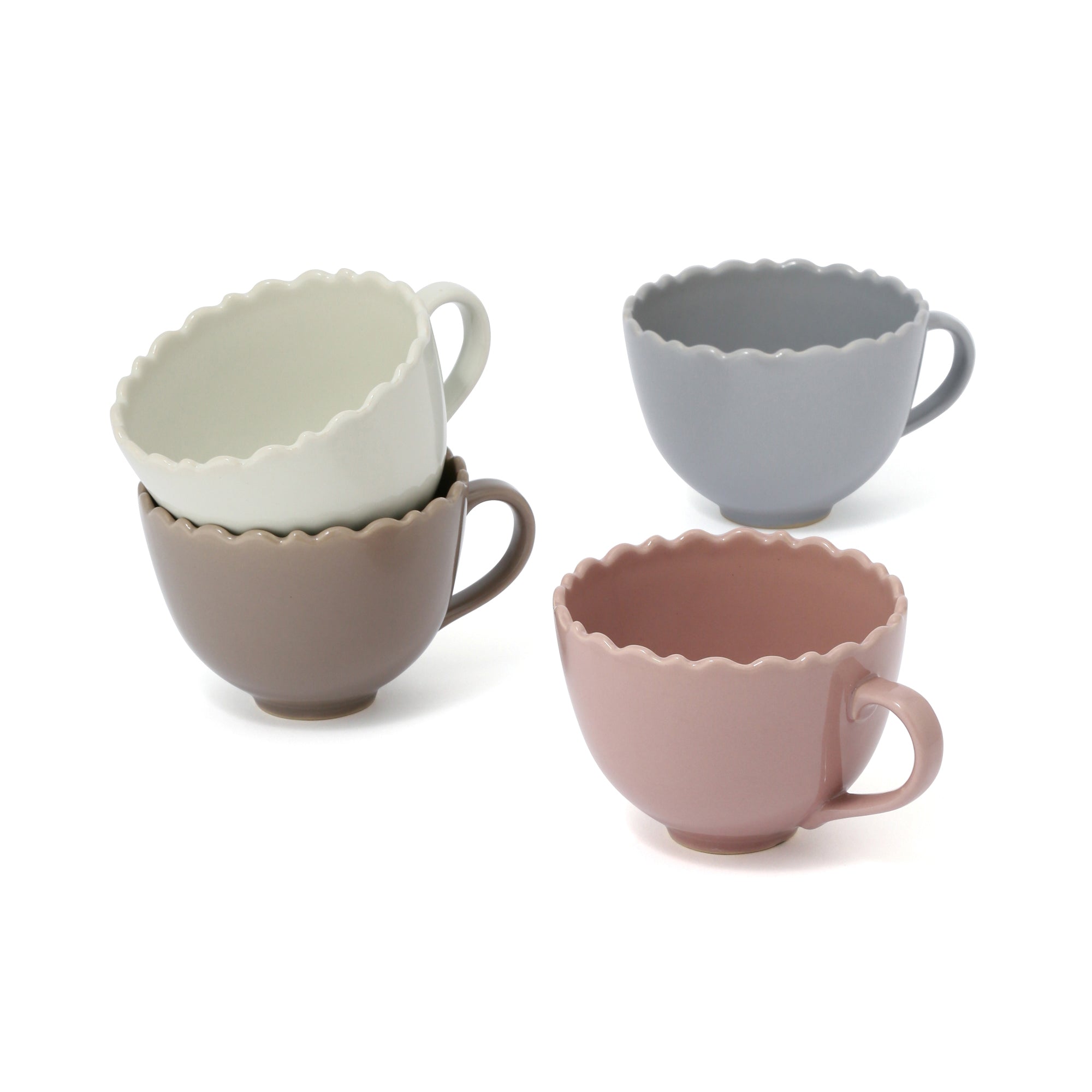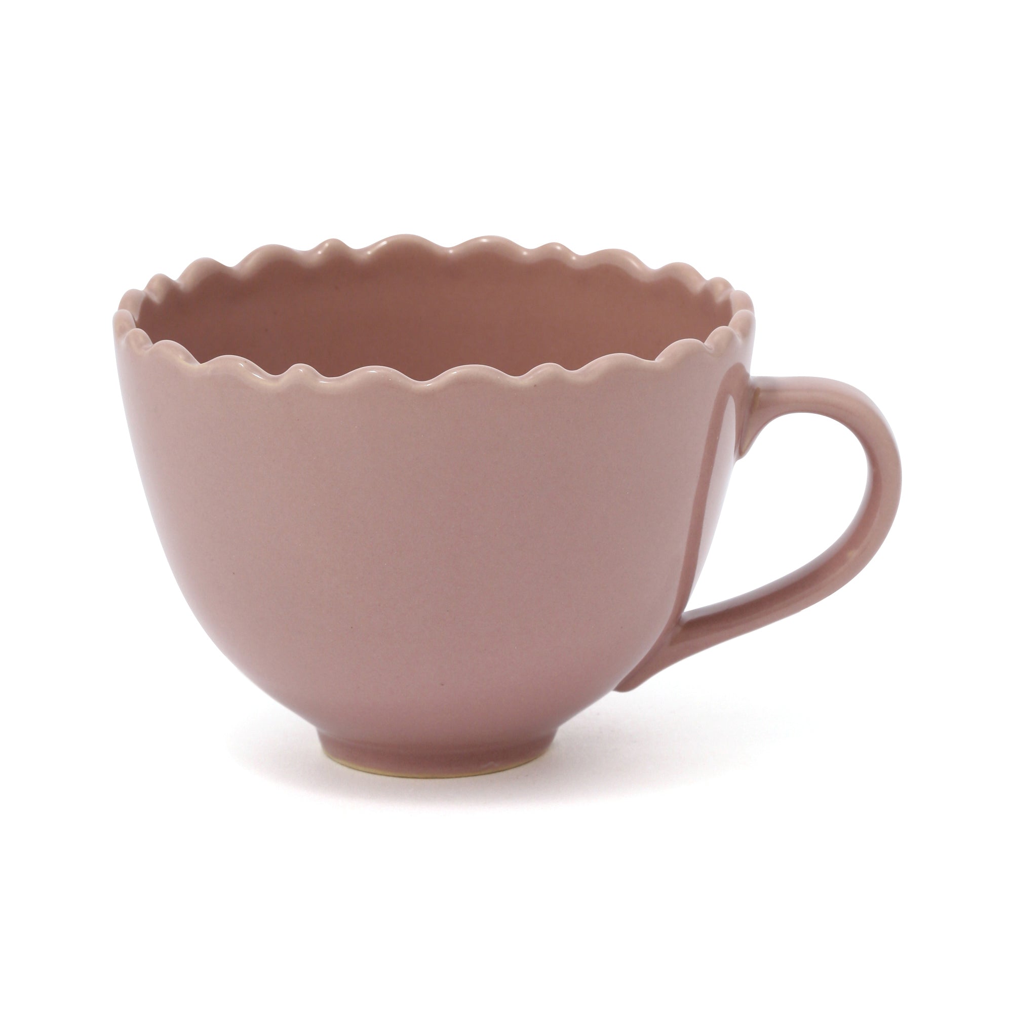フリル型のリムが可愛らしいスープカップです。シンプルなので、色違いや柄物ともコーディネートしやすいデザイン。スープだけでなく、サラダやデザート、シリアルなどを入れてミニボウルとしてもお使いいただける便利なアイテムです。カップの底部分が小さめなので、ワンプレート皿にのせやすく、プラスするとリッチな一皿に。カップを使わないときは、カトラリーやスティックシュガーを入れてもよく、一口サイズのお菓子を入れると、可愛らしいテーブルに。色違いのカップとあわせて使用すると、カラフルで華やかに。お客様へのカジュアルなおもてなしにもおすすめです。お気に入りのカップで楽しいひと時をお過ごしください。