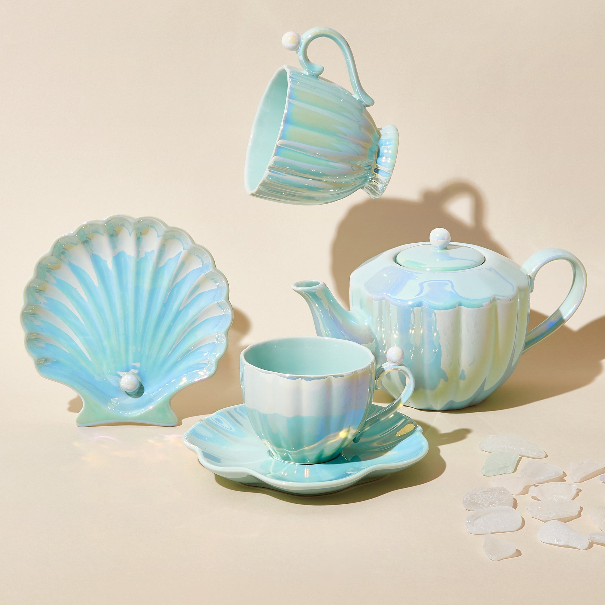 人気のオパールシェルシリーズにさわやかなミントが仲間入り。シェルモチーフ×オパール加工でかわいさがぎゅっと詰まったティーポットです。