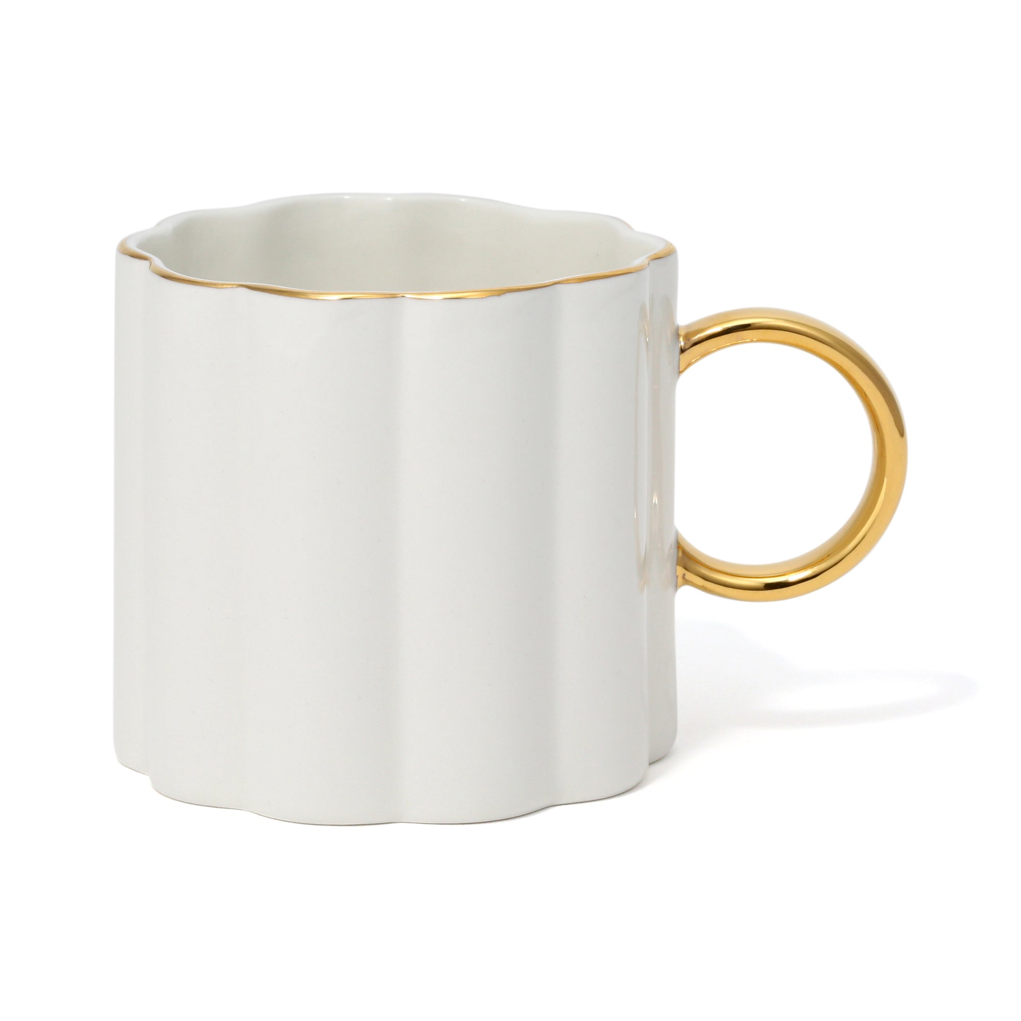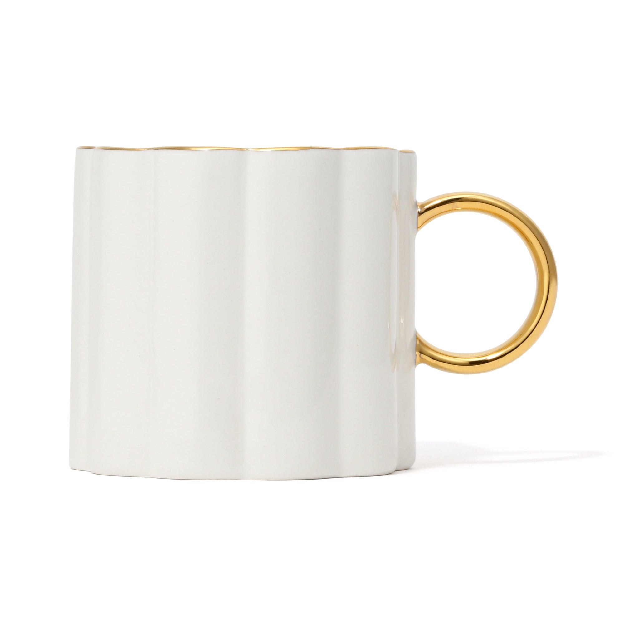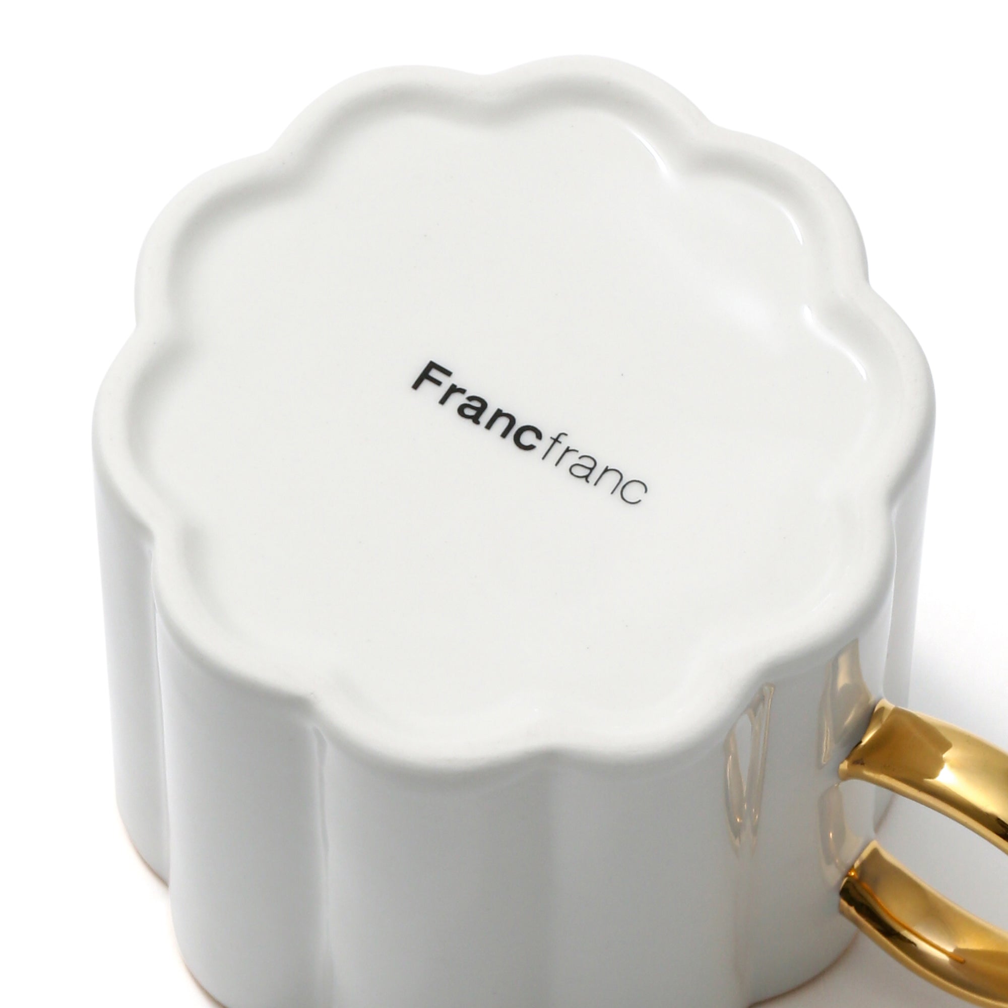 シンプルなデザインで華やかさのあるパステルスカラップシリーズのマグです。上品な花の形で、華やかなゴールドカラーがデザインのポイント。いつものティータイムを心躍る特別な時間に変えてくれそうです。プレートの上に置くと、カップ&ソーサーとしてもお使いいただけます。Francfrancらしさたっぷりのパステルスカラップシリーズでとっておきのおうち時間をお楽しみください。