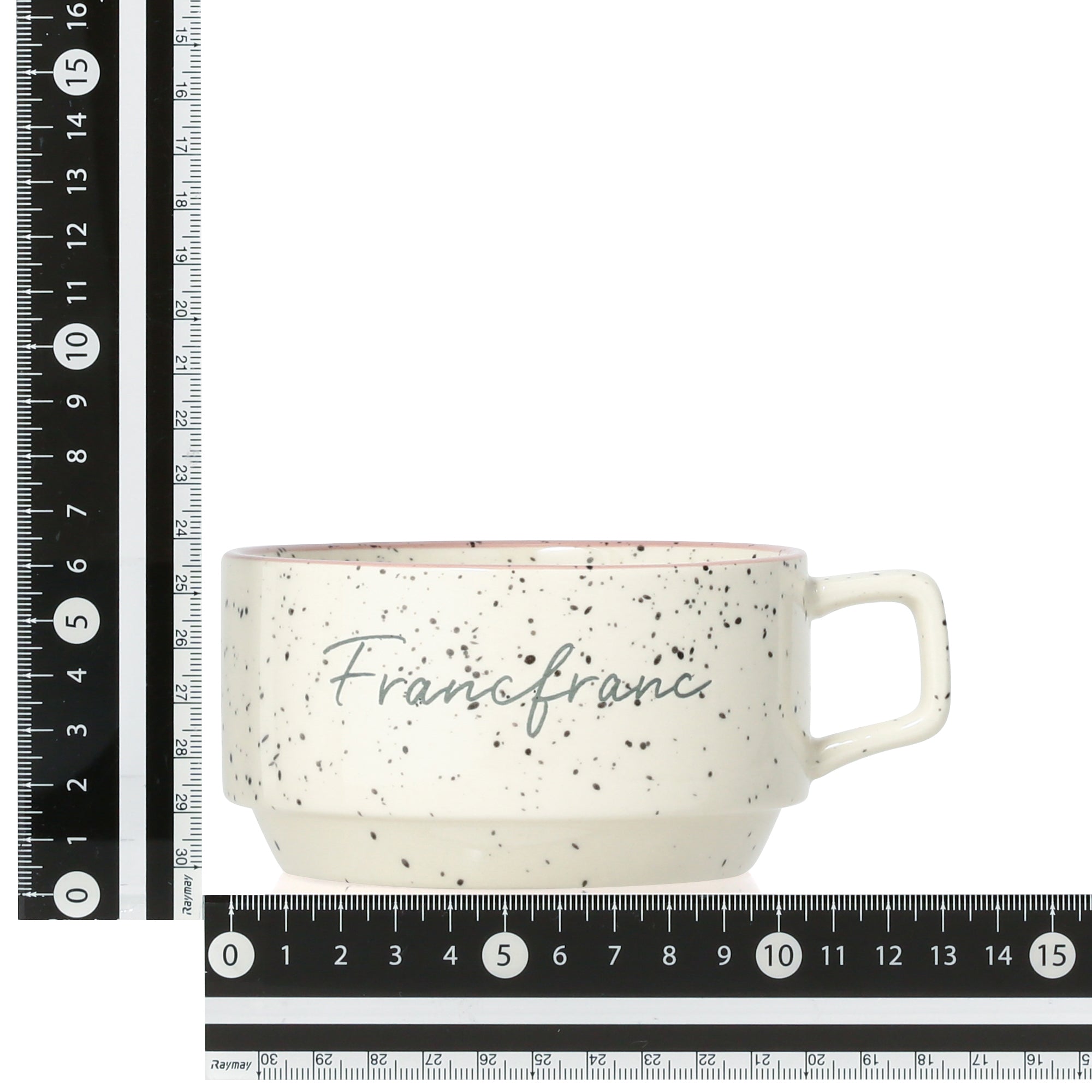 Franfrancのロゴが程よいアクセントになったトレンド感のある柄のスープカップです。スタッキング可能で収納にも便利です。オーブンに対応しているのでグラタン皿としても活躍します。