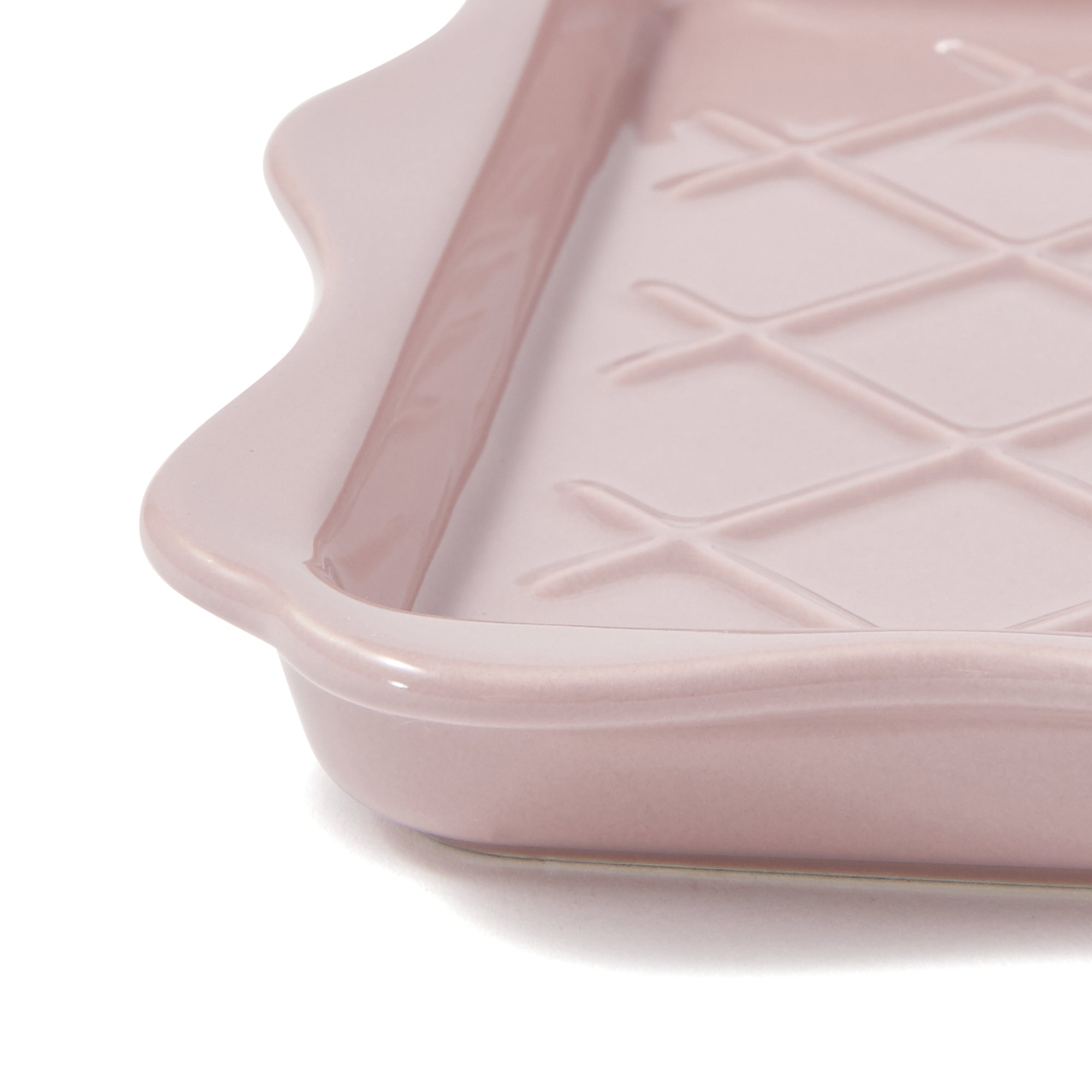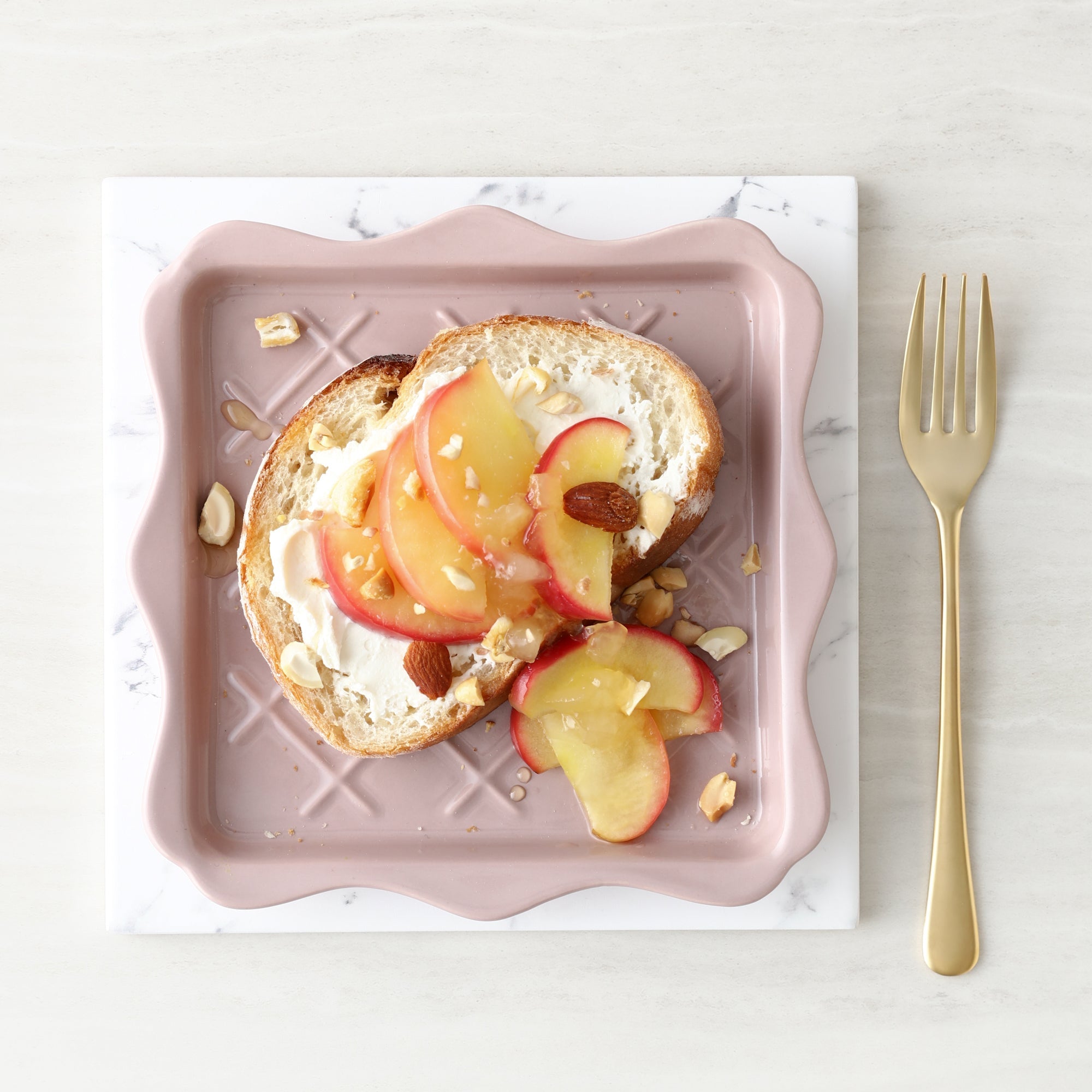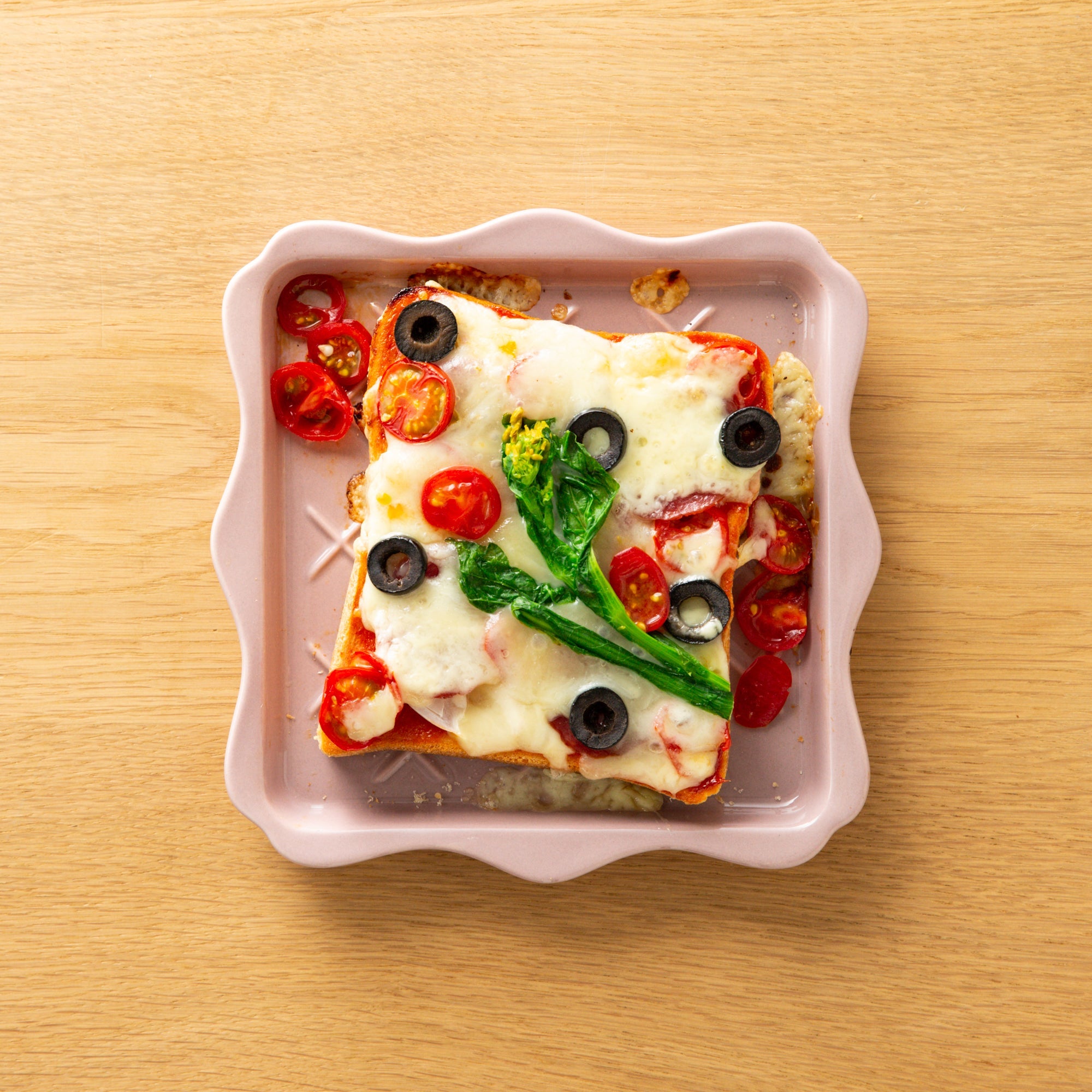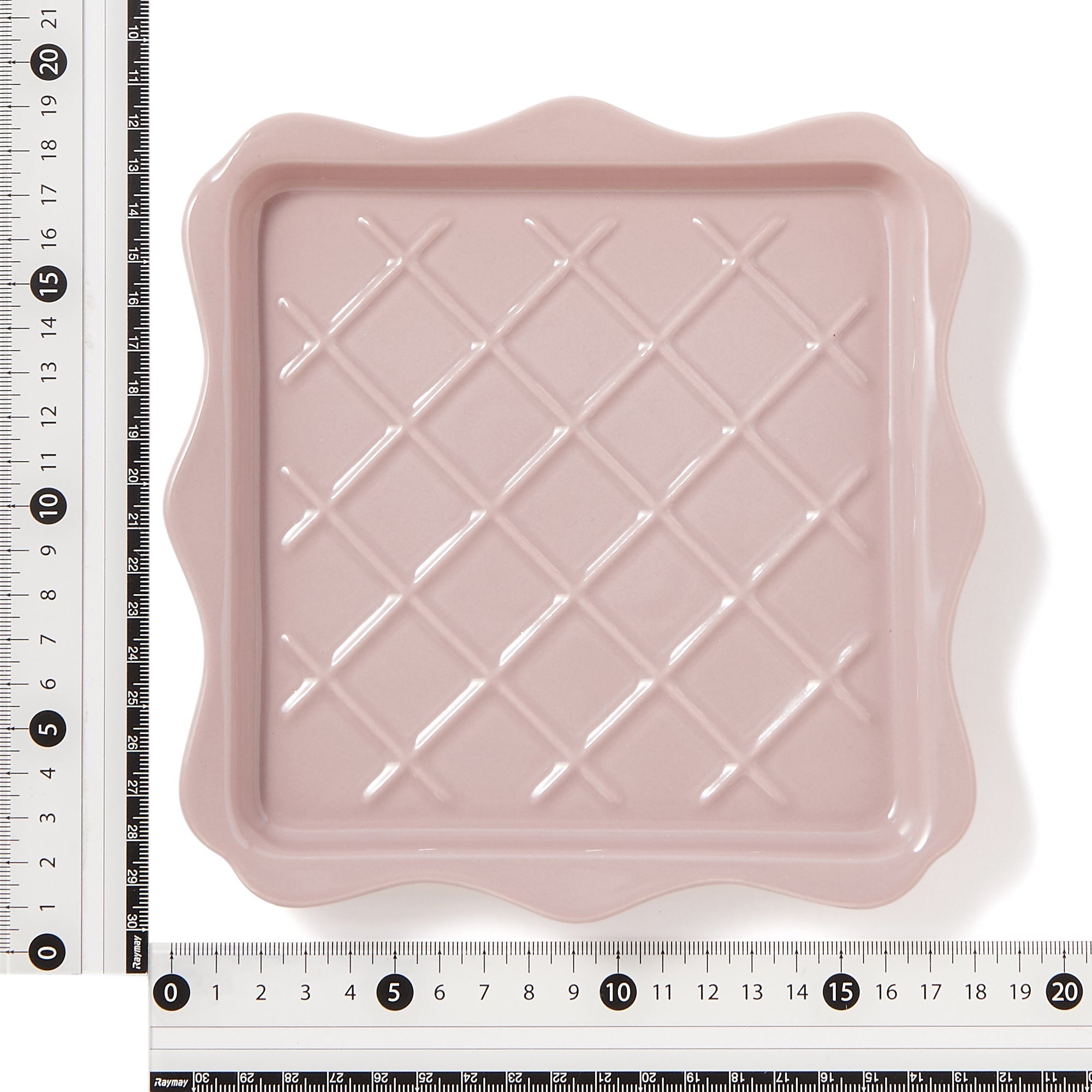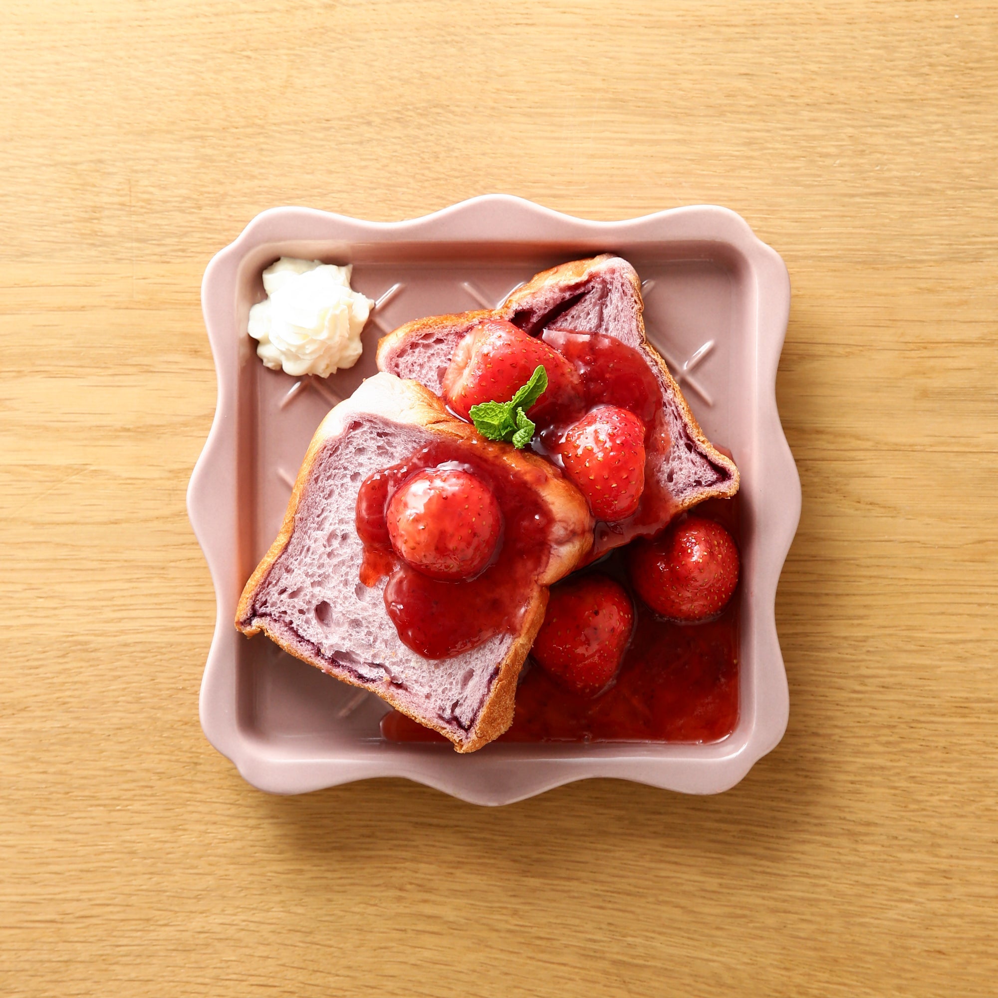 くすみカラーとフリルの形状がかわいい、ちょうど食パンが一枚のる大きさのプレートです。凹凸の模様のおかげで、焼けたトーストの底が、お皿にぴったりとつかないので水蒸気がパンに触れにくく、サクサクの食感そのまま美味しく食べることができます。凹凸を活かして天ぷらなどの、サクサクと食べたい料理をのせるのもおすすめです。オーブン使用可能なので、具沢山トーストをプレート上で作成し、そのまま焼くこともできます。こぼれたチーズなどもエンボスのおかげではがれやすく、洗い物もラクラクです。