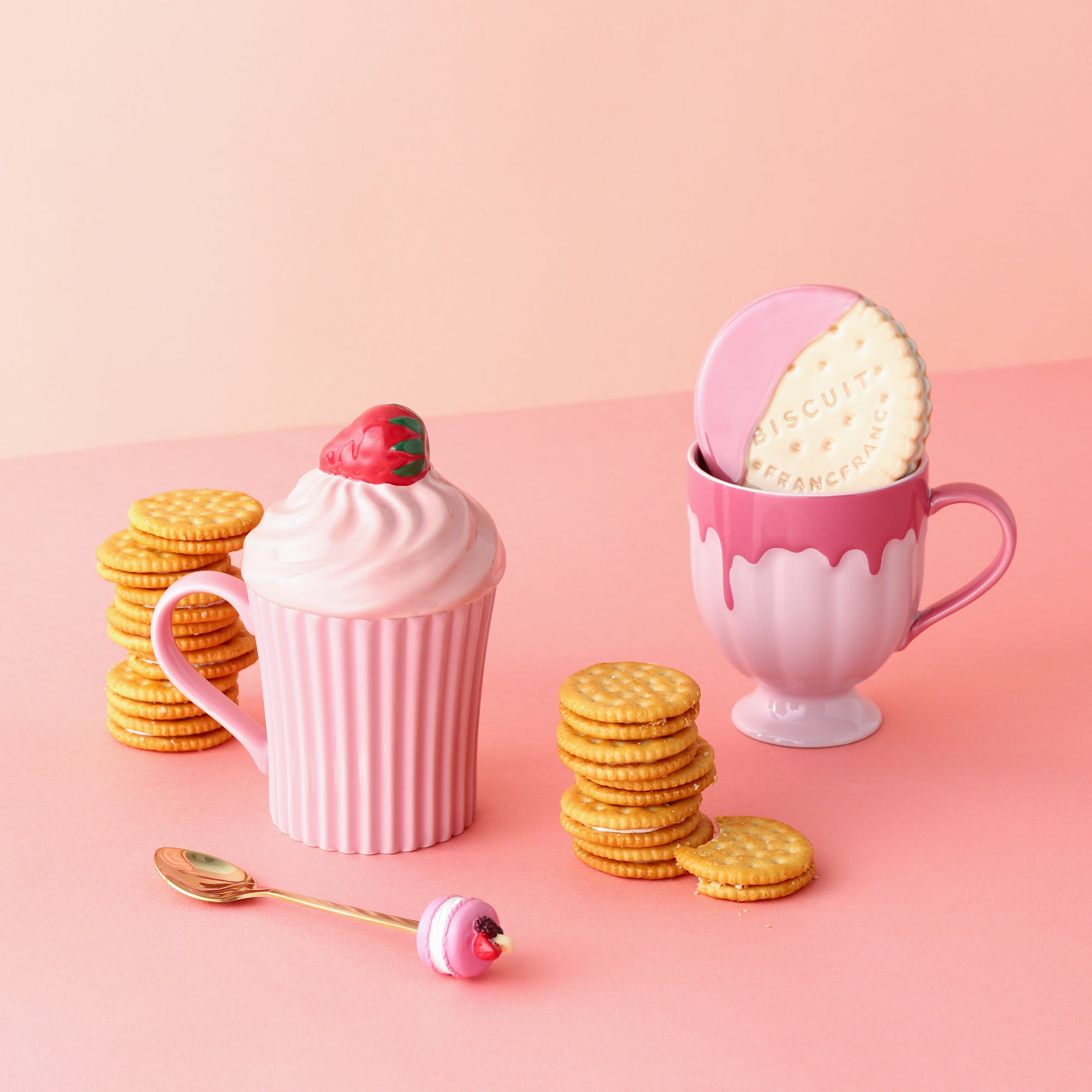 気分が上がる、とびっきりキュートなスイーツモチーフのマグカップです。本物そっくりなカップケーキ型のフタを外すと普段使いしやすいシンプルなデザインなので、シーンによって使い分けできるのがポイントです。