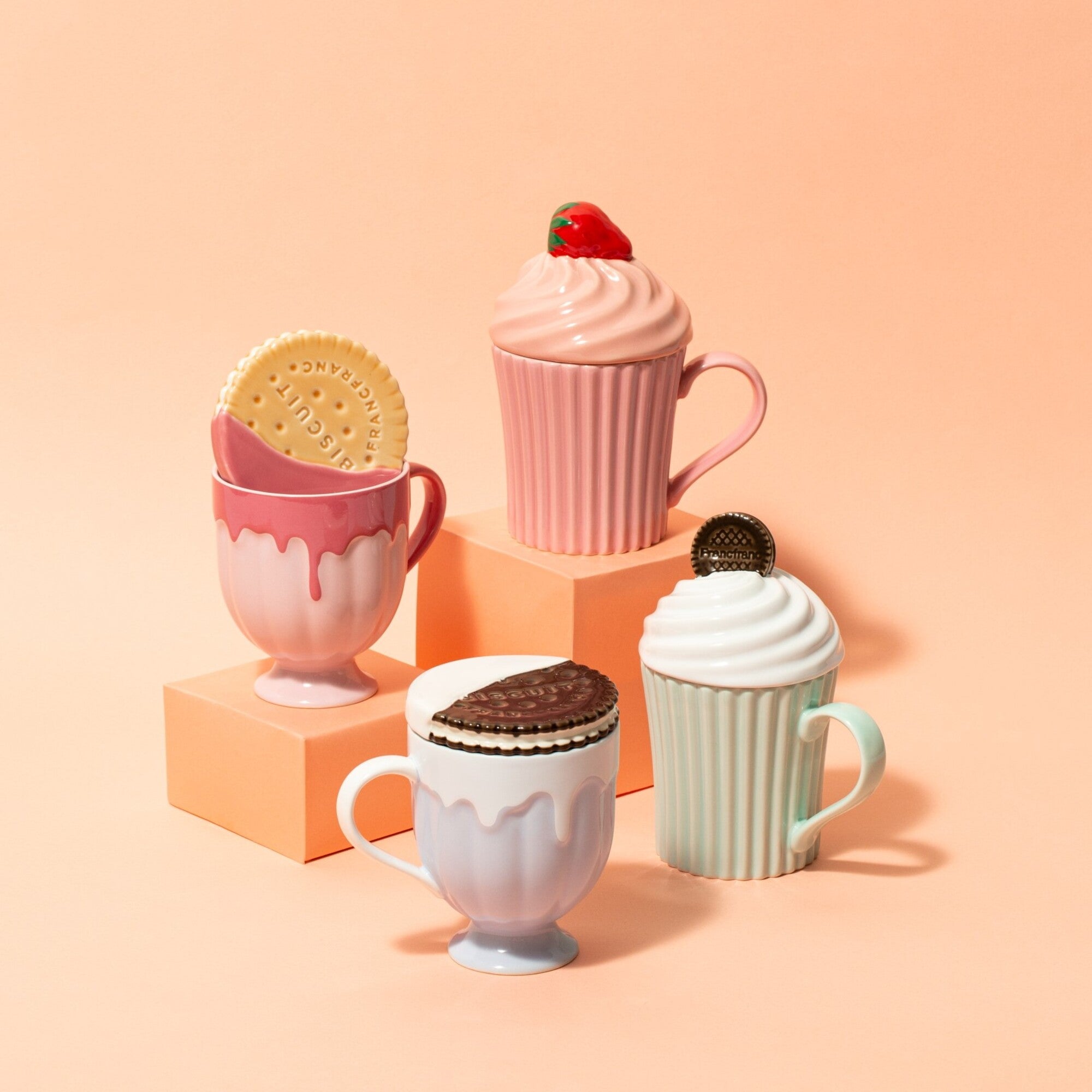 気分が上がる、とびっきりキュートなスイーツモチーフのマグカップです。本物そっくりなカップケーキ型のフタを外すと普段使いしやすいシンプルなデザインなので、シーンによって使い分けできるのがポイントです。