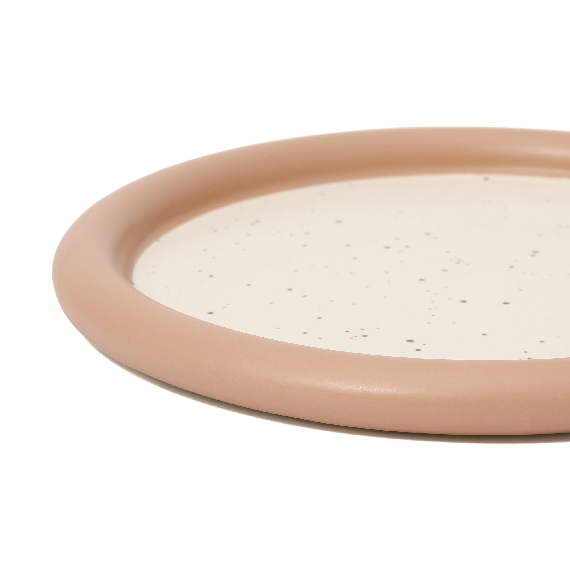 ほっと一息つける、あたたかみのあるぽってりとした質感のプレートです。個性的なデザインが、デザートやお料理を素敵に引き立ててくれます。丸みのある縁と、ツートーンカラーのデザインが他にはない魅力です。