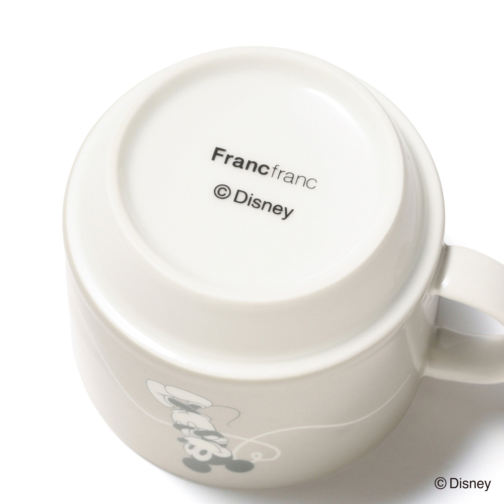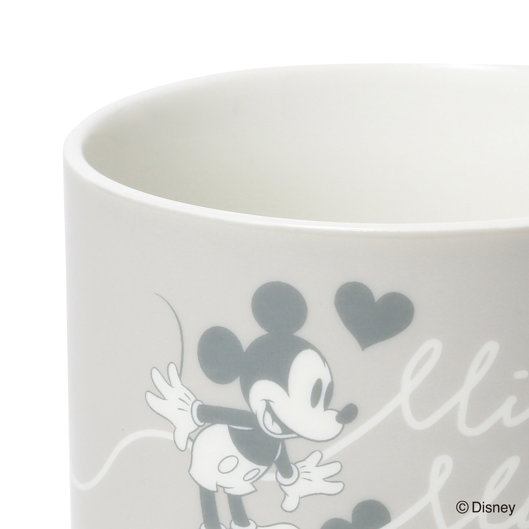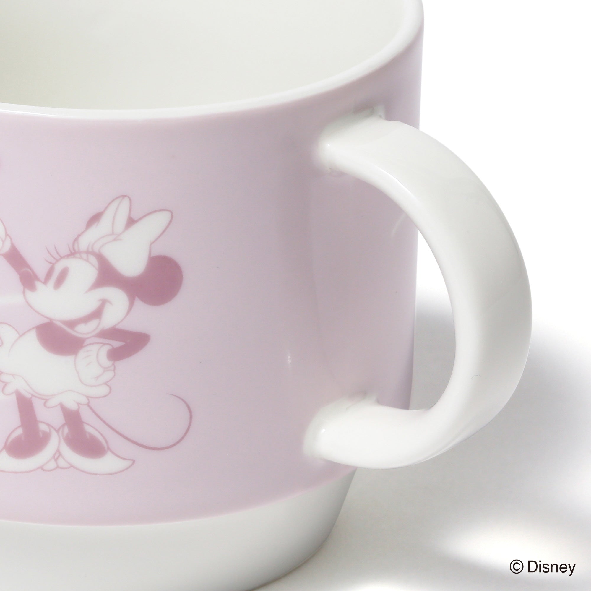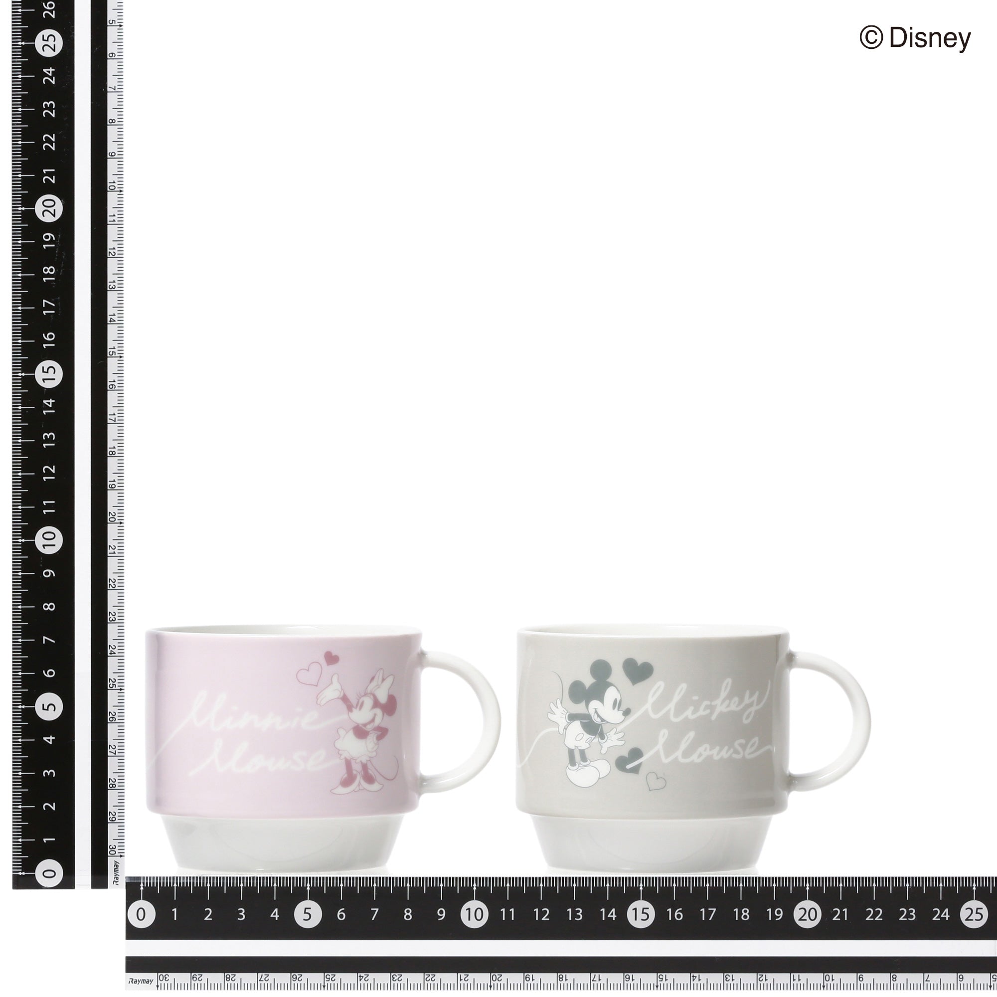 ミッキーマウスとミニーマウスをモチーフにしたかわいらしいデザインのスタッキングマグです。小ぶりで重ねて収納できるので場所を取らず、普段使いにぴったりです。マグカップをふたつ重ねるとハートが飛び交うデザインが現れるのがキュート。持ち手も丸く、かわいらしい印象に仕上げました。