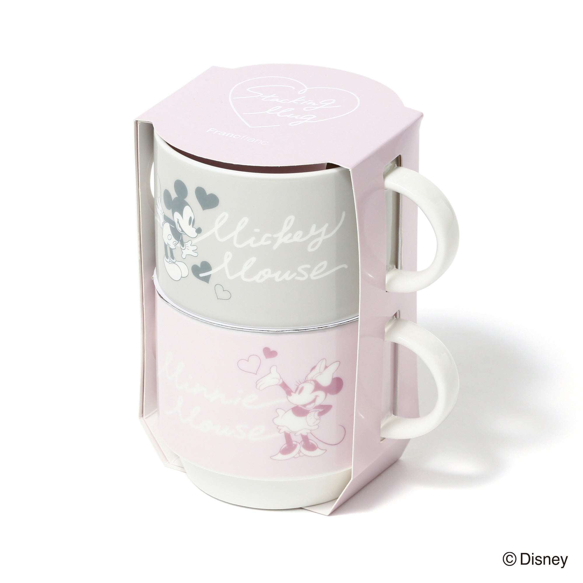 ディズニー ペアスタッキングマグ ピンク×グレー