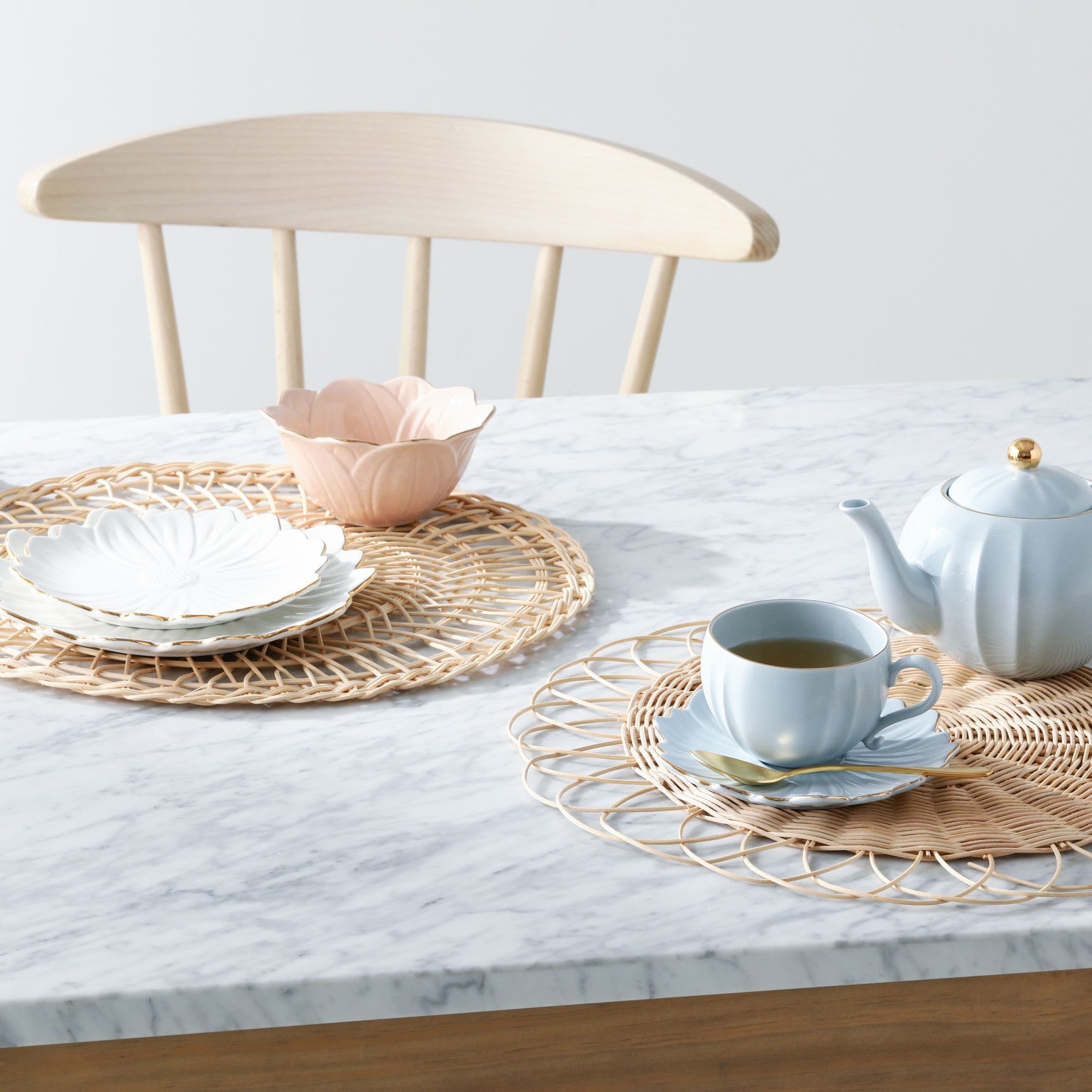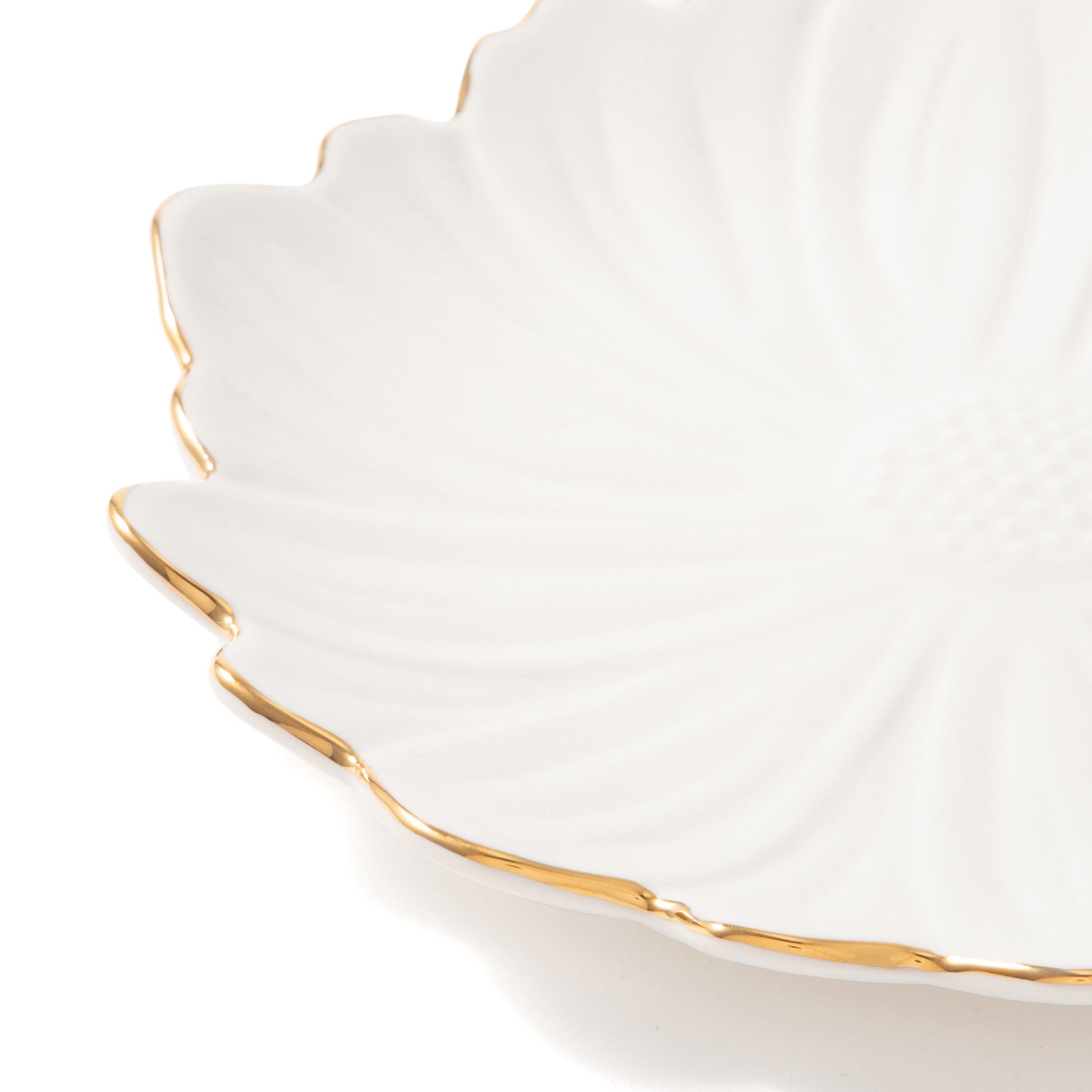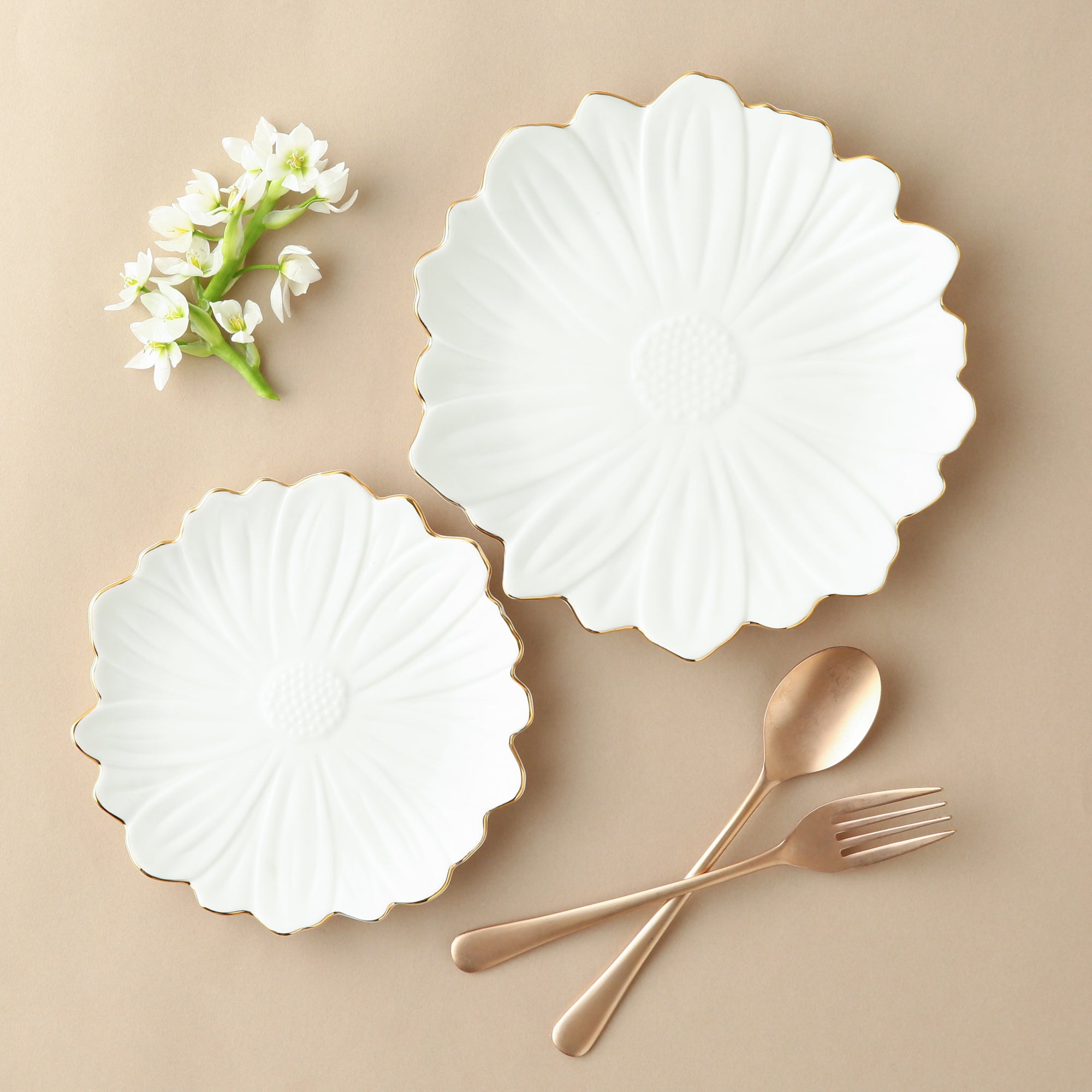 フラワーをかたどった可憐なプレートです。優しいトーンの色味がコーディネートしやすさの秘密です。縁にゴールドラインをあしらって繊細で上品な印象に仕上げました。取り皿やケーキ皿などにぴったりのサイズです。