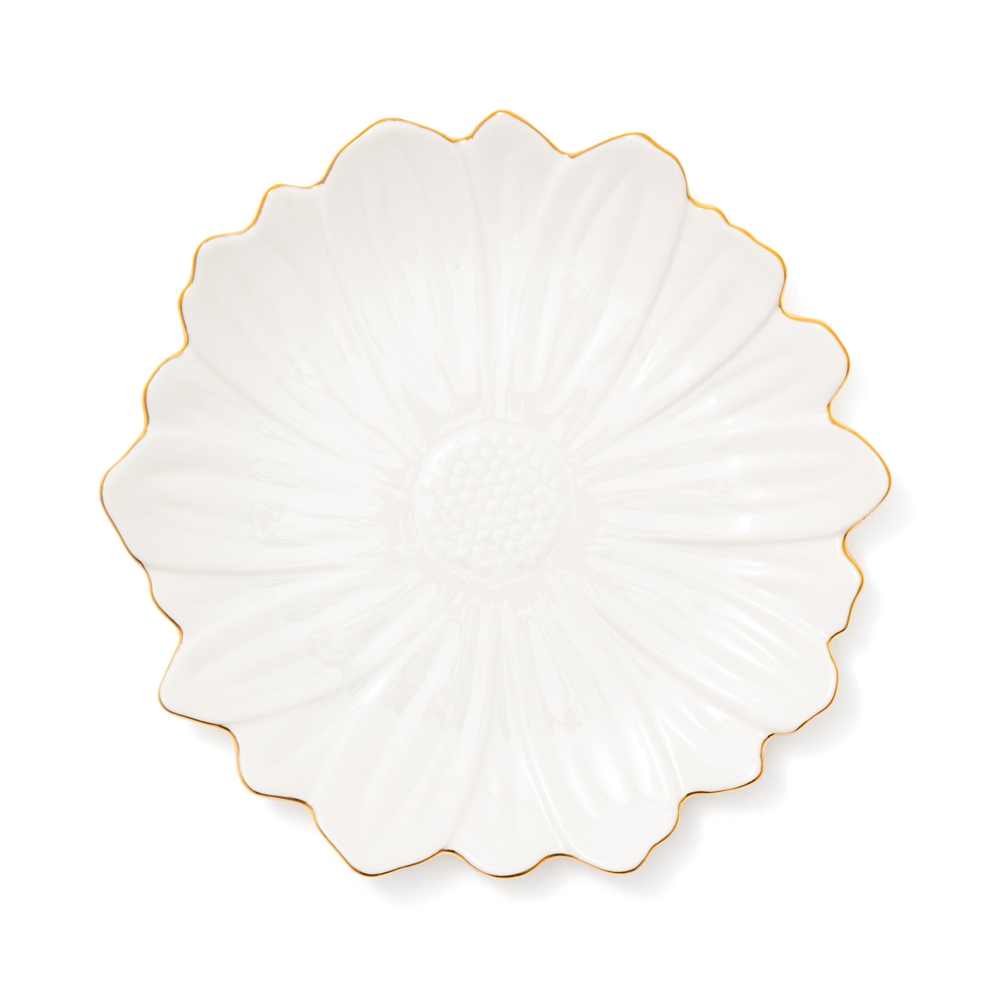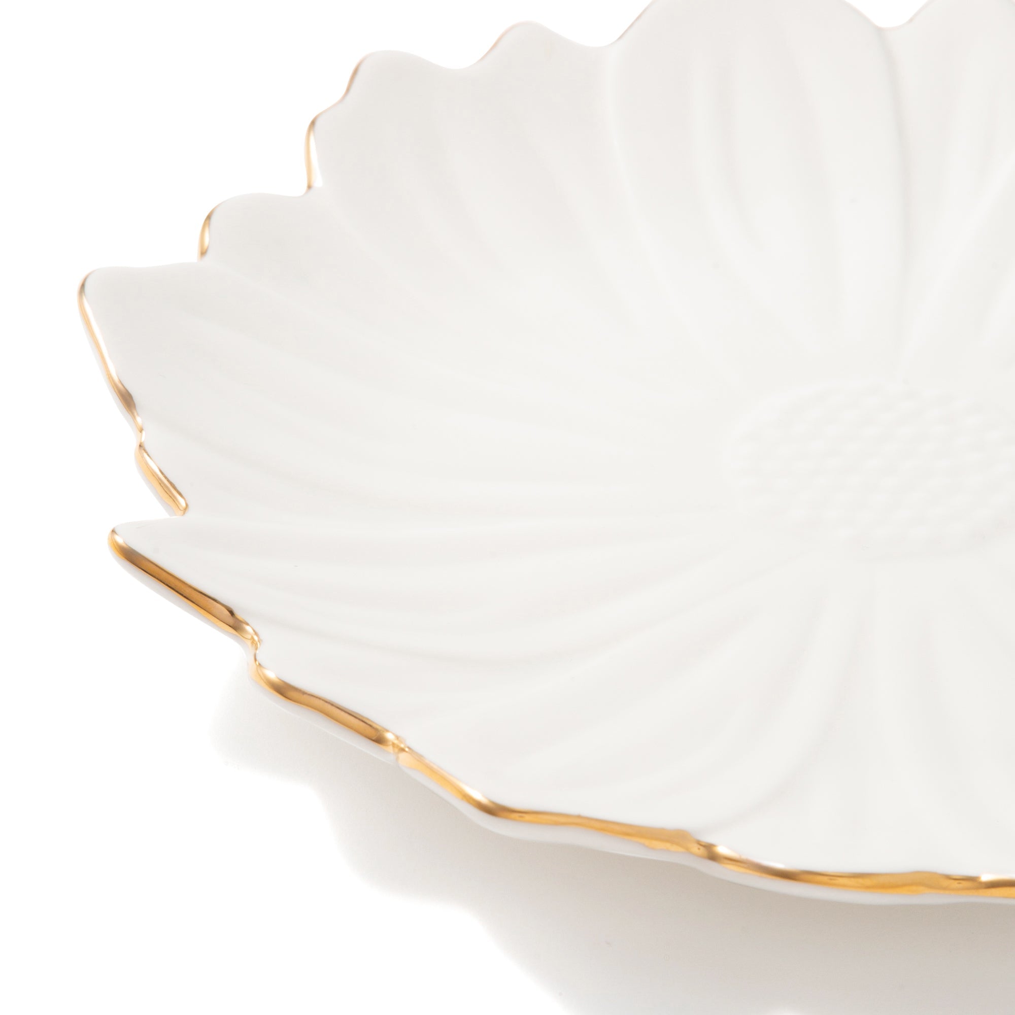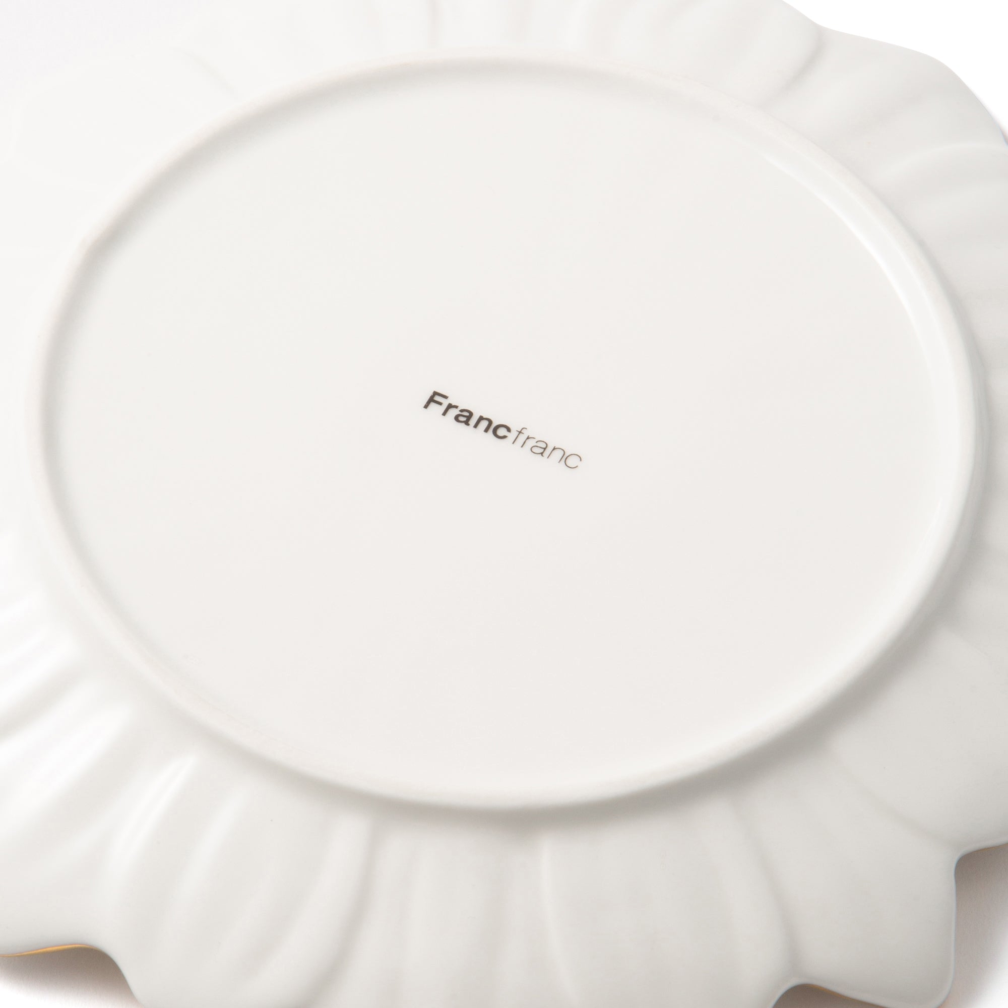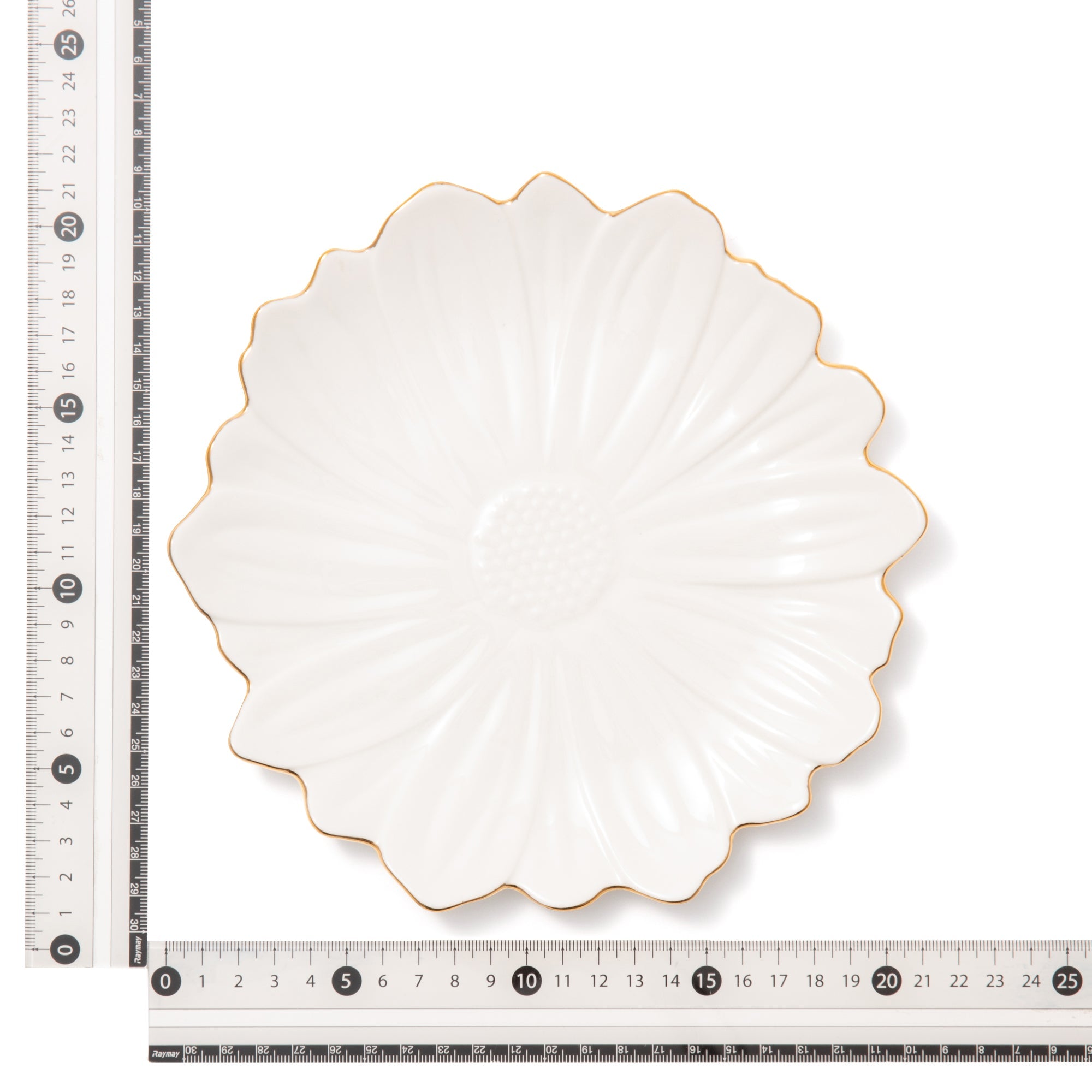フラワーをかたどった可憐なプレートです。優しいトーンの色味がコーディネートしやすさの秘密です。縁にゴールドラインをあしらって繊細で上品な印象に仕上げました。主菜を盛り付けたりワンプレートのメニューにもぴったりのサイズです。