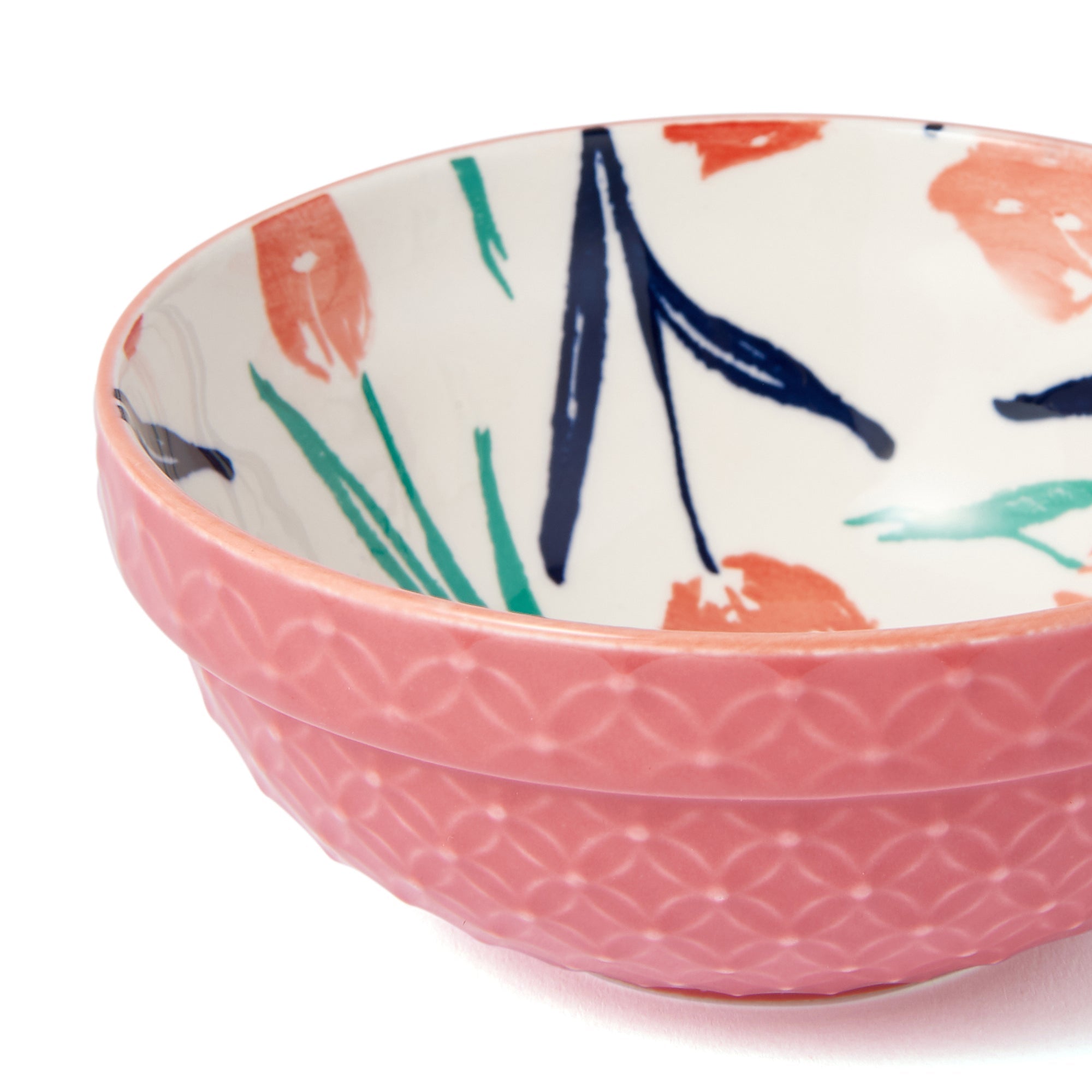 華やかなデザインで食卓を楽しくさせてくれる小鉢です。使い勝手の良い形状に、色柄を豊富に揃えており、選ぶ楽しさのあるシリーズです。電子レンジ、食器洗浄機がお使いいただけるので普段使いにぴったりです。お求めになりやすい価格なのでカラー違いで揃えたり、同シリーズで別売りの茶碗や小皿などと合わせて贈り物にもおすすめです。和洋どちらの料理にも馴染み、テーブルを華やかに演出してくれます。※生産工程上、色や柄・柄の向きに個体差があります。