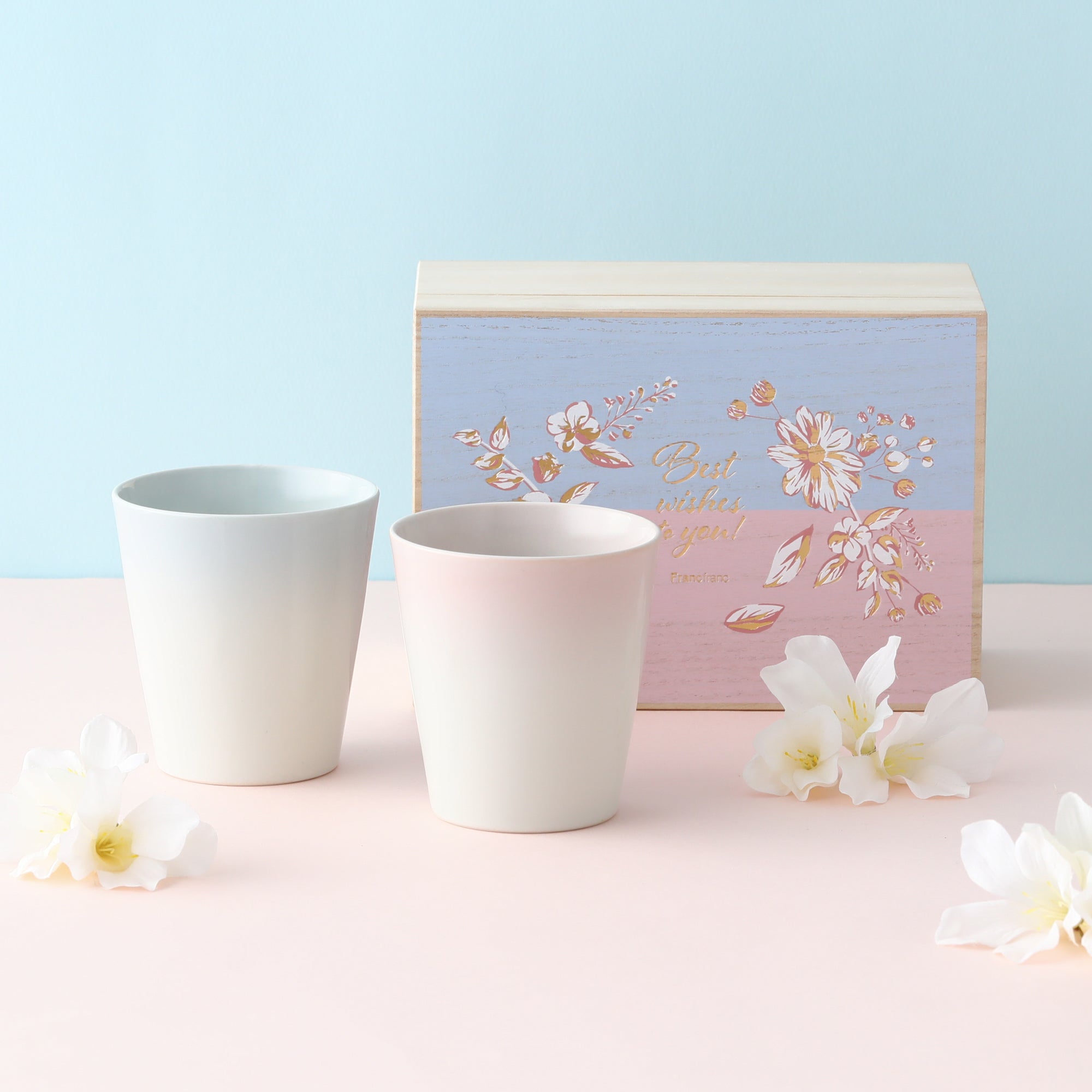 グラデーションがきれいなタンブラーのセットです。毎日のほっとするティータイムに素敵なタンブラーでおいしいひとときを味わえます。電子レンジの使用が可能で、温めも安心。食洗機が使用できるのでデイリー使いにぴったりです。桐箱に入っているため高級感があり、ご結婚のお祝いなどにおすすめです。