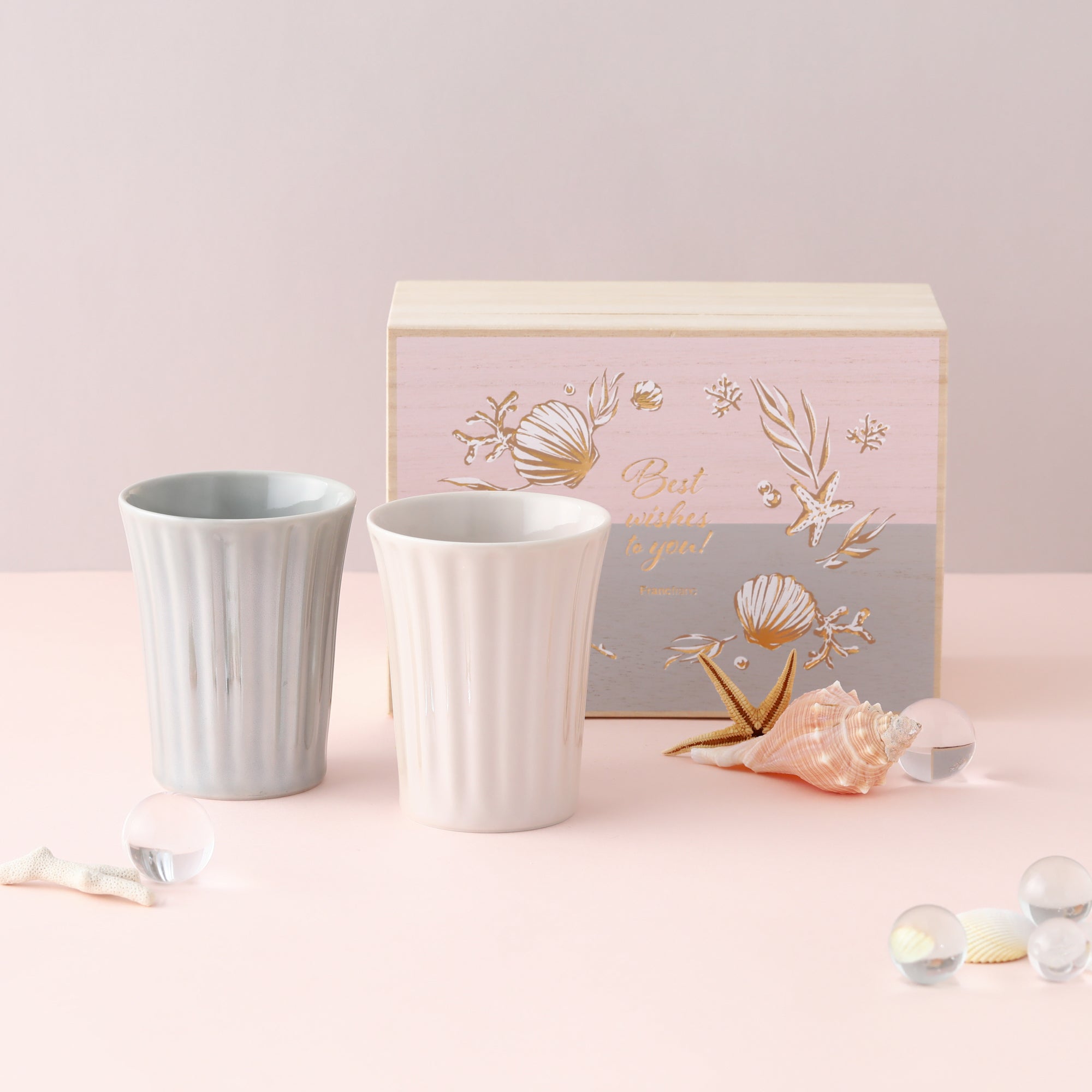 グラデーションがきれいなタンブラーのセットです。毎日のほっとするティータイムに素敵なタンブラーでおいしいひとときを味わえます。電子レンジの使用が可能で、温めも安心。食洗機が使用できるのでデイリー使いにぴったりです。桐箱に入っているため高級感があり、ご結婚のお祝いなどにおすすめです。