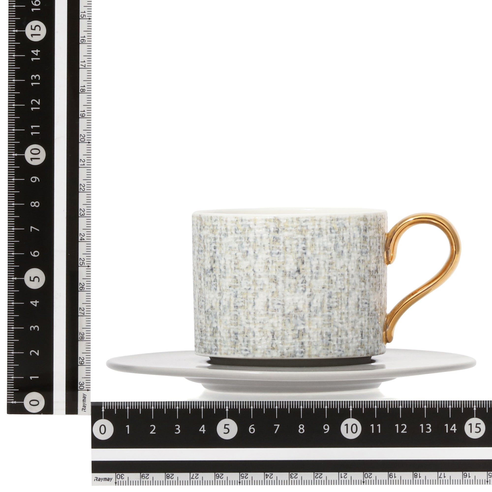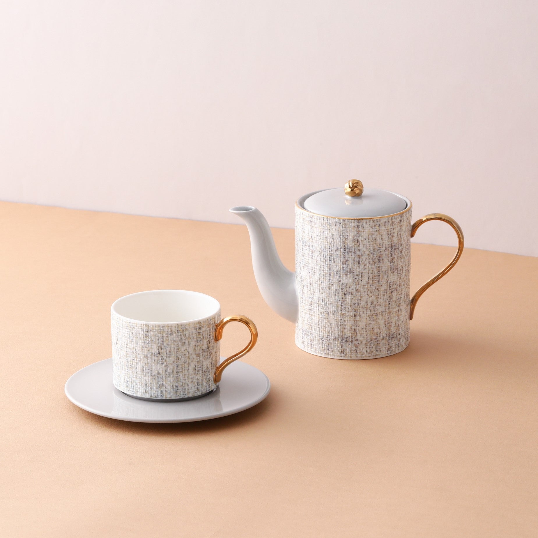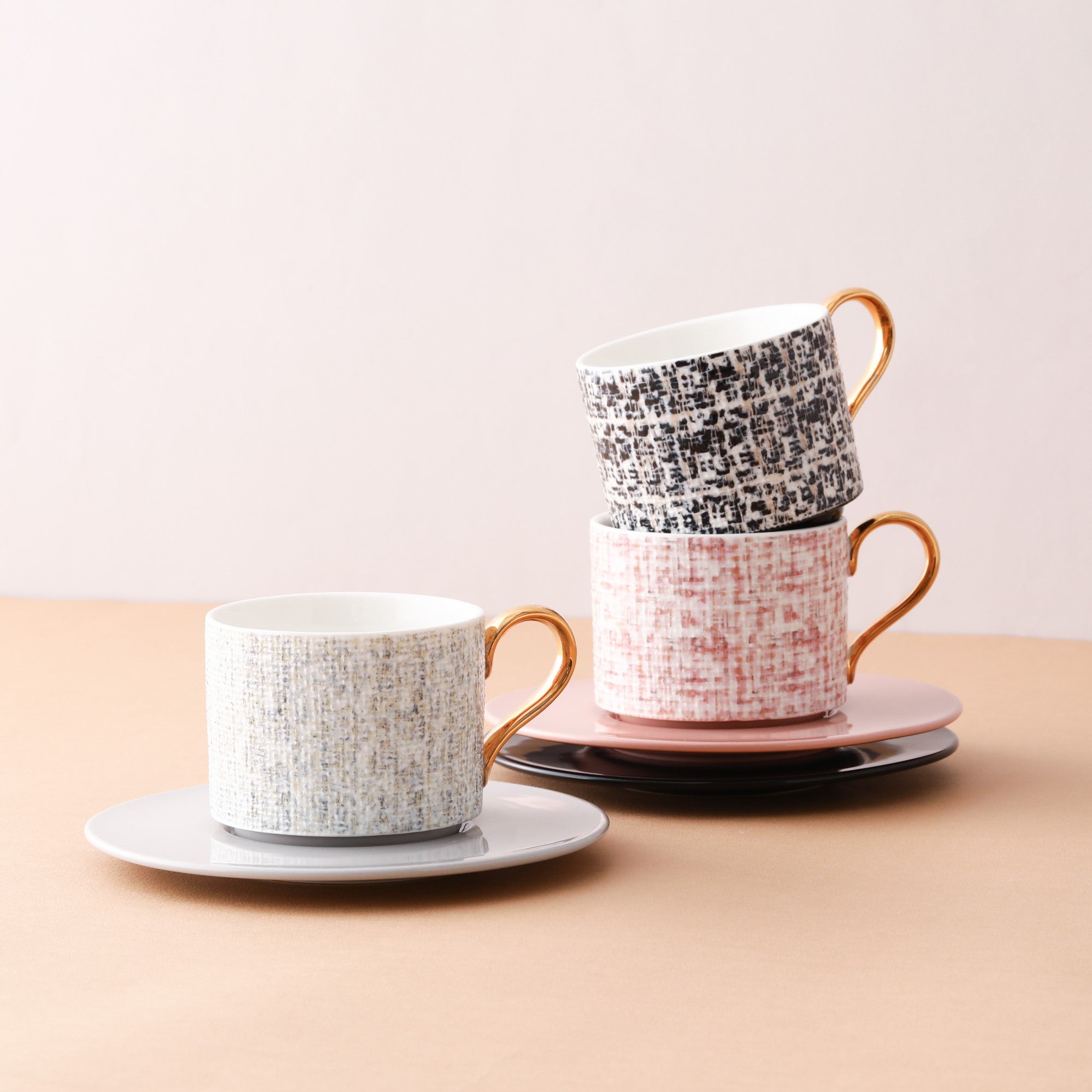 おうちにいながら憧れのカフェで過ごしているような気分になれる、ツイード柄のセラミックカップ&ソーサーです。 カップの表面にはツイードの生地感を凹凸で表現しています。 カフェタイムにぴったりのアイテムで、おもてなしにも喜ばれそう。 ドリンクやスウィーツが綺麗に映えるように、ツイードを入れる幅やツイード自体の柄、色味にもこだわりました。 同じシリーズでは他にも、ミルクピッチャーやシュガーポット等のカフェアイテムをご用意しています。 カラーは全3色展開です。お好みの組み合わせをお楽しみください。
