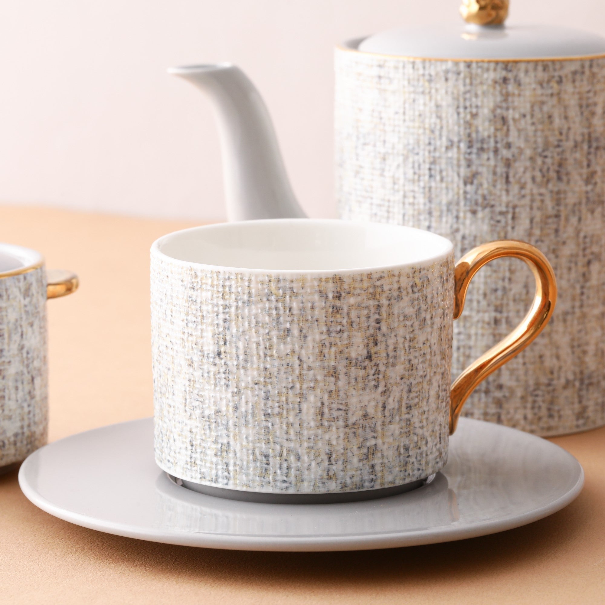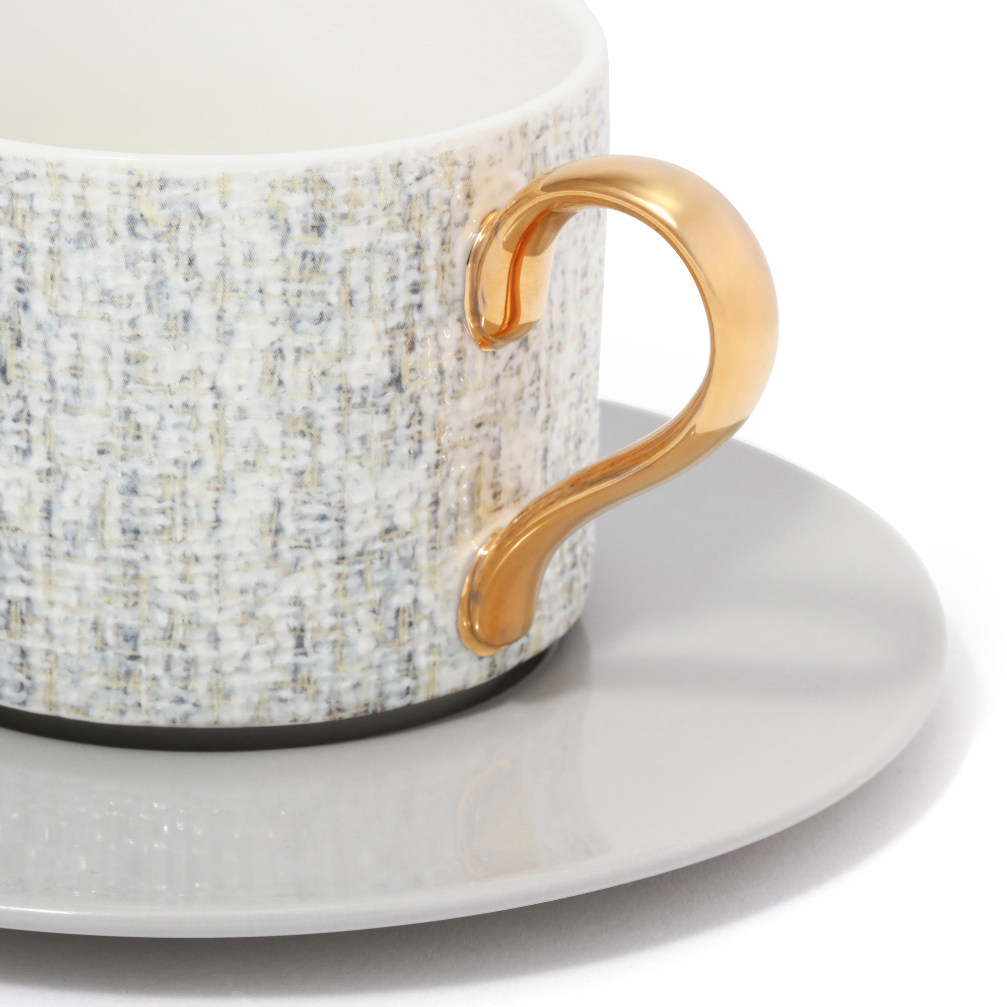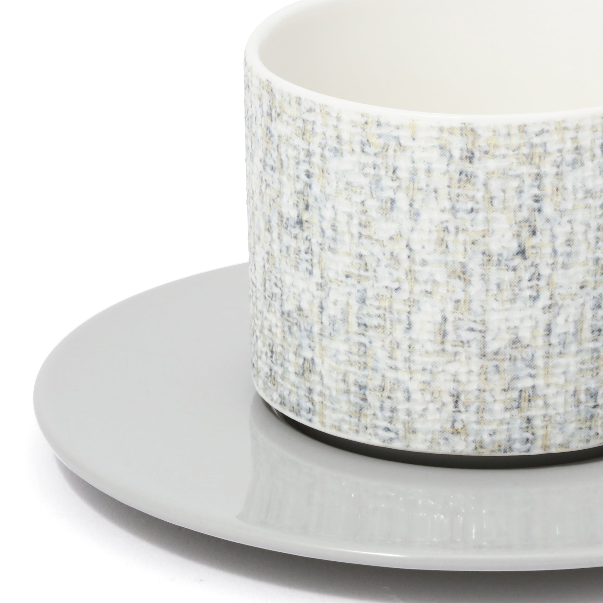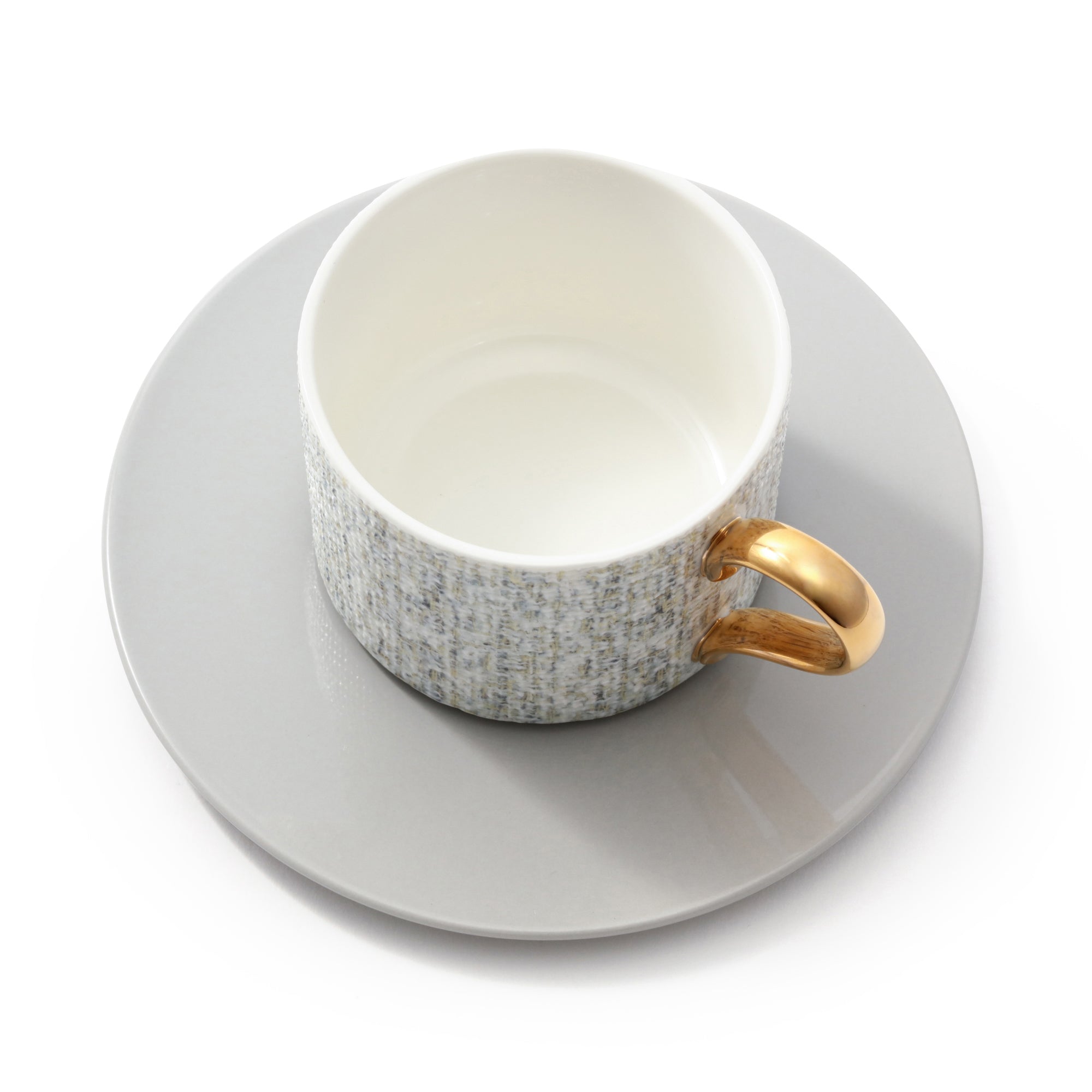 おうちにいながら憧れのカフェで過ごしているような気分になれる、ツイード柄のセラミックカップ&ソーサーです。 カップの表面にはツイードの生地感を凹凸で表現しています。 カフェタイムにぴったりのアイテムで、おもてなしにも喜ばれそう。 ドリンクやスウィーツが綺麗に映えるように、ツイードを入れる幅やツイード自体の柄、色味にもこだわりました。 同じシリーズでは他にも、ミルクピッチャーやシュガーポット等のカフェアイテムをご用意しています。 カラーは全3色展開です。お好みの組み合わせをお楽しみください。