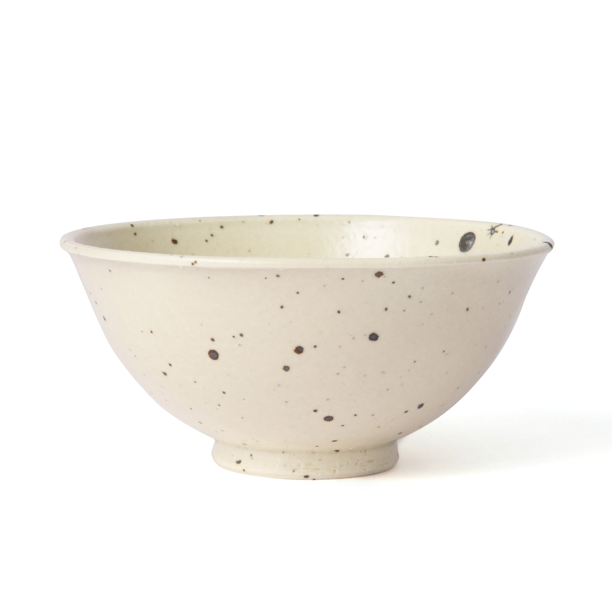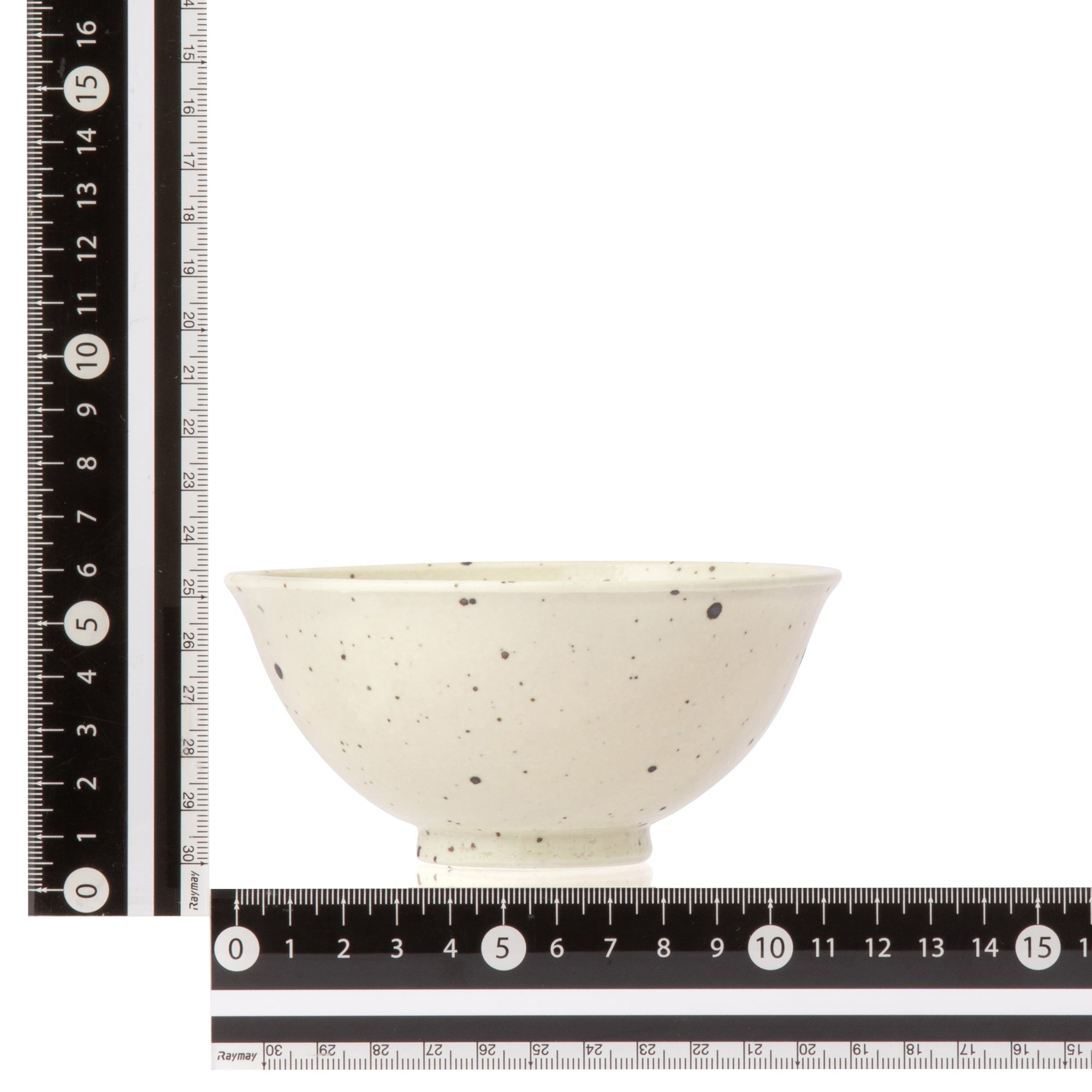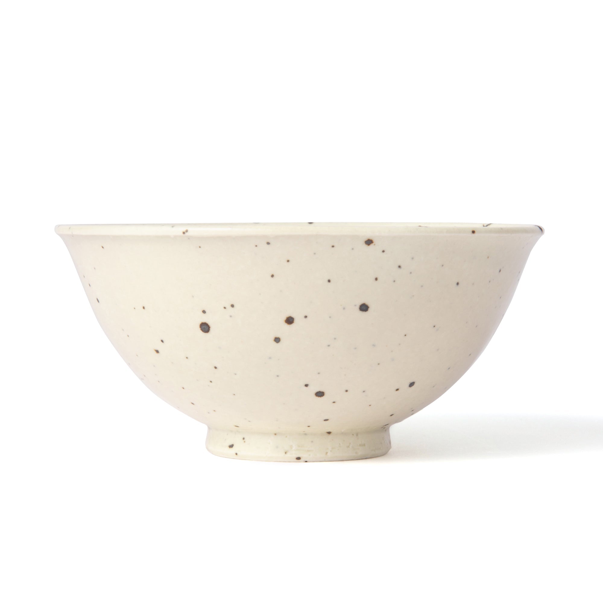 鉄粉を混ぜ込んだ焼き物の飯碗です。ランダムに黒い斑点が入るので、一つ一つ柄の雰囲気が異なりますので唯一の柄との出会いをお楽しみください。