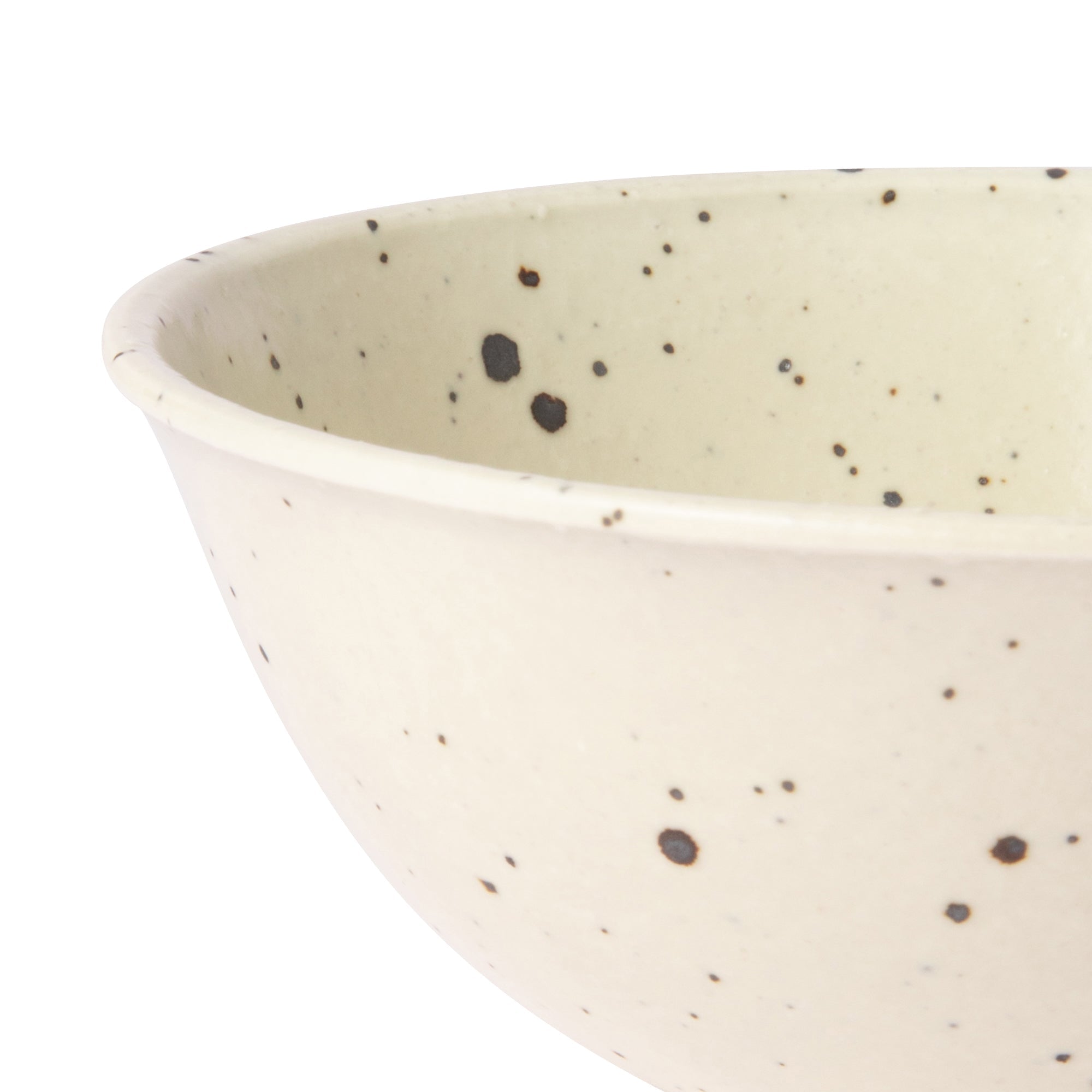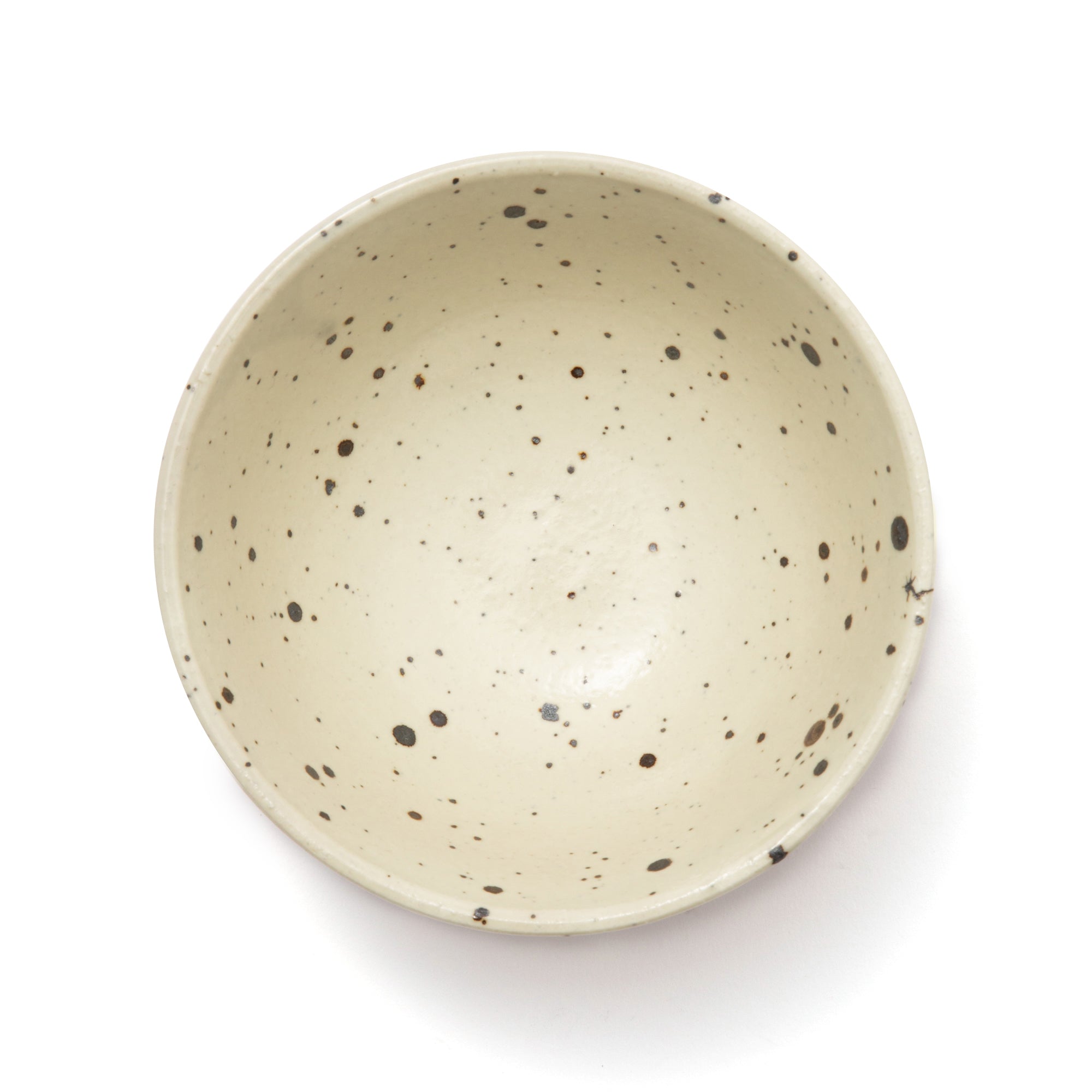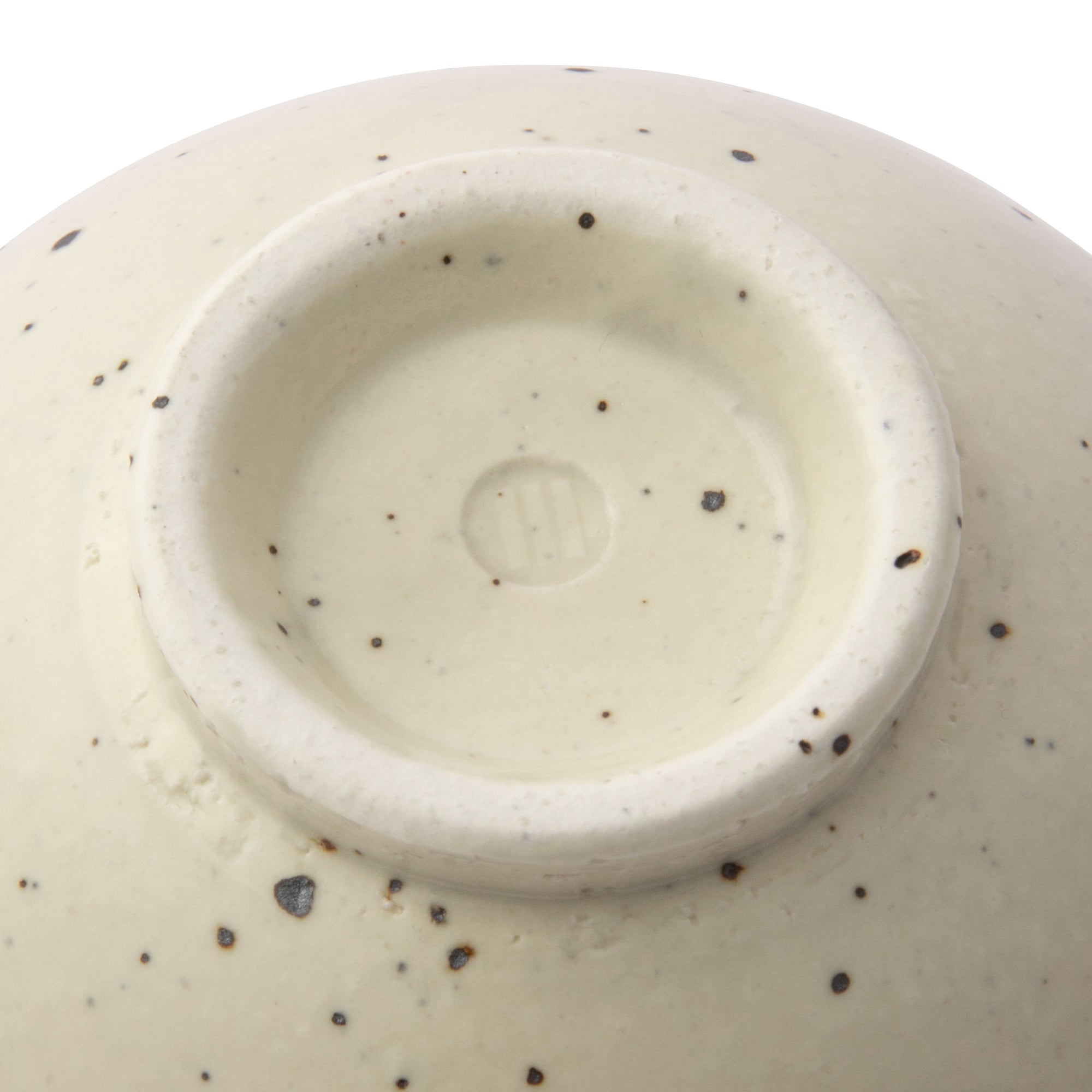 鉄粉を混ぜ込んだ焼き物の飯碗です。ランダムに黒い斑点が入るので、一つ一つ柄の雰囲気が異なりますので唯一の柄との出会いをお楽しみください。