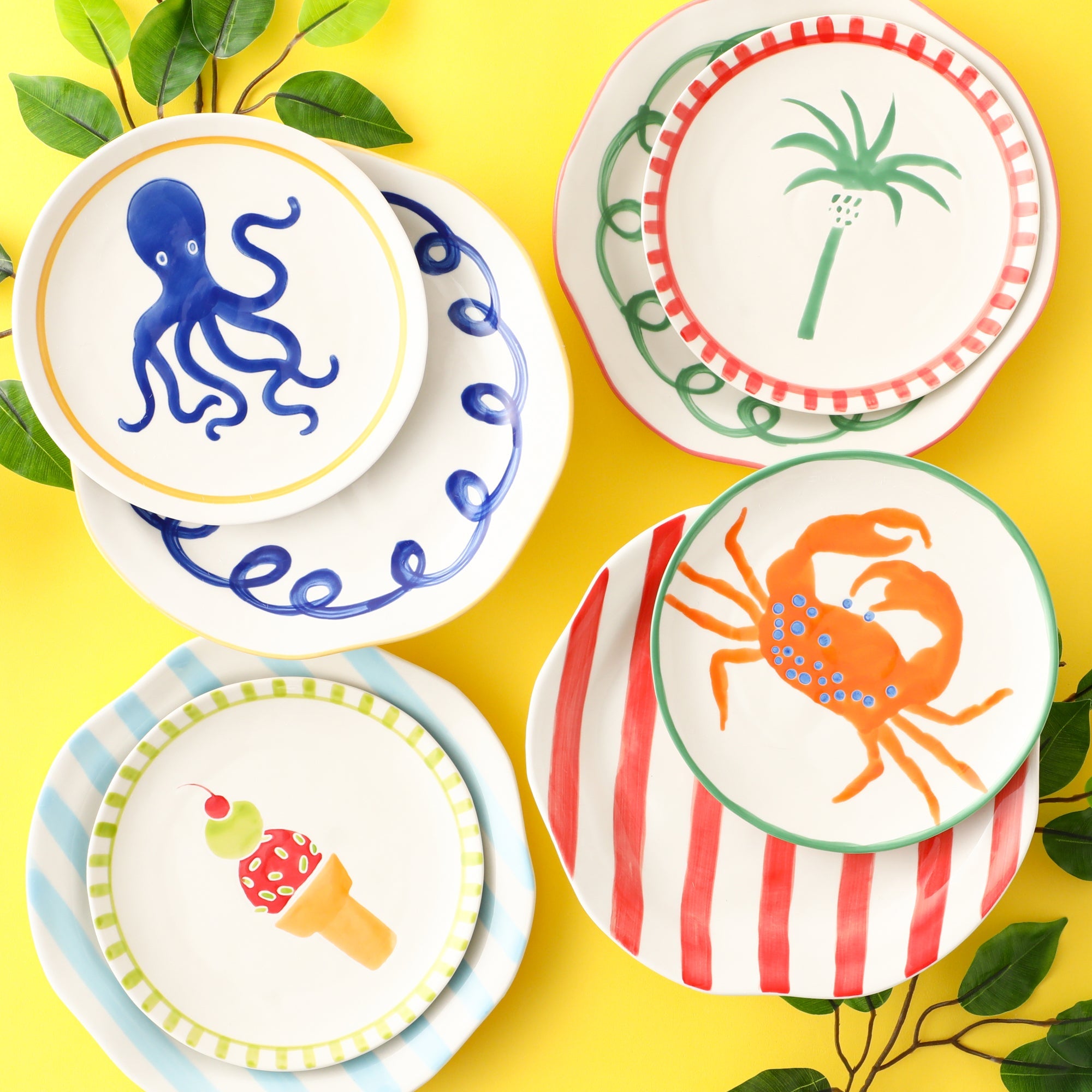 ひとつひとつハンドペイントでデザインを施したプレートです。ハンドメイドならではの温かみが感じられる一枚。夏モチーフのアートで、バカンスを楽しむような夏の陽気な食卓に彩ります。