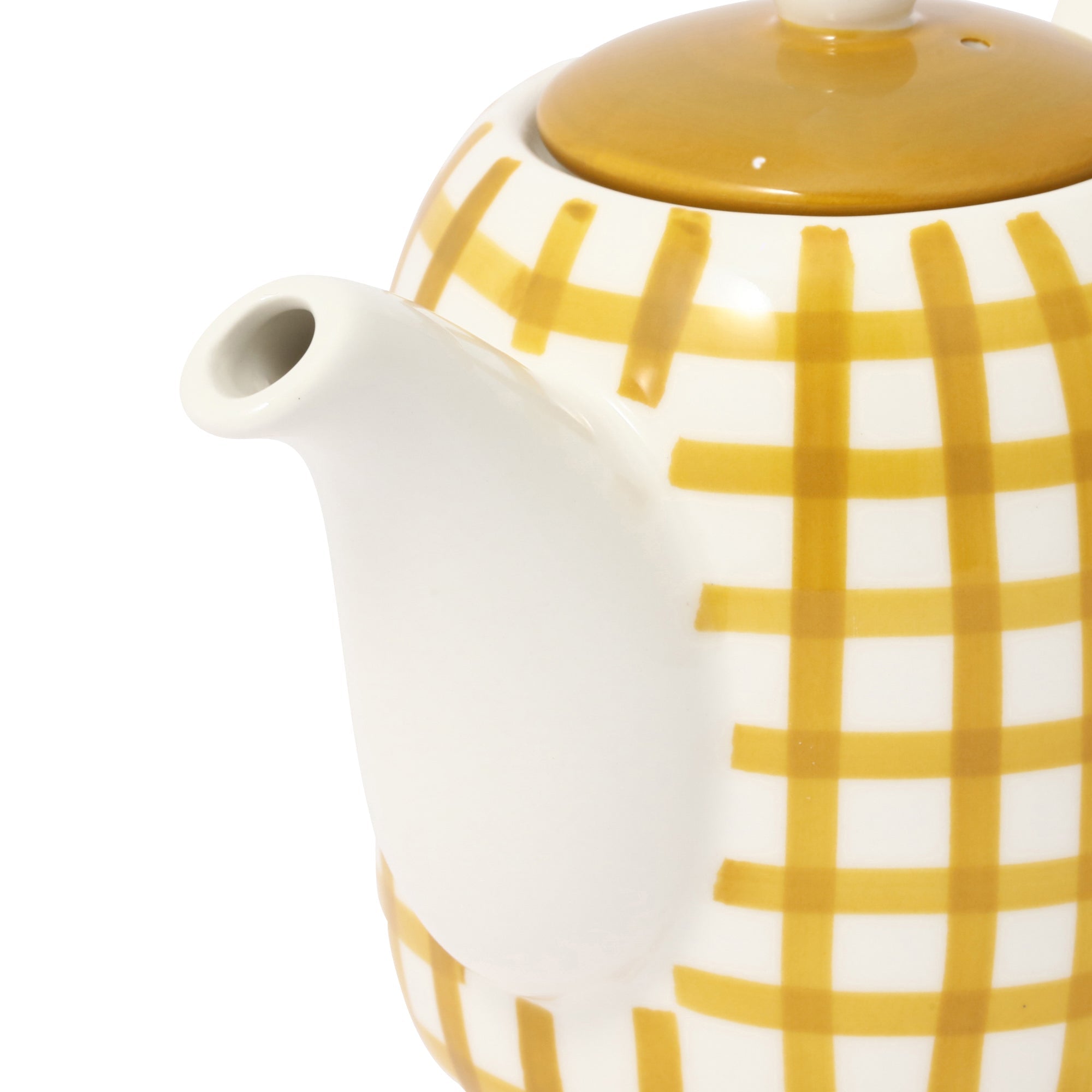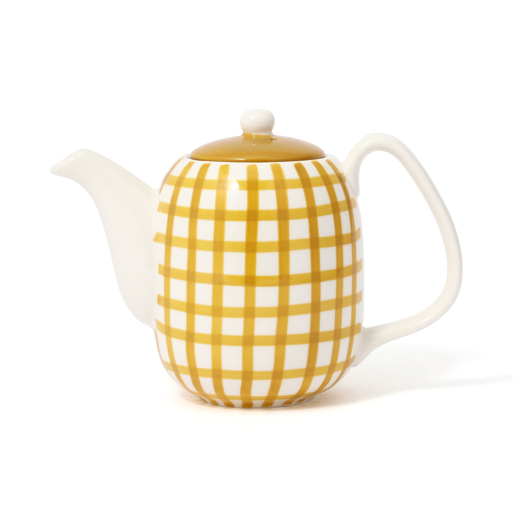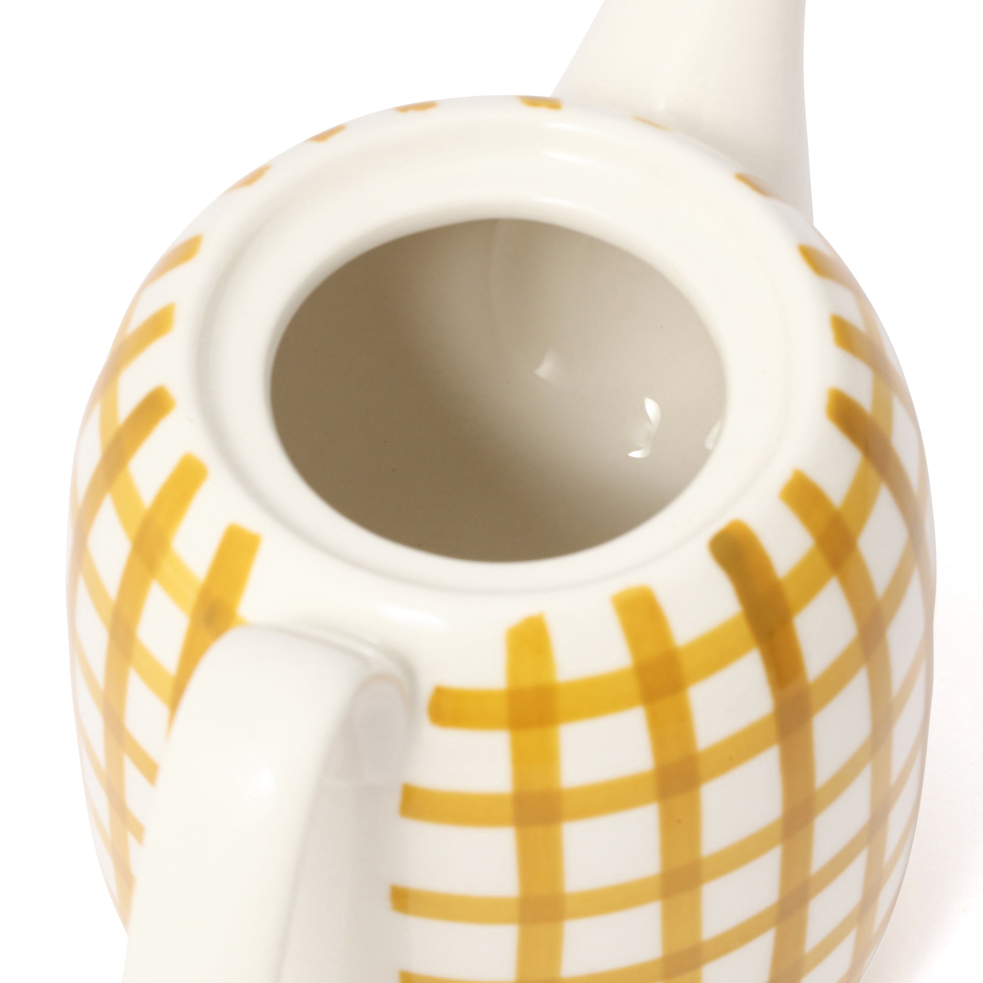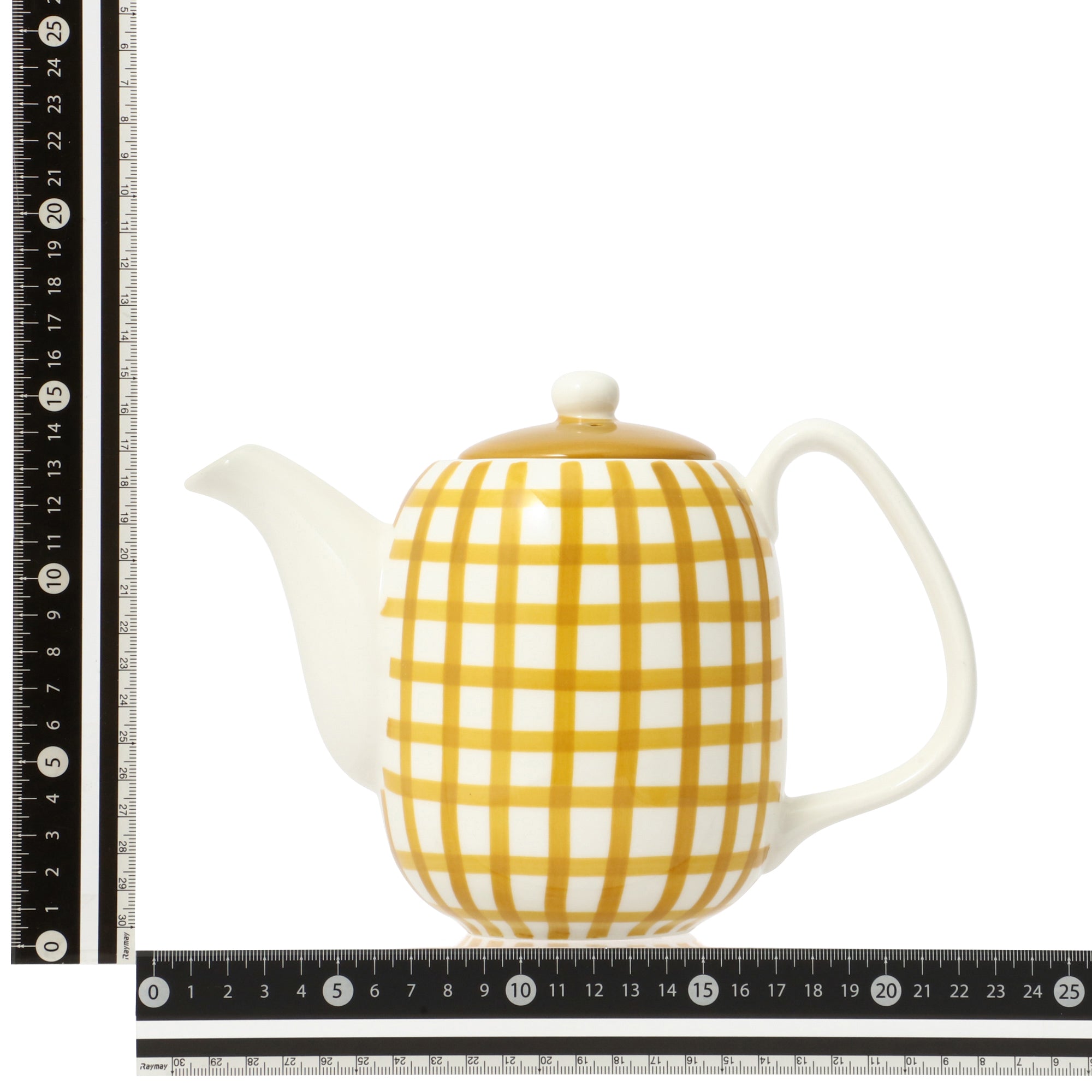 ハンドペイントのチェック柄を施したティーポットです。 やかんのようにぽってりとした大きめなサイズがレトロな可愛らしさ。手仕事ならではの優しいタッチが、ノスタルジックで温もり溢れるティータイムを演出します。