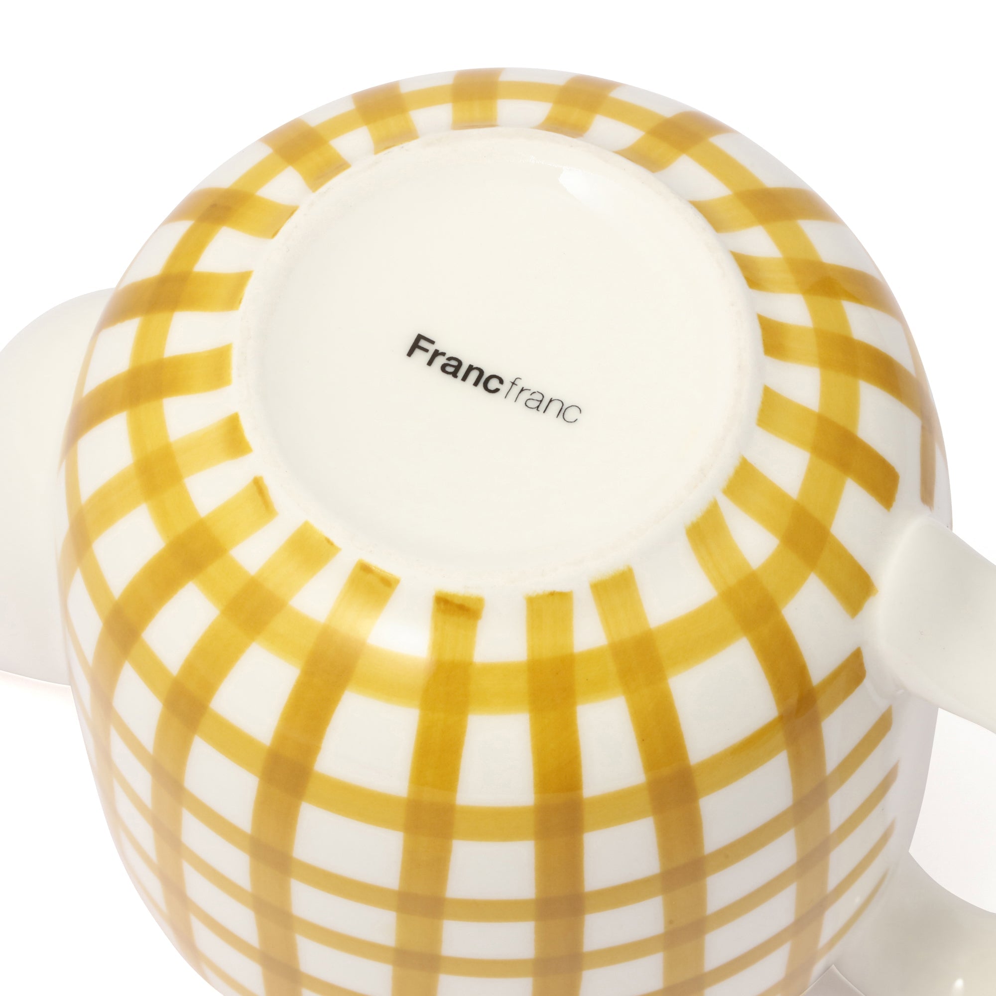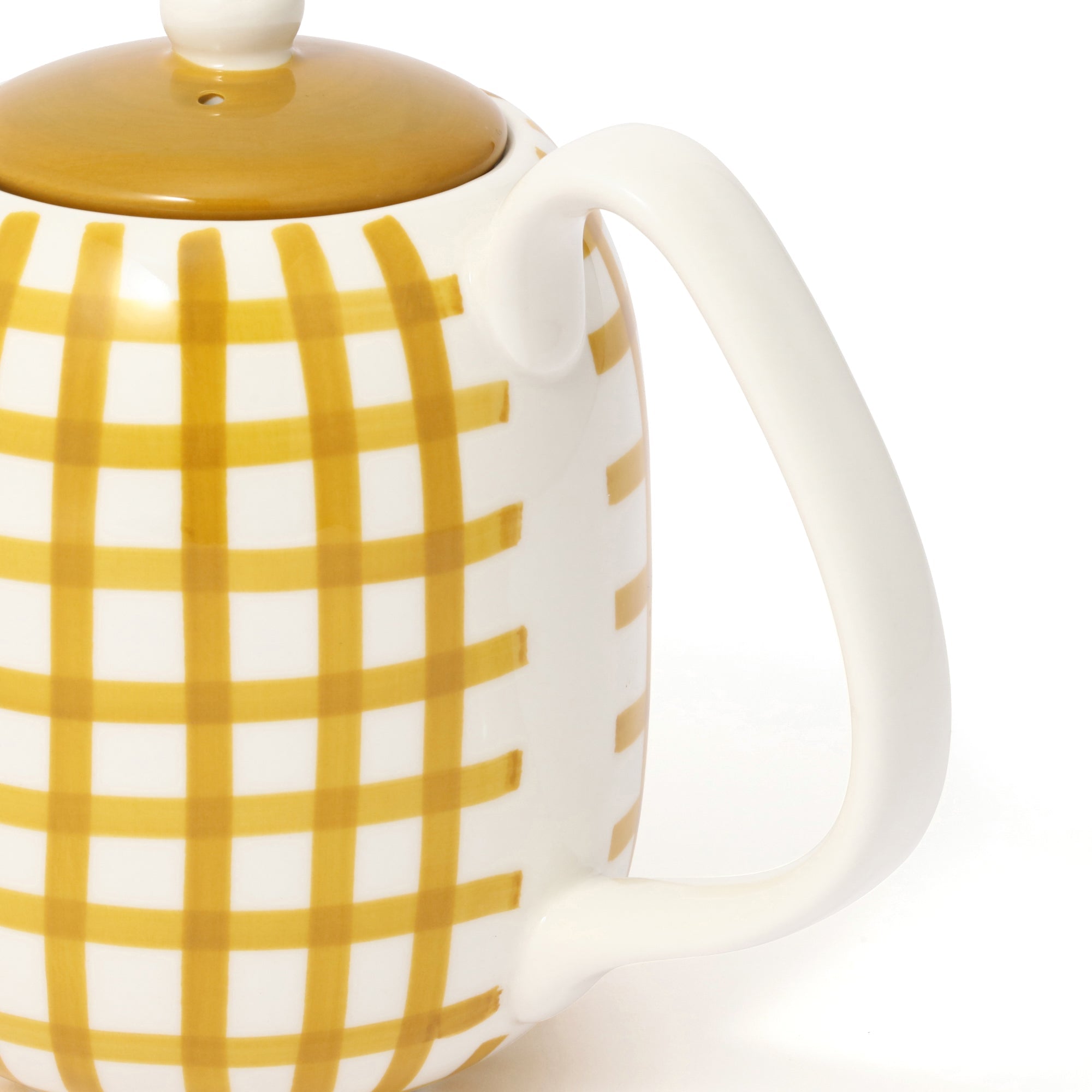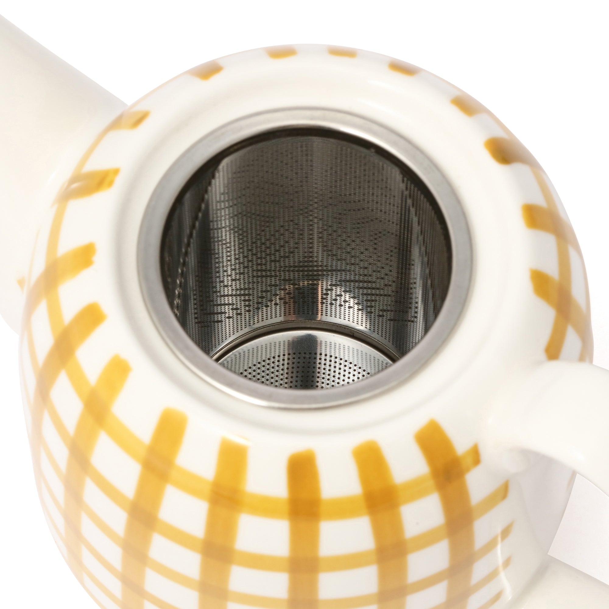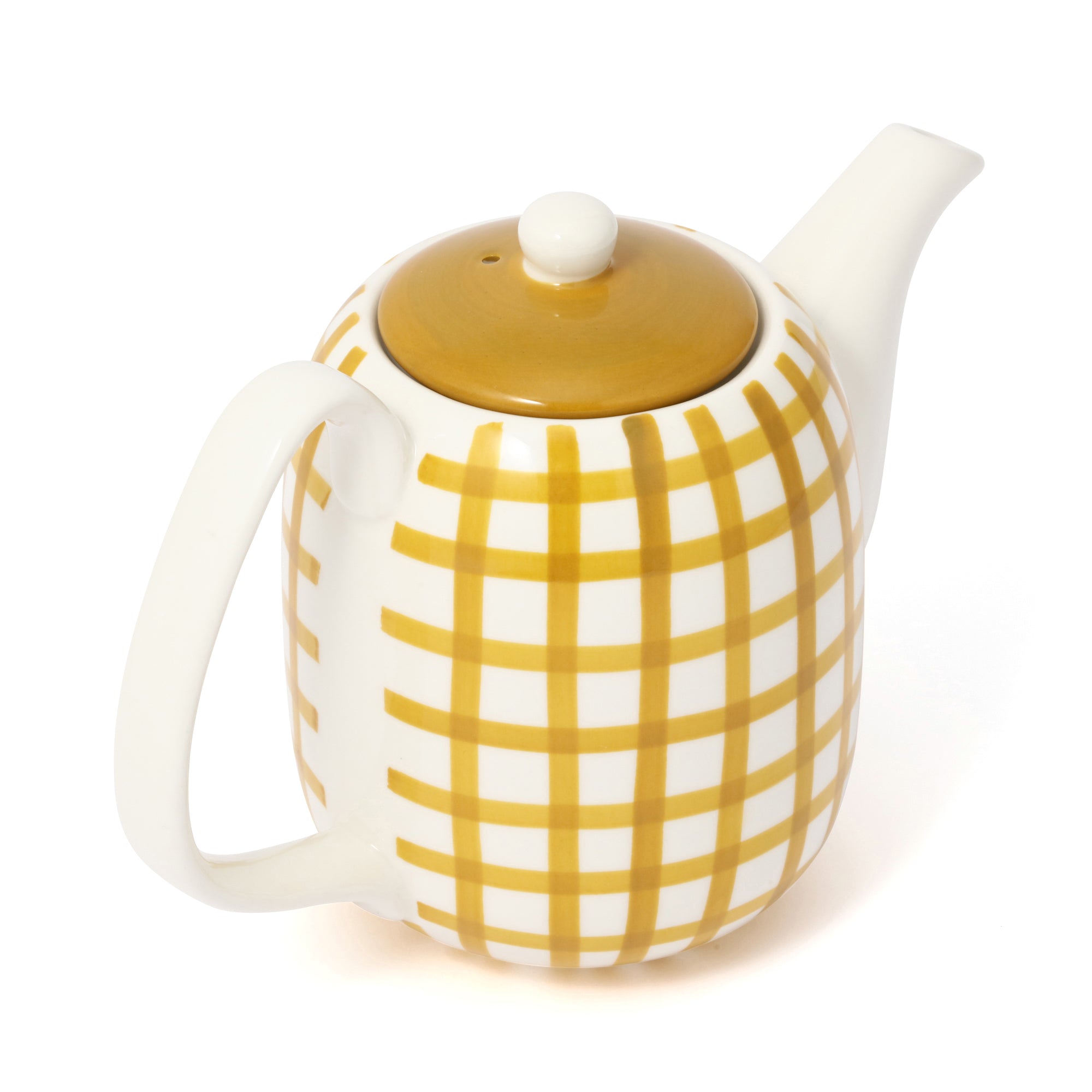 ハンドペイントのチェック柄を施したティーポットです。 やかんのようにぽってりとした大きめなサイズがレトロな可愛らしさ。手仕事ならではの優しいタッチが、ノスタルジックで温もり溢れるティータイムを演出します。