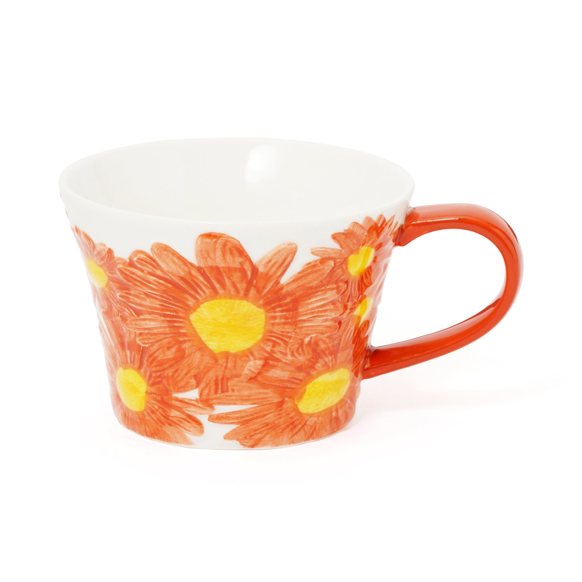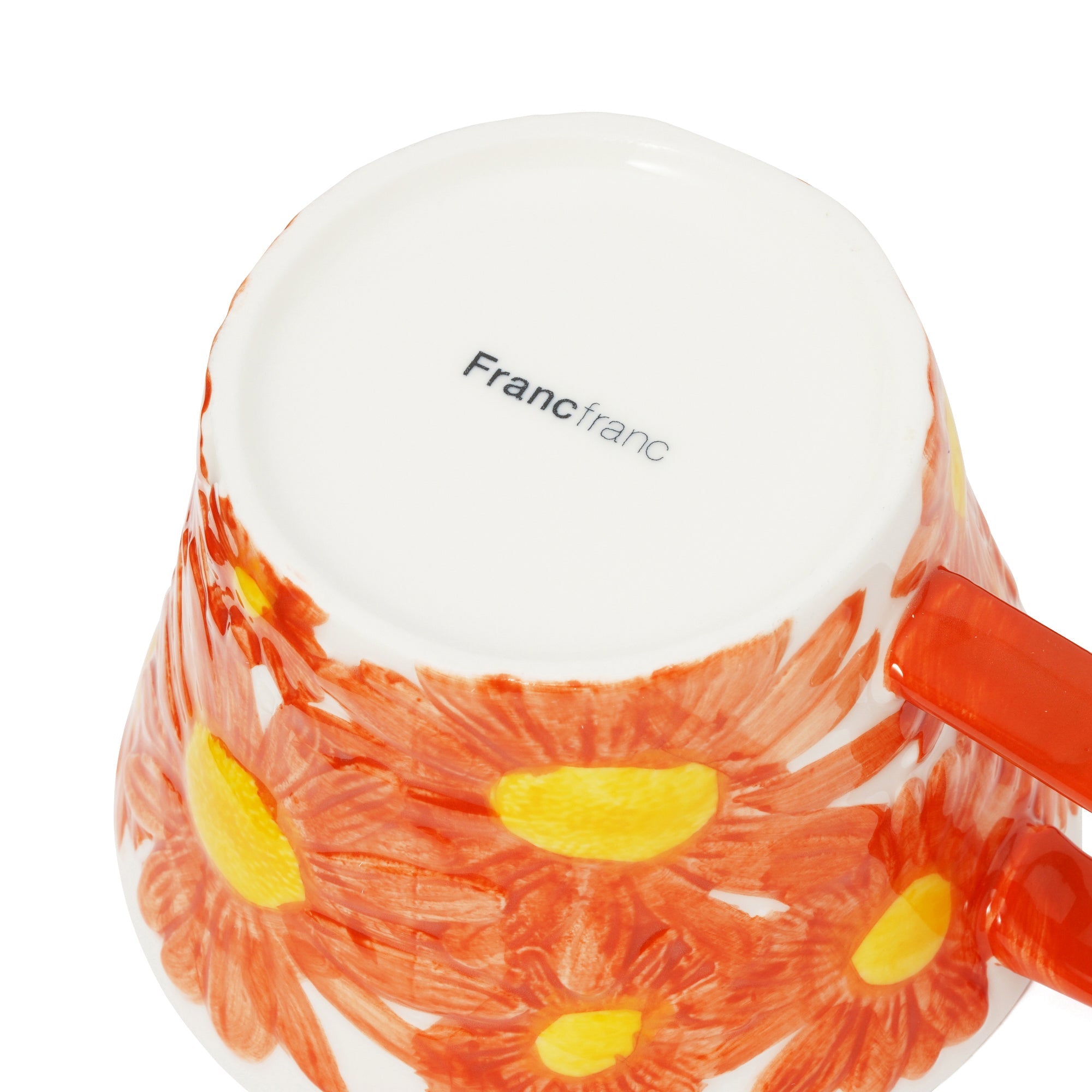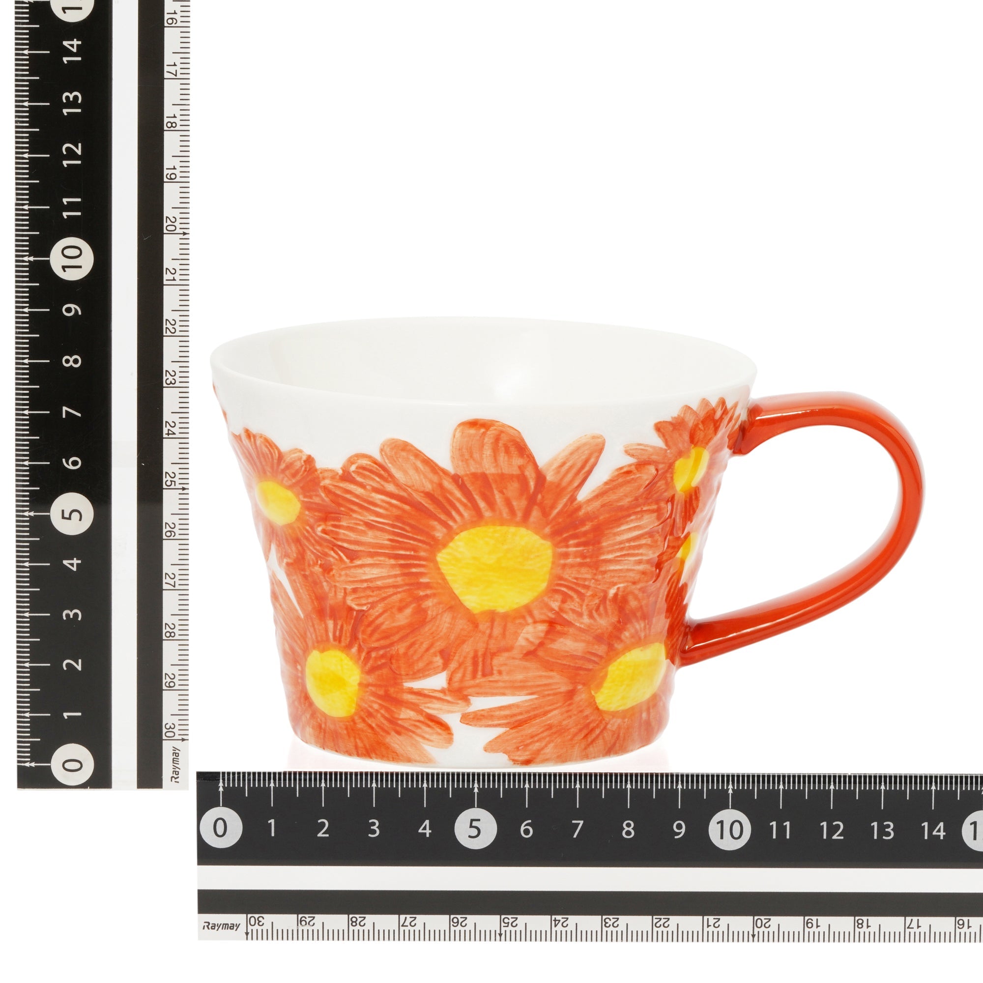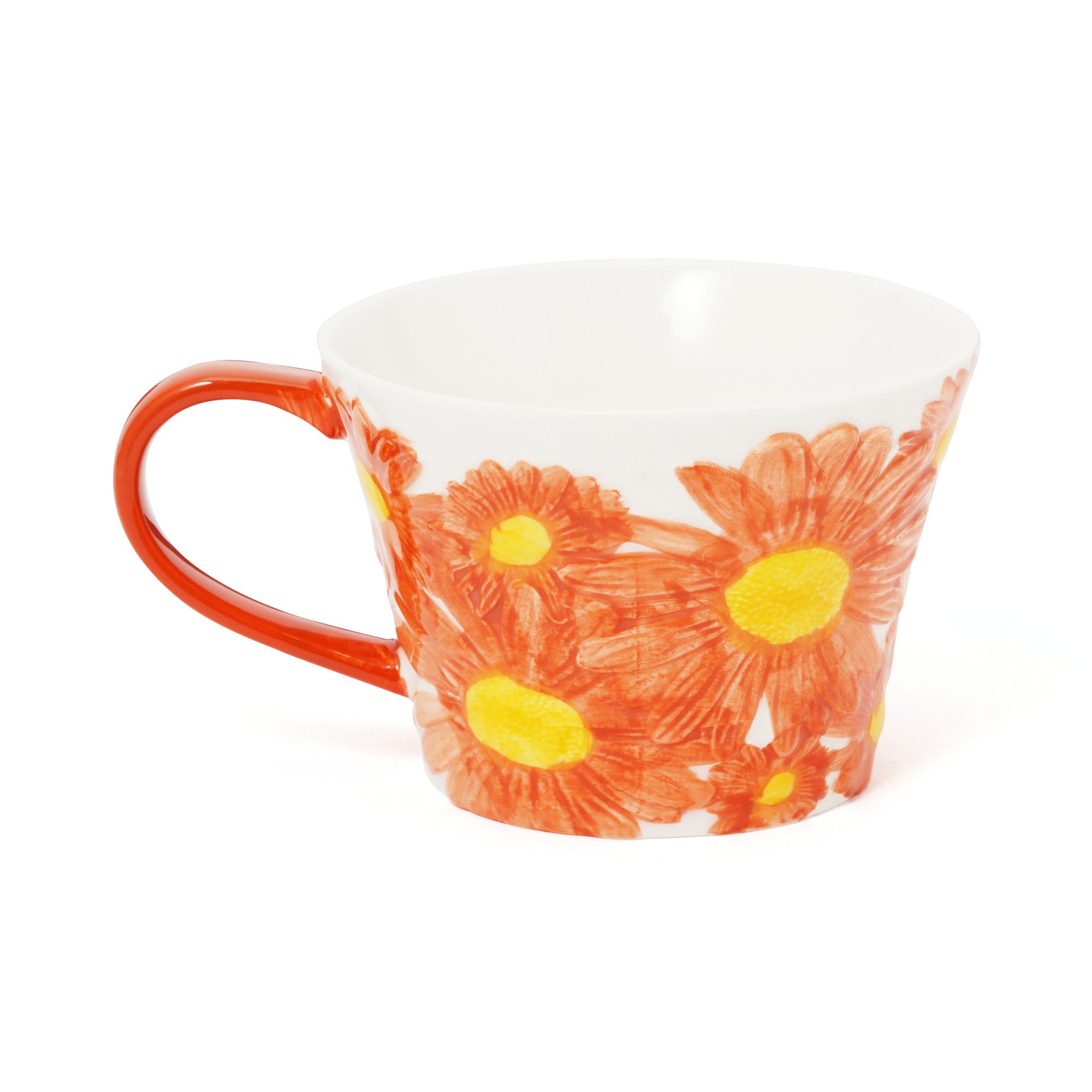 大きな花柄が目を引くマグカップです。 温もりと懐かしさを感じるキャッチーなデザイン。大きめサイズなのでたっぷり飲み物を入れられます。