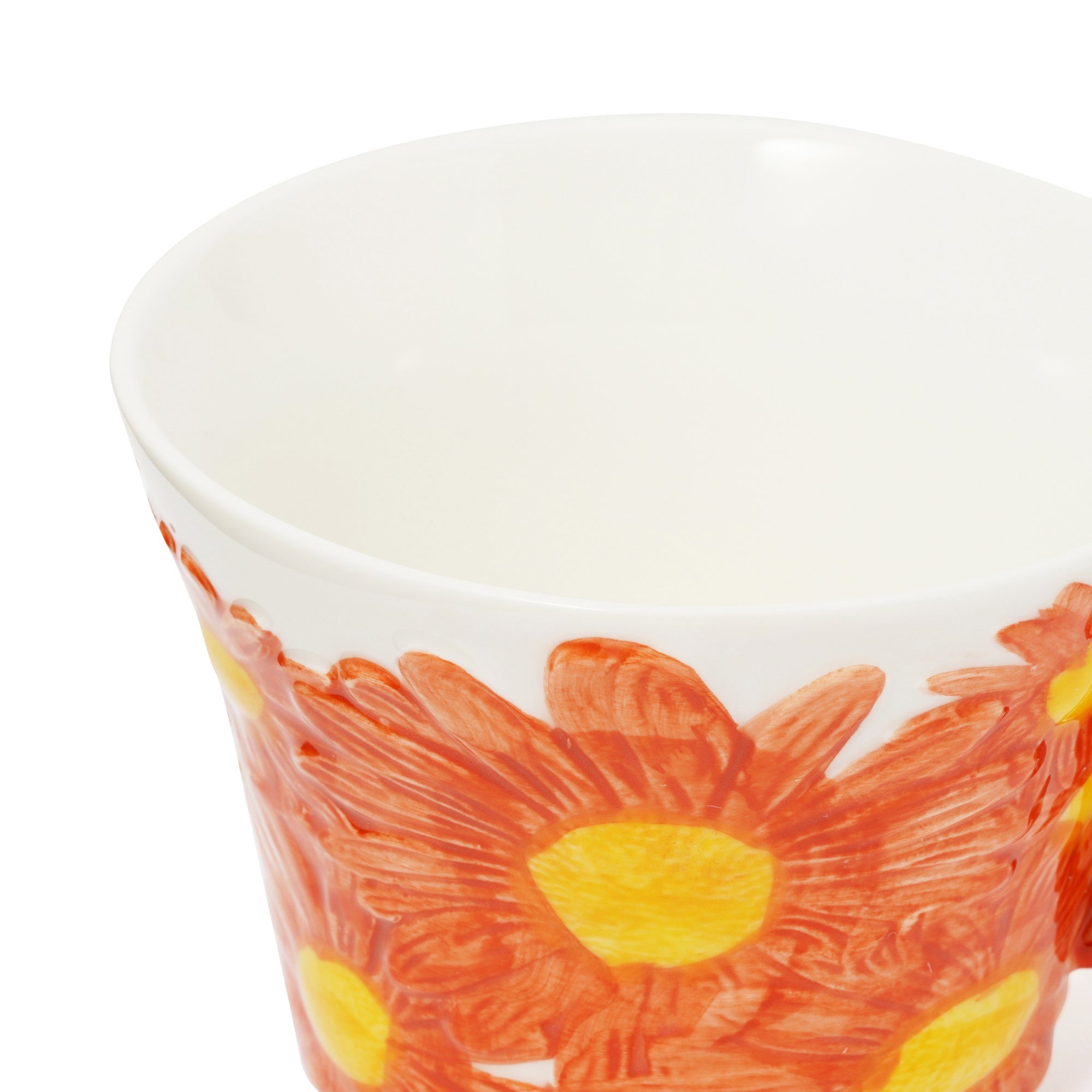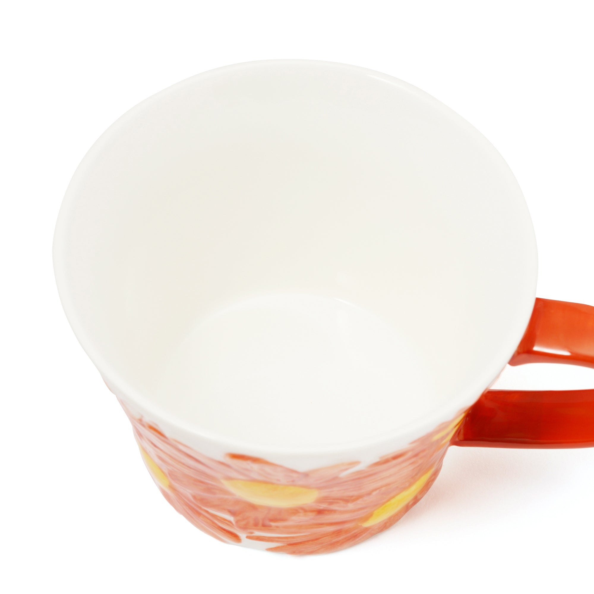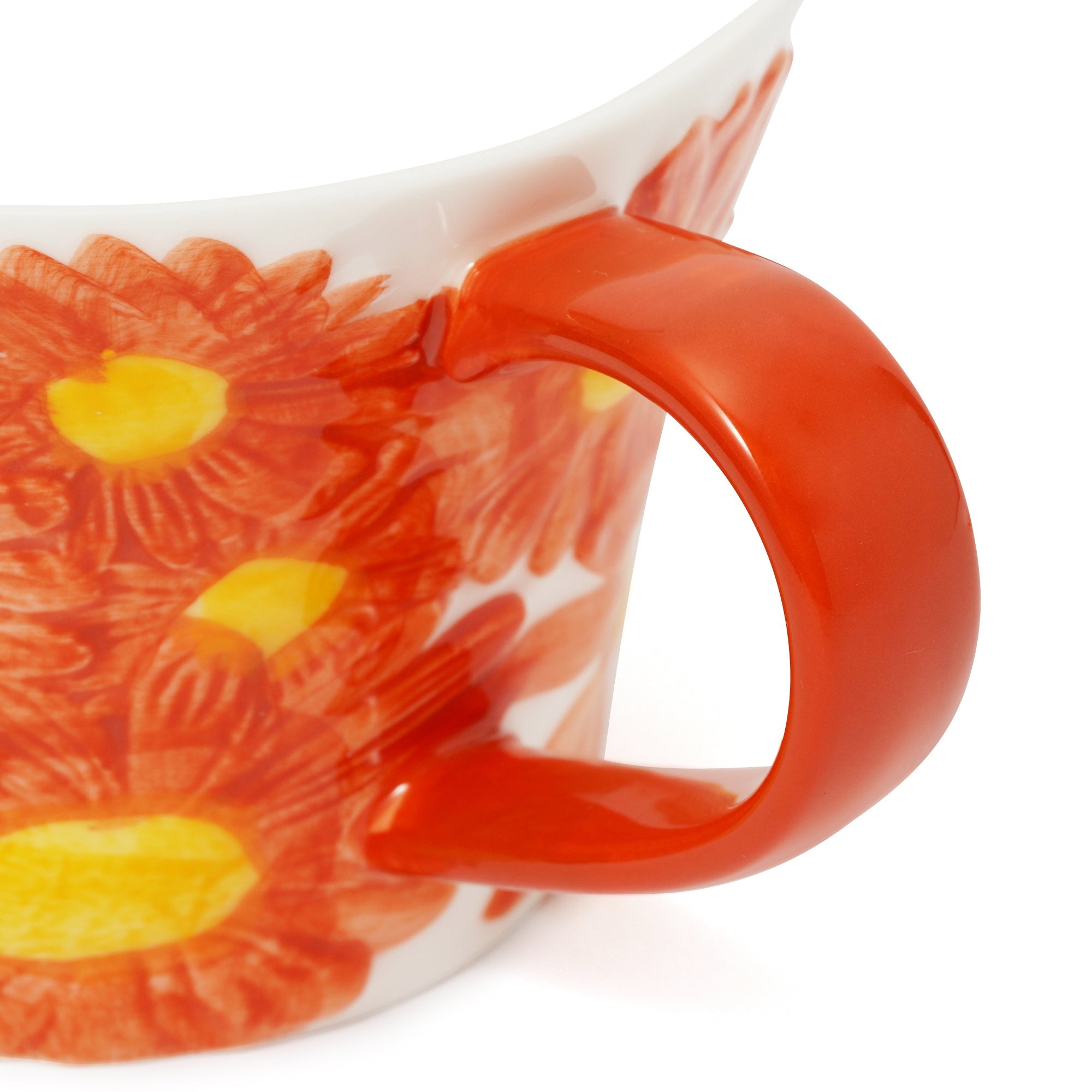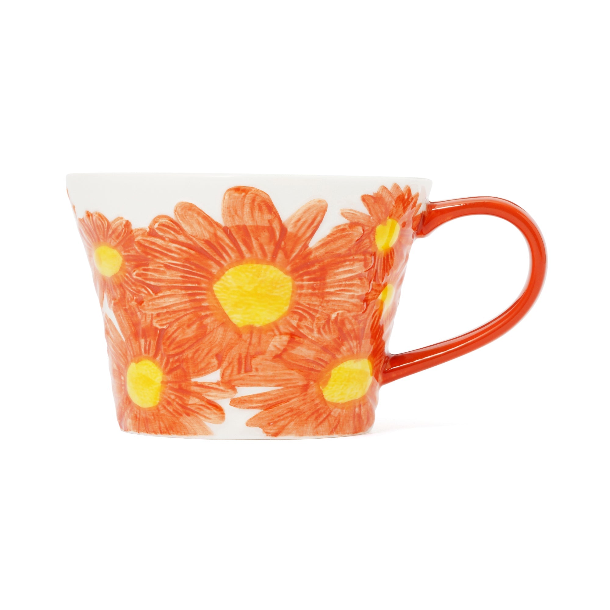 大きな花柄が目を引くマグカップです。 温もりと懐かしさを感じるキャッチーなデザイン。大きめサイズなのでたっぷり飲み物を入れられます。