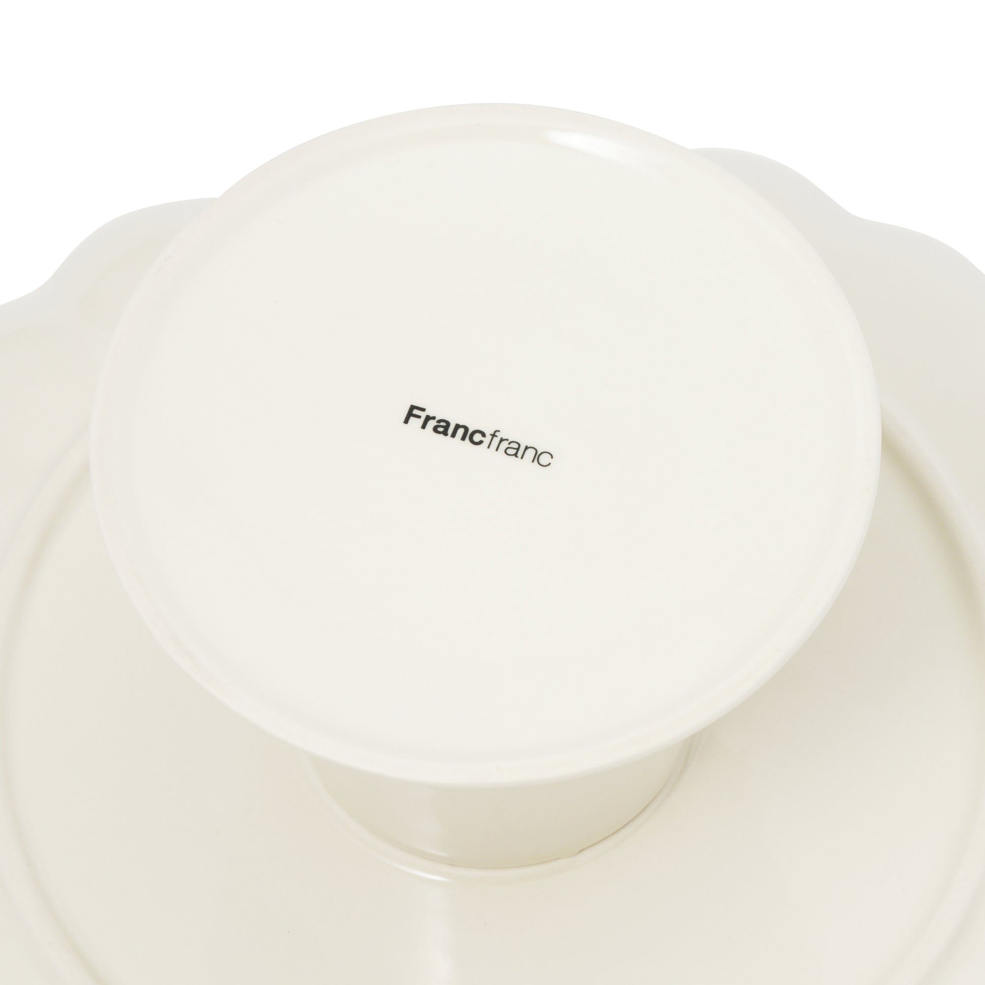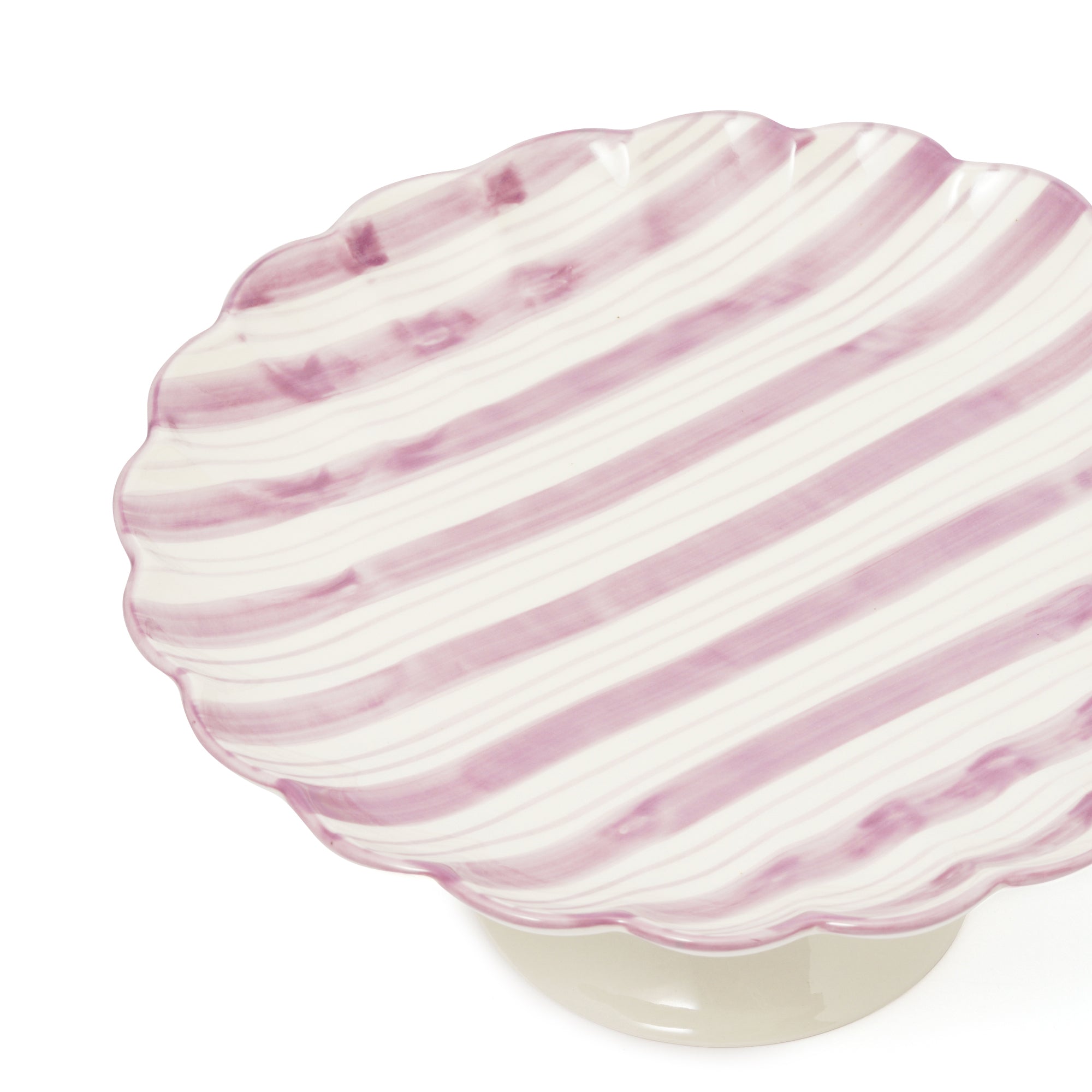 ハンドペイントのストライプ柄を施したケーキスタンドです。 手仕事ならではの優しいタッチが、ノスタルジックで温もり溢れるティータイムを演出します。