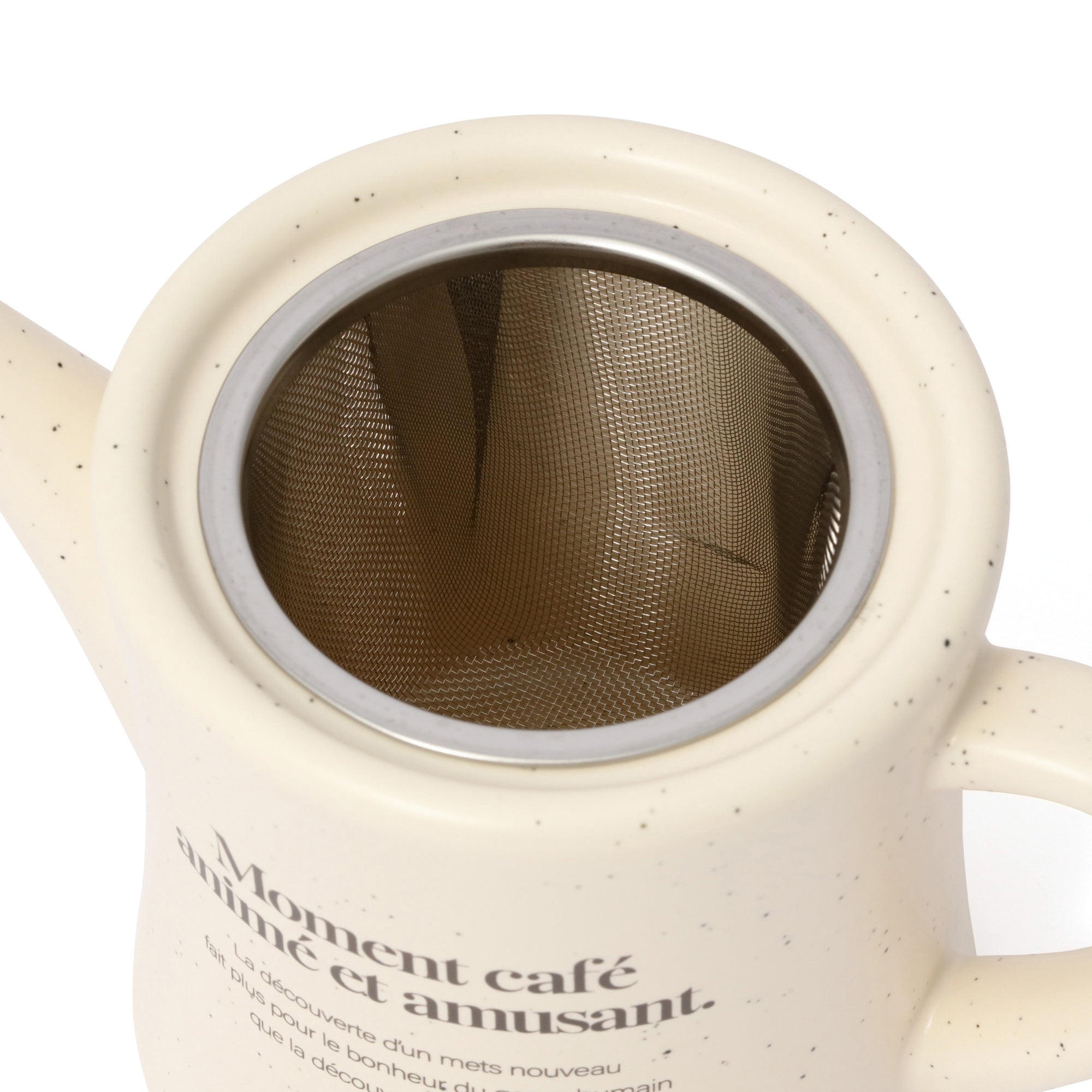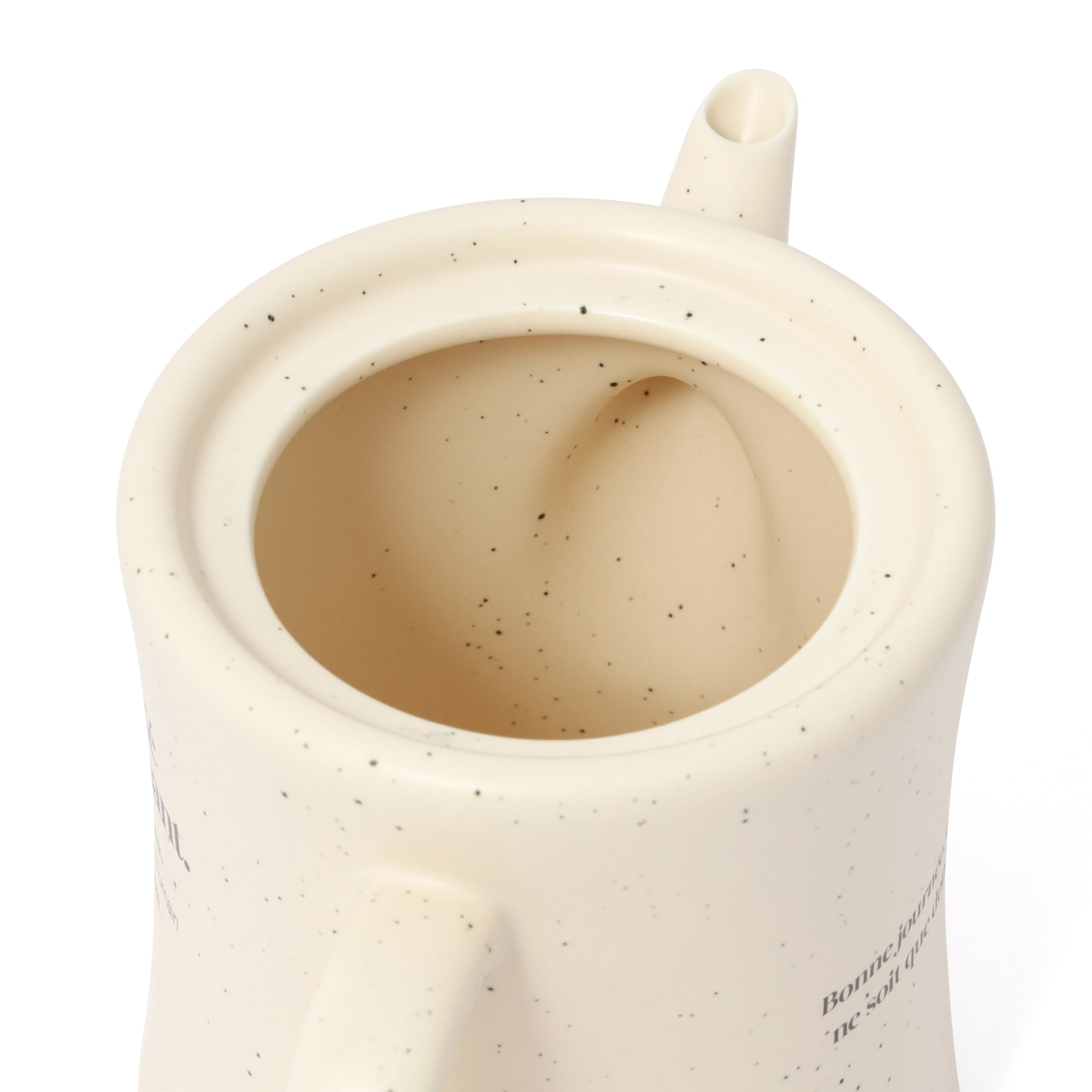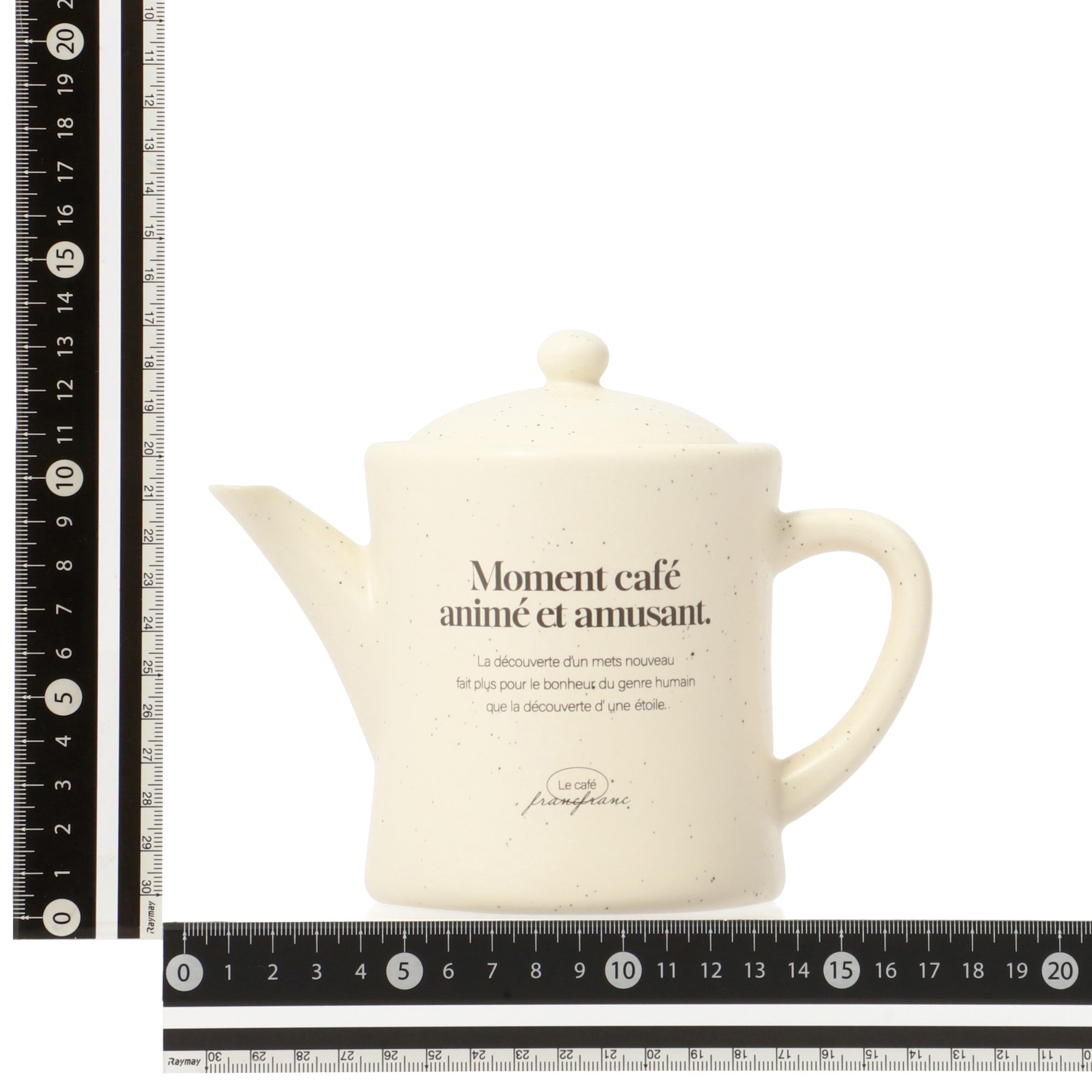 おしゃれなカフェでティータイムを過ごしているような気分になれるティーポットです。 エレガントさがある華奢なフォントを使用し、少し丸みのあるふっくらした形がおしゃれ。 同じシリーズのプレートやグラスと一緒に素敵なティータイムをお過ごしください。