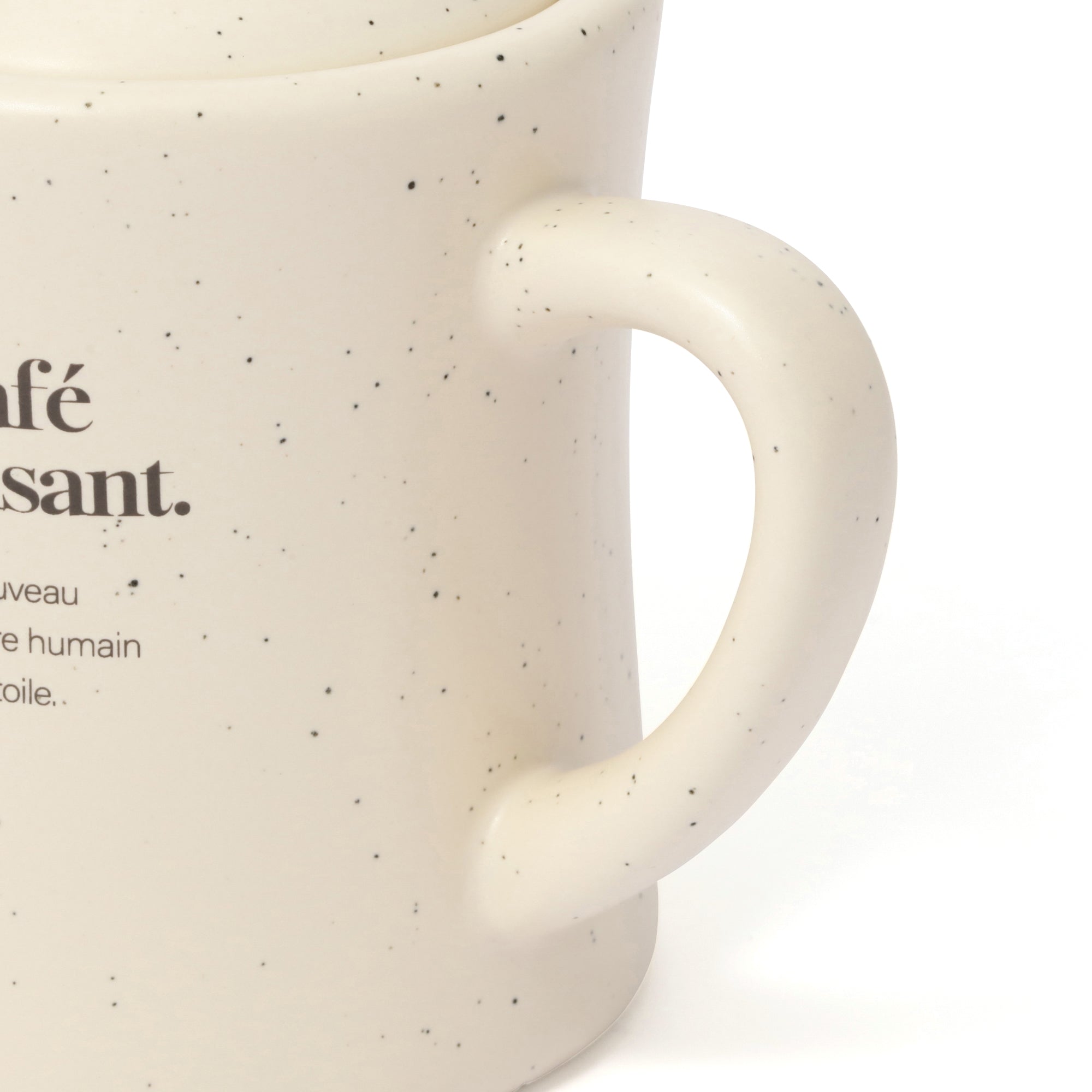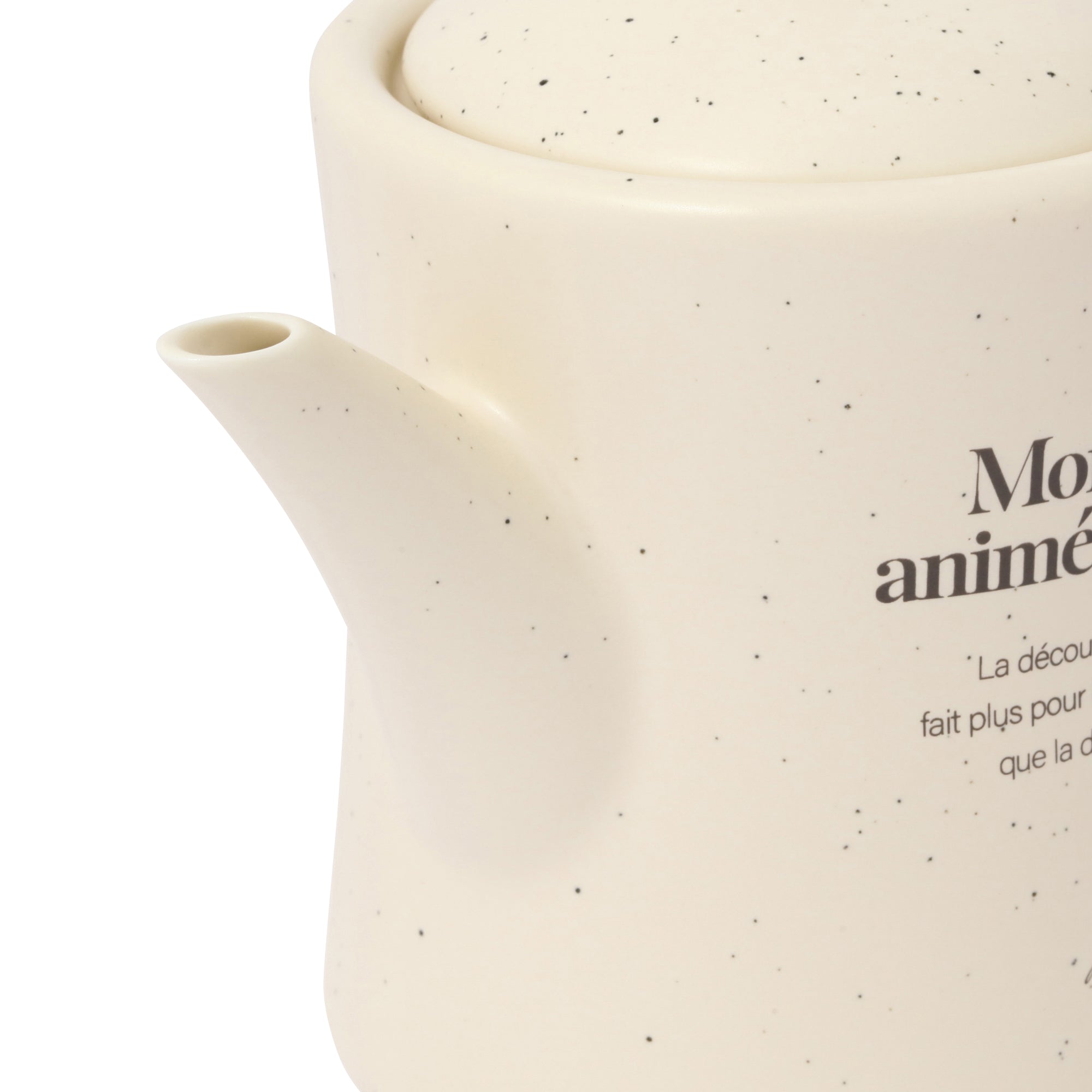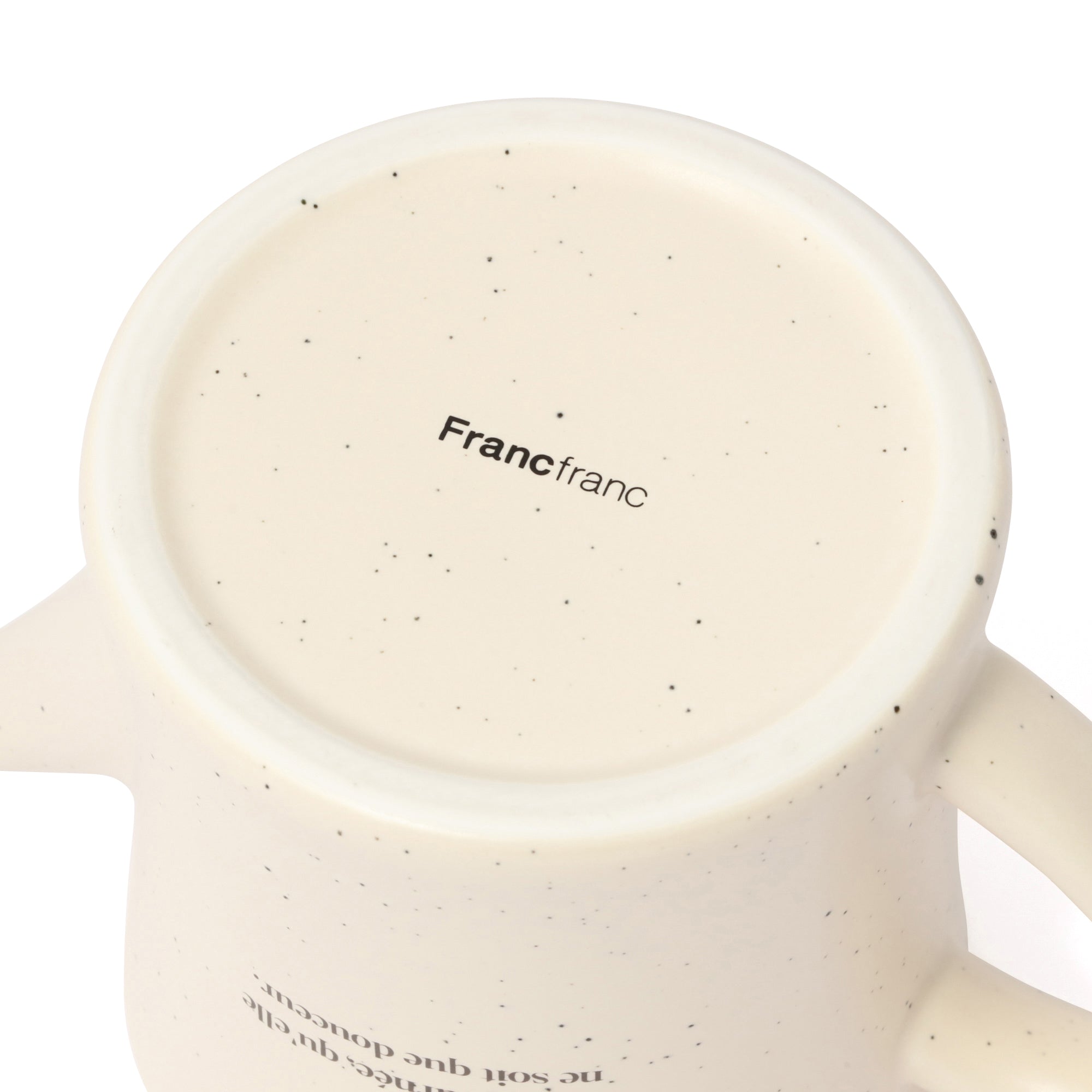 おしゃれなカフェでティータイムを過ごしているような気分になれるティーポットです。 エレガントさがある華奢なフォントを使用し、少し丸みのあるふっくらした形がおしゃれ。 同じシリーズのプレートやグラスと一緒に素敵なティータイムをお過ごしください。