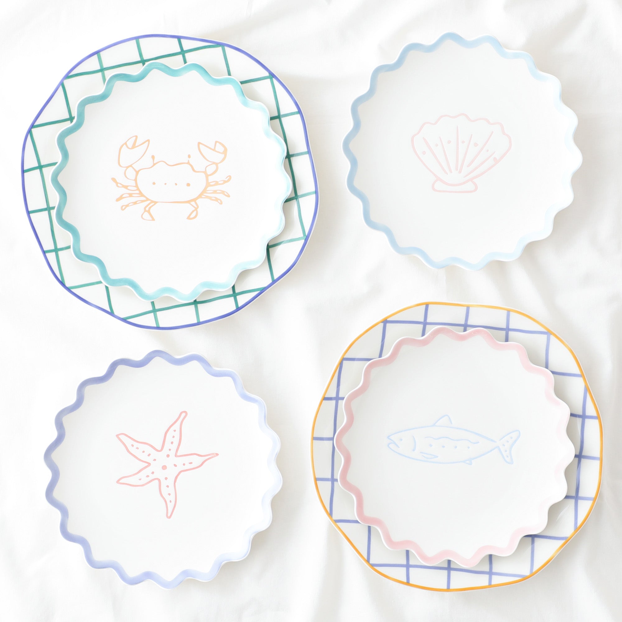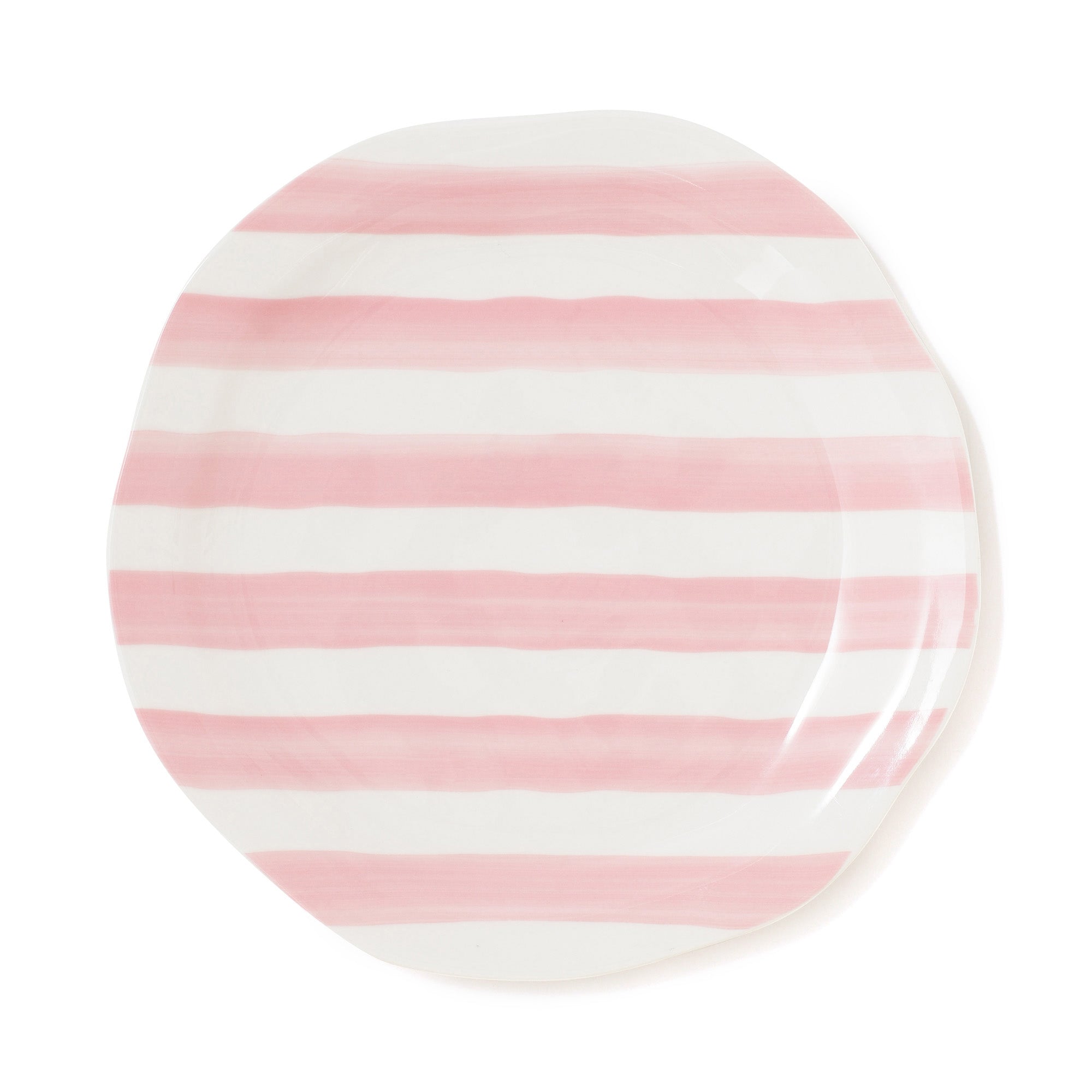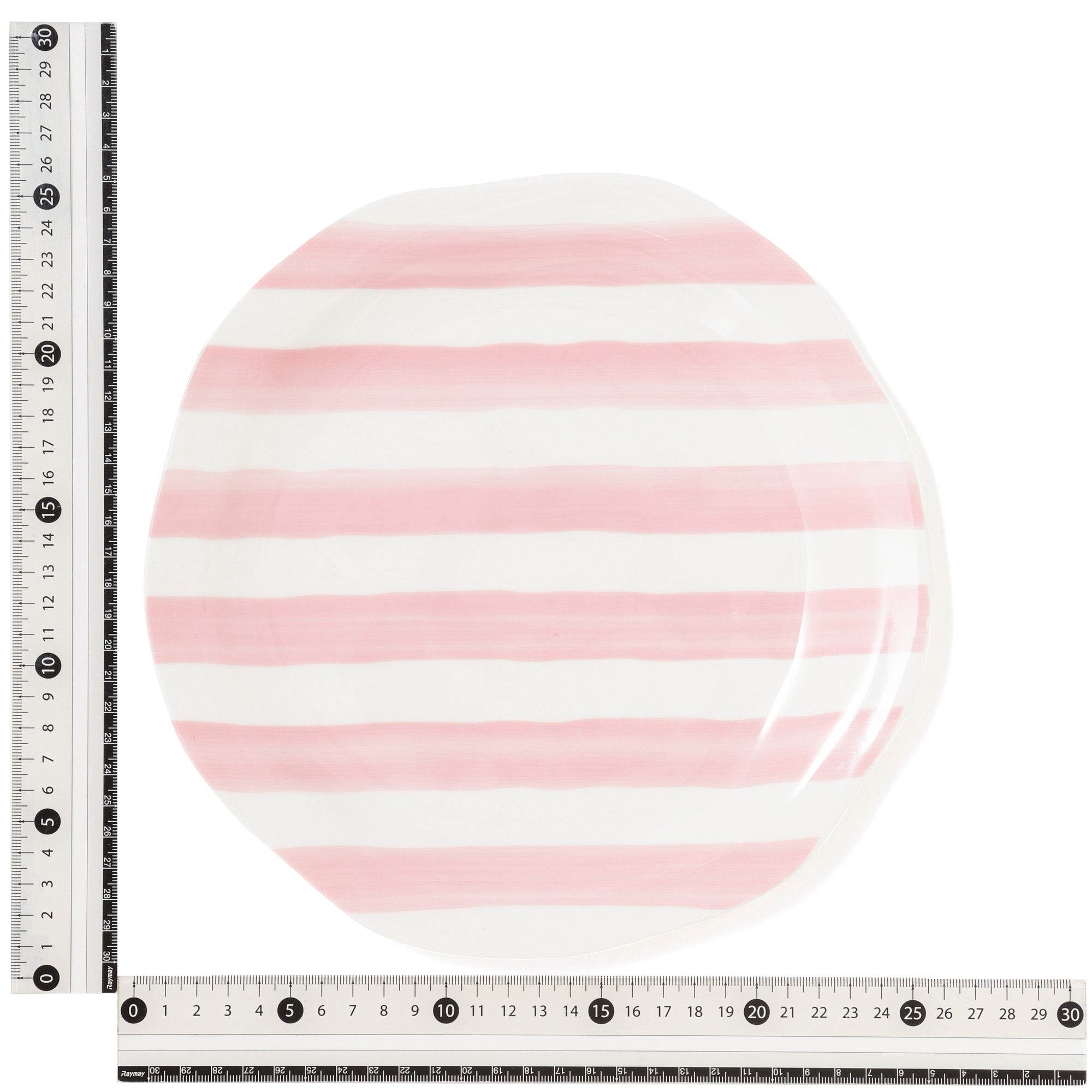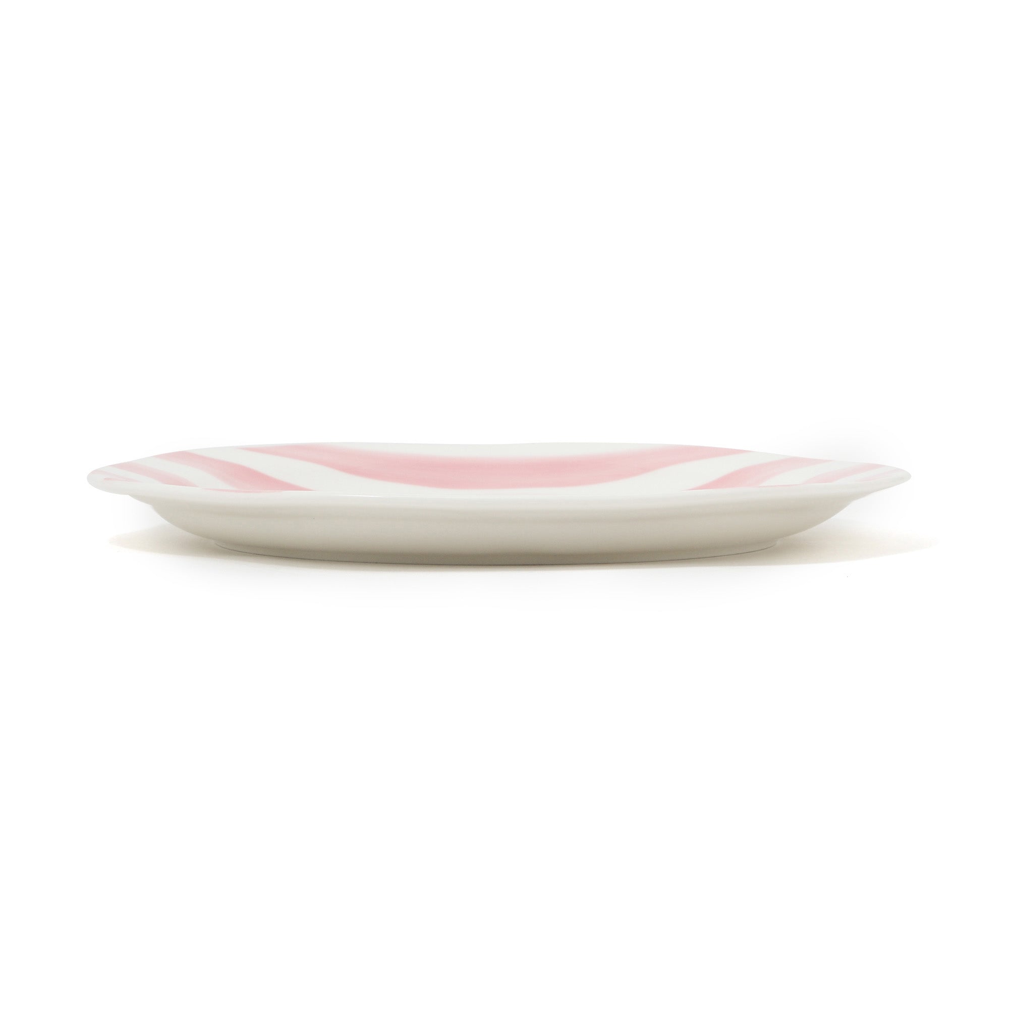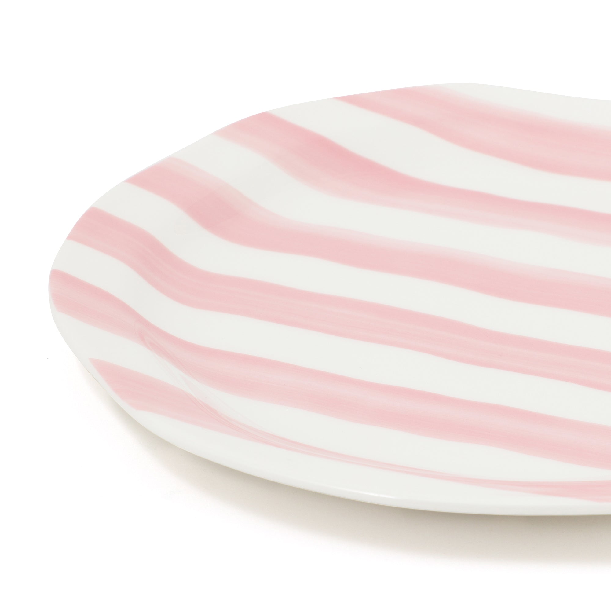 手書き風の柄とクラフト調の歪みがある形状デザインのプレートLです。夏の食卓を明るく彩る大皿です。甘すぎない絶妙なピンクのストライプがかわいらしいです。同じシリーズのプレートMやスプラッター ディップボウルと合わせるのがおすすめです。