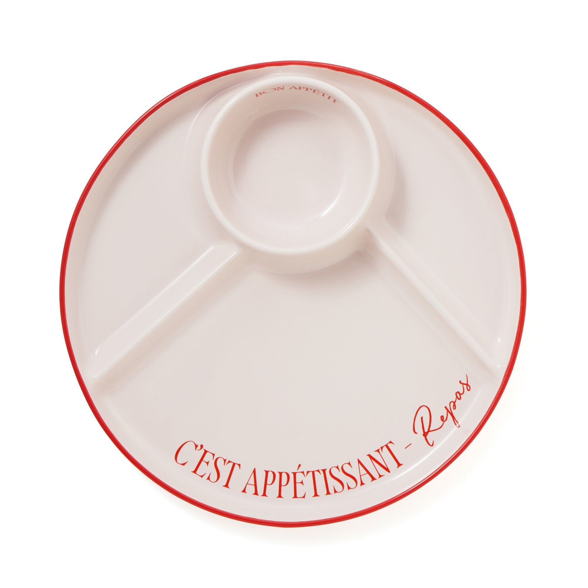 パステルカラーにアクセントカラーのタイポが特徴的なシリーズです。洋朝食の定番(パン、ベーコン、プチトマト、ヨーグルト)をわかりやすく簡単に乗せることができるプレートです。ひとつひとつを少し深めに作っている為、色々なものを乗せることができます。食器洗いが少なくなるので忙しい朝にぴったりです。
