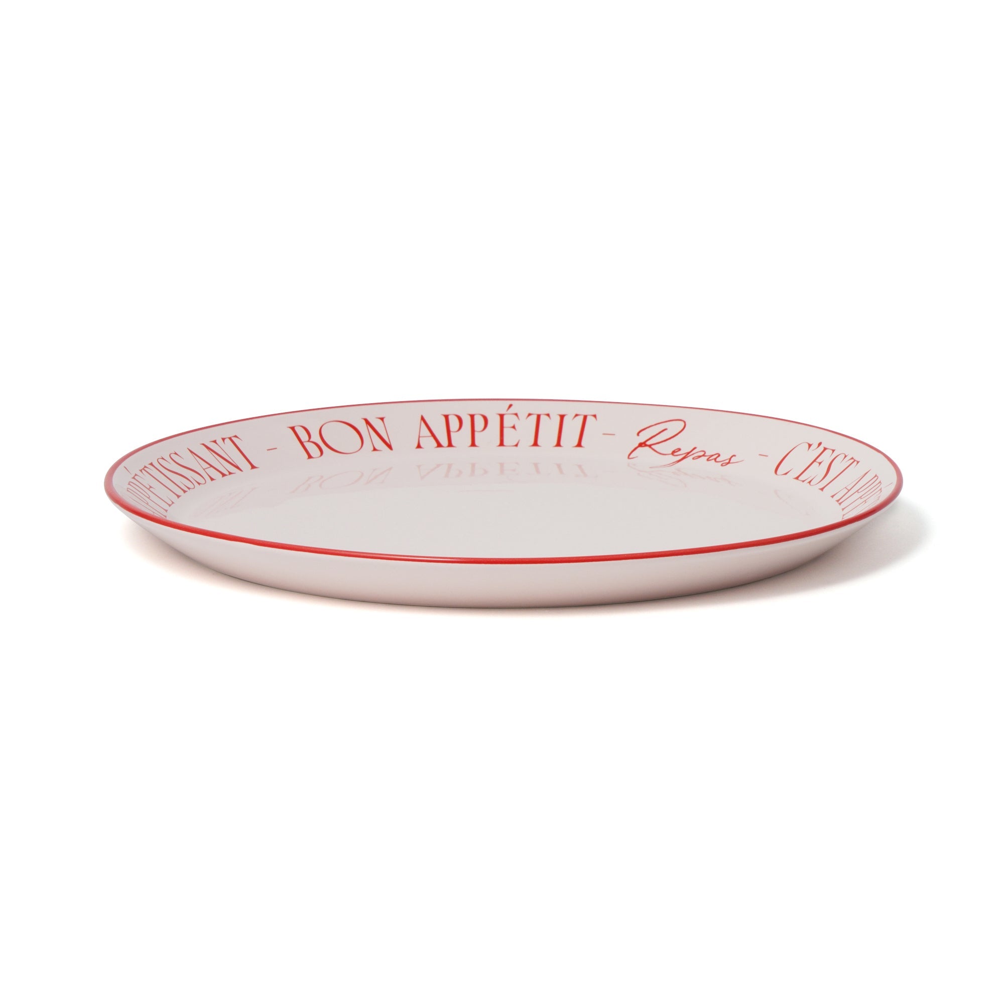 パステルカラーにアクセントカラーのタイポが特徴的なシリーズです。大きめのプレートですが、軽量なので使いやすいです。ブランチの定番(パンやホットケーキ、サラダ、卵、フルーツ)を一気に乗せることができます。色々乗せても淵のタイポが見えるので写真映えします。同じシリーズのヨーグルトカップを乗せての使用もおすすめ。