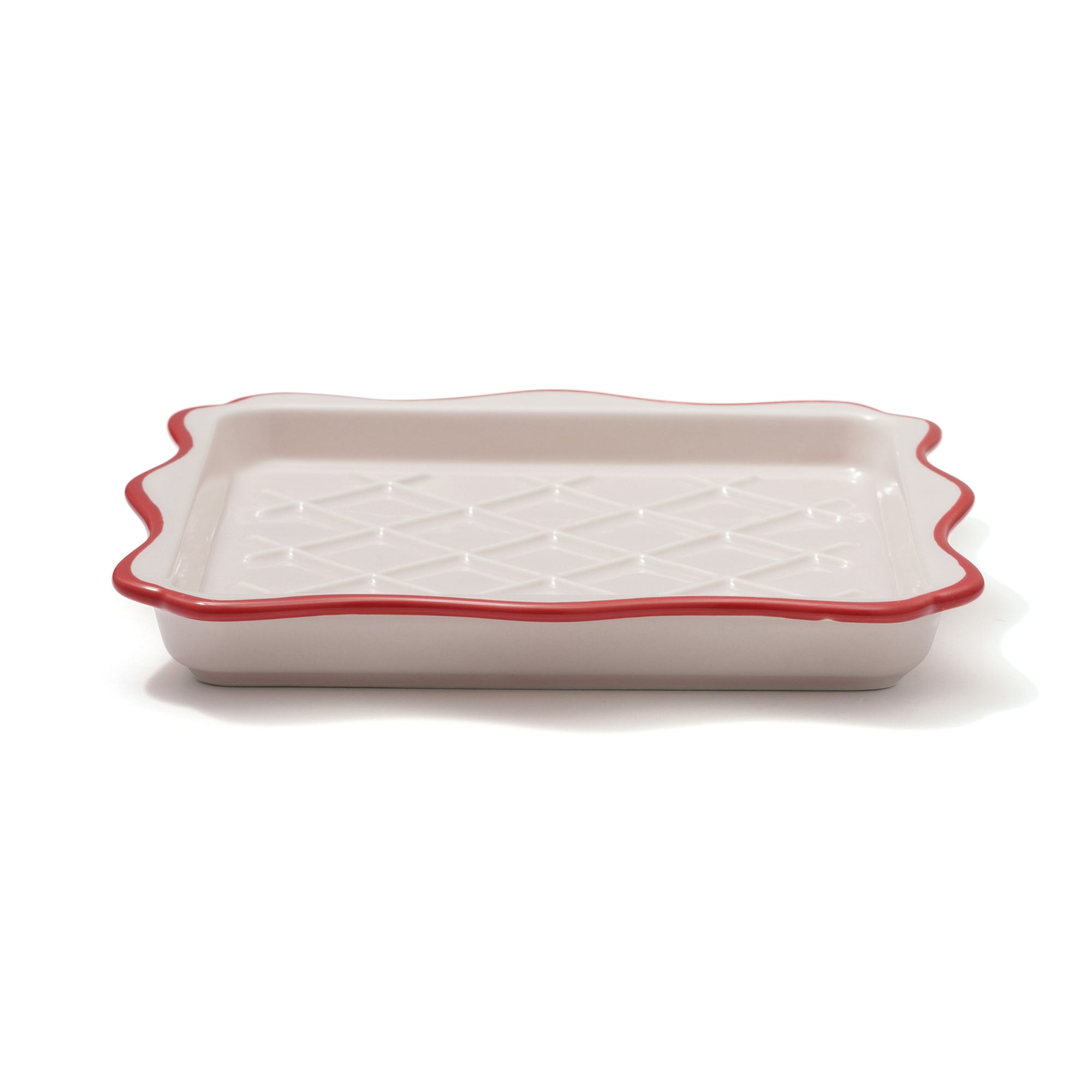 パステルカラーにアクセントカラーのタイポが特徴的なシリーズです。ちょうど食パンが一枚のる大きさです。食材を入れてそのままオーブントースターで調理ができるので、忙しい朝にぴったりなアイテムです。凹凸模様のおかげで、焼けたトーストの底が、お皿にぴったりとつかないので水蒸気がパンに触れにくく、サクサクの食感そのまま美味しく食べることができます。